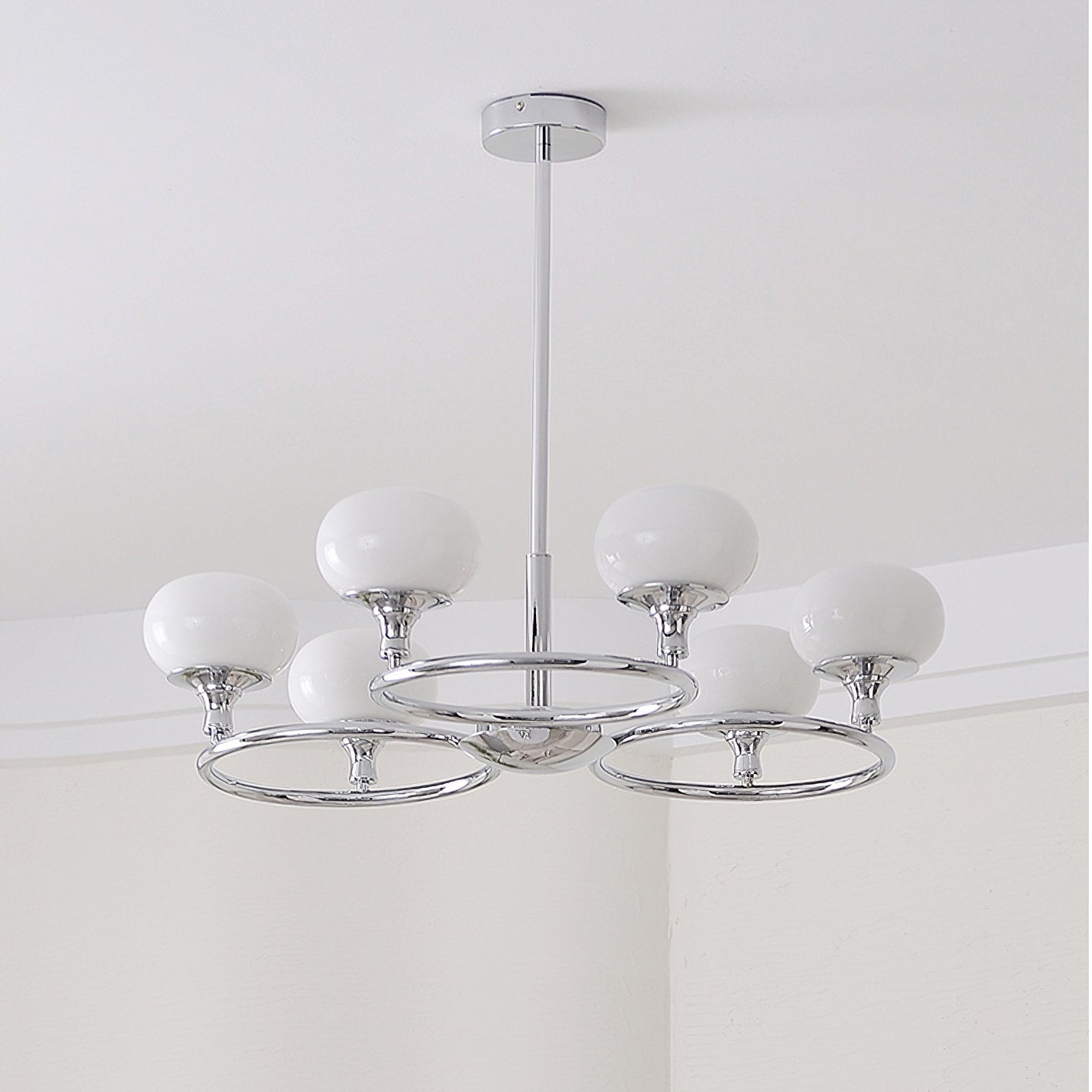 Ingersoll Round Kattokruunussa on kiehtova kromiviimeistely, joka antaa sille tyylikkään ja nykyaikaisen ilmeen. Kromipinnoite parantaa sen visuaalista vetovoimaa ja tekee siitä keskipisteen missä tahansa huoneessa.