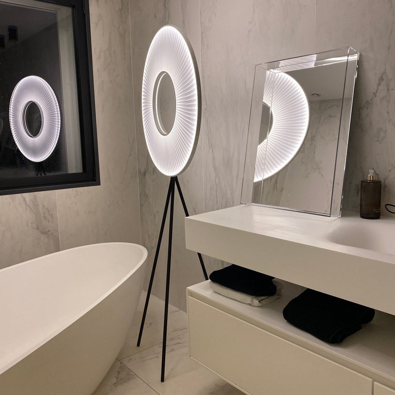 Valaise tilasi Iris-lattialampun tehokkaalla ja hajavalolla. Tämä sisätilojen auringonpaistetta ajatellen suunniteltu lamppu tuo pehmeää ja tähtimäistä hehkua mihin tahansa huoneeseen. Iris-sarja tarjoaa useita vaihtoehtoja, mukaan lukien lattia-, riippu-, seinä- ja pöytälamput, jotka sopivat täydellisesti mihin tahansa tilaan. Esittele kotisi luonnonvalon kauneutta Iriksen avulla.