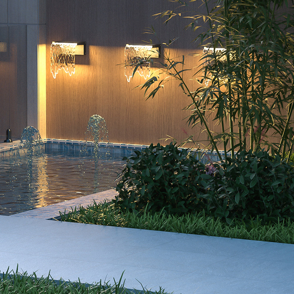 Isaac Modern Minimalist Water Texture Metal/Acrylic Solar vedenpitävä ulkoseinävalaisin, musta