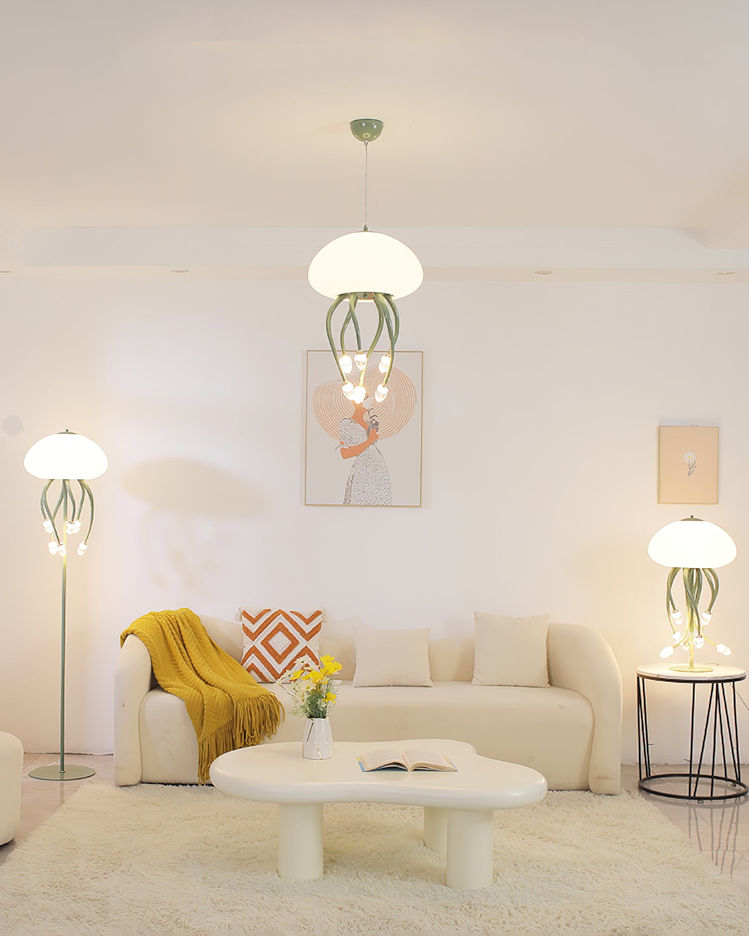 Tuo ripauksen taiteellista eleganssia mihin tahansa huoneeseen Jellyfish-riippuvalaisimella. Tämä ainutlaatuinen lamppu jäljittelee meduusan tekstuuria kiehtovan kirkkaan valon näyttämiseksi, mikä saa minkä tahansa tilan tuntumaan elävämmältä. Ainutlaatuisella muotoilullaan Jellyfish Pendant Lamp korostaa kauneutta sekä järjestetyissä että kaoottisissa muodoissa. Nauti ilmaisunvapaudesta tämän viehättävän ja kiehtovan valaisimen kanssa.
