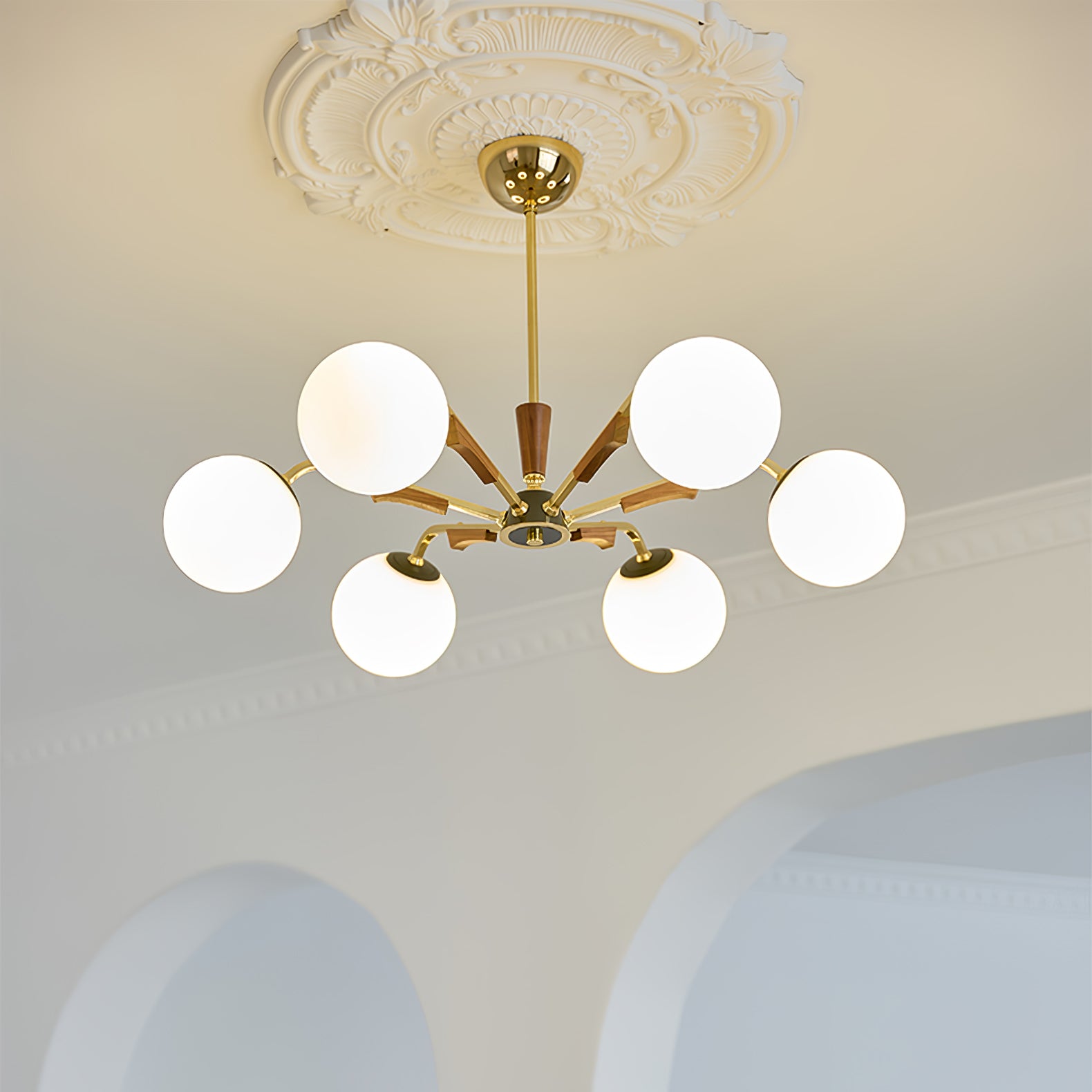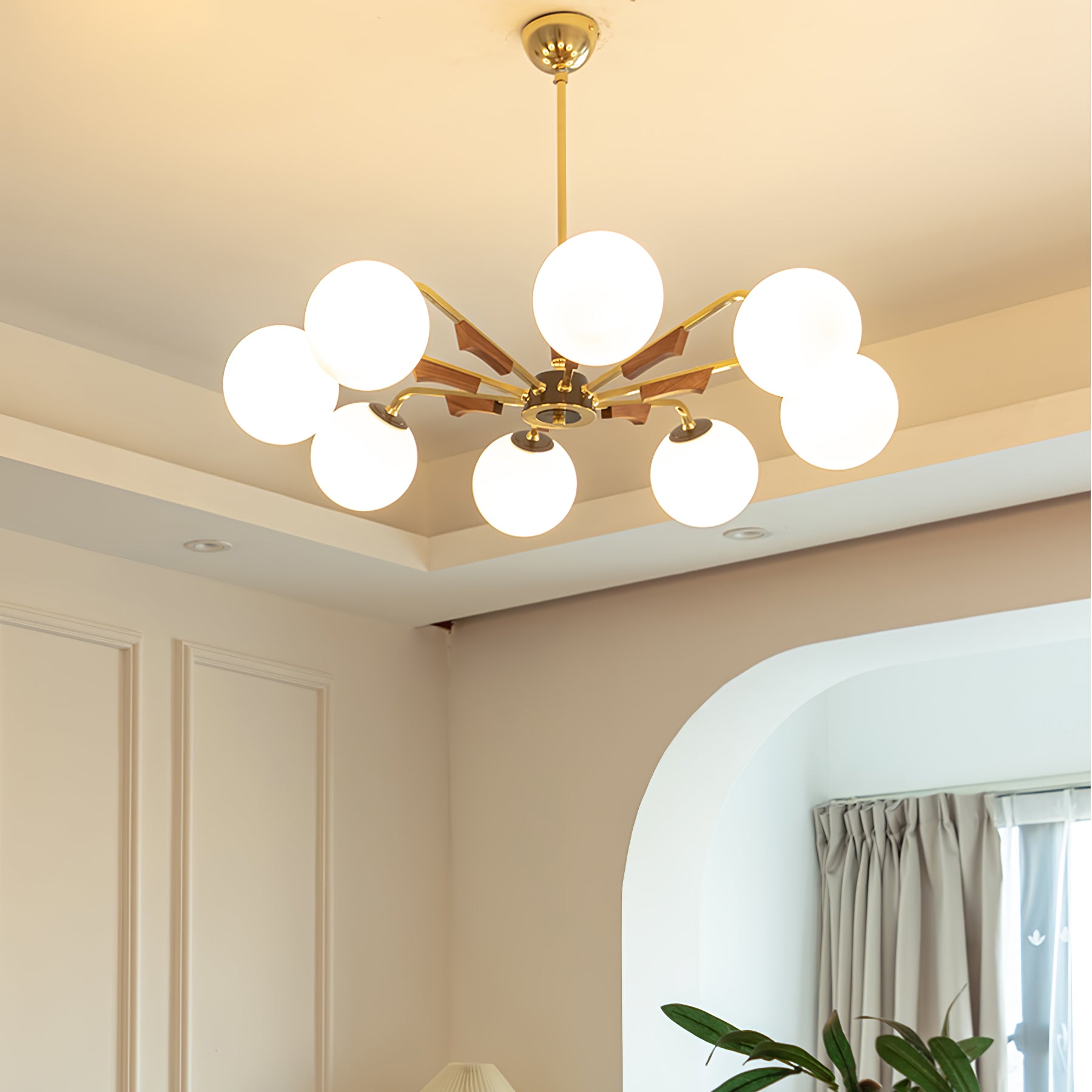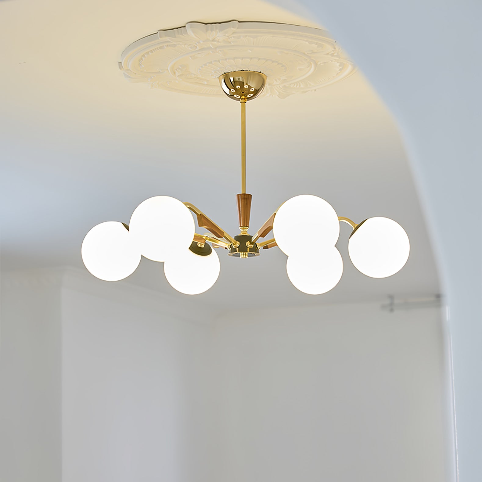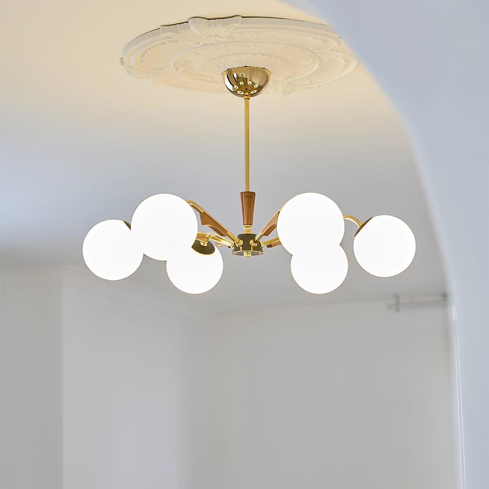 Anna lausunto Jeri Sputnik -kattokruunulla. Sen moderni pallomainen muotoilu ja useat päät mahdollistavat sen, että se lisää helposti tyyliä ja valoa tilaan. Sen säädettävien varsien avulla voit mukauttaa sen vastaamaan esteettisiä tarpeitasi. Valaise kotisi tällä katseenvangitsijalla kattokruunulla.