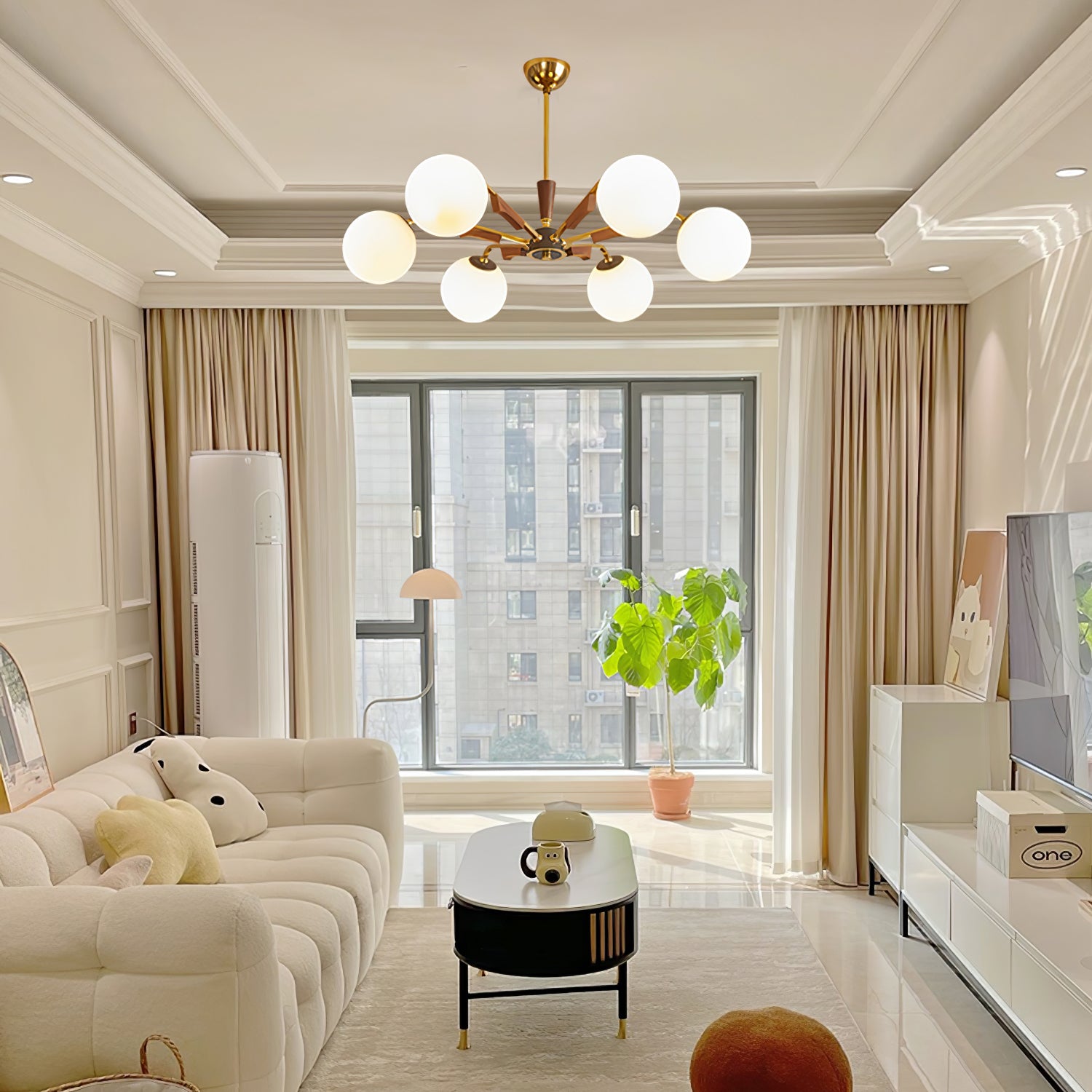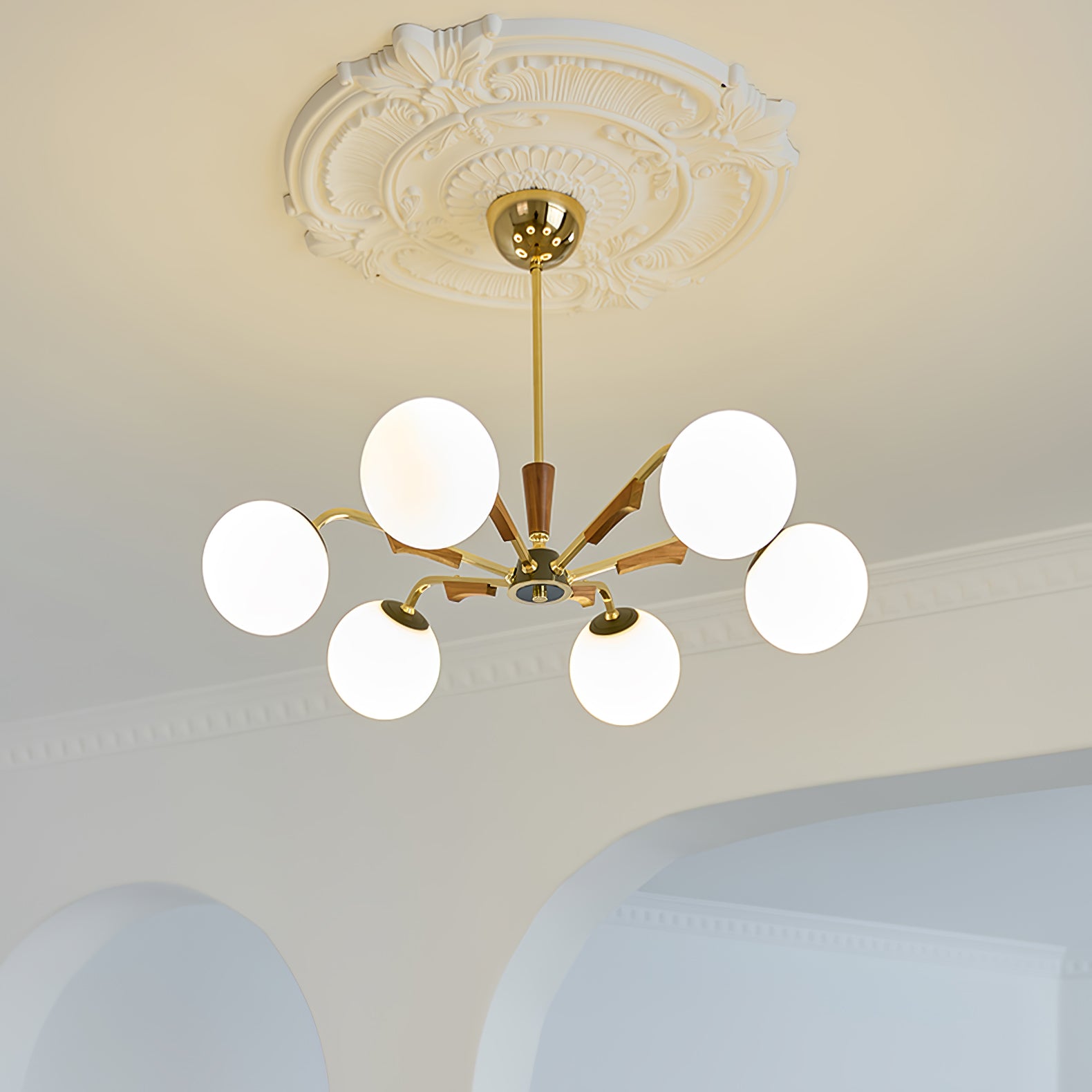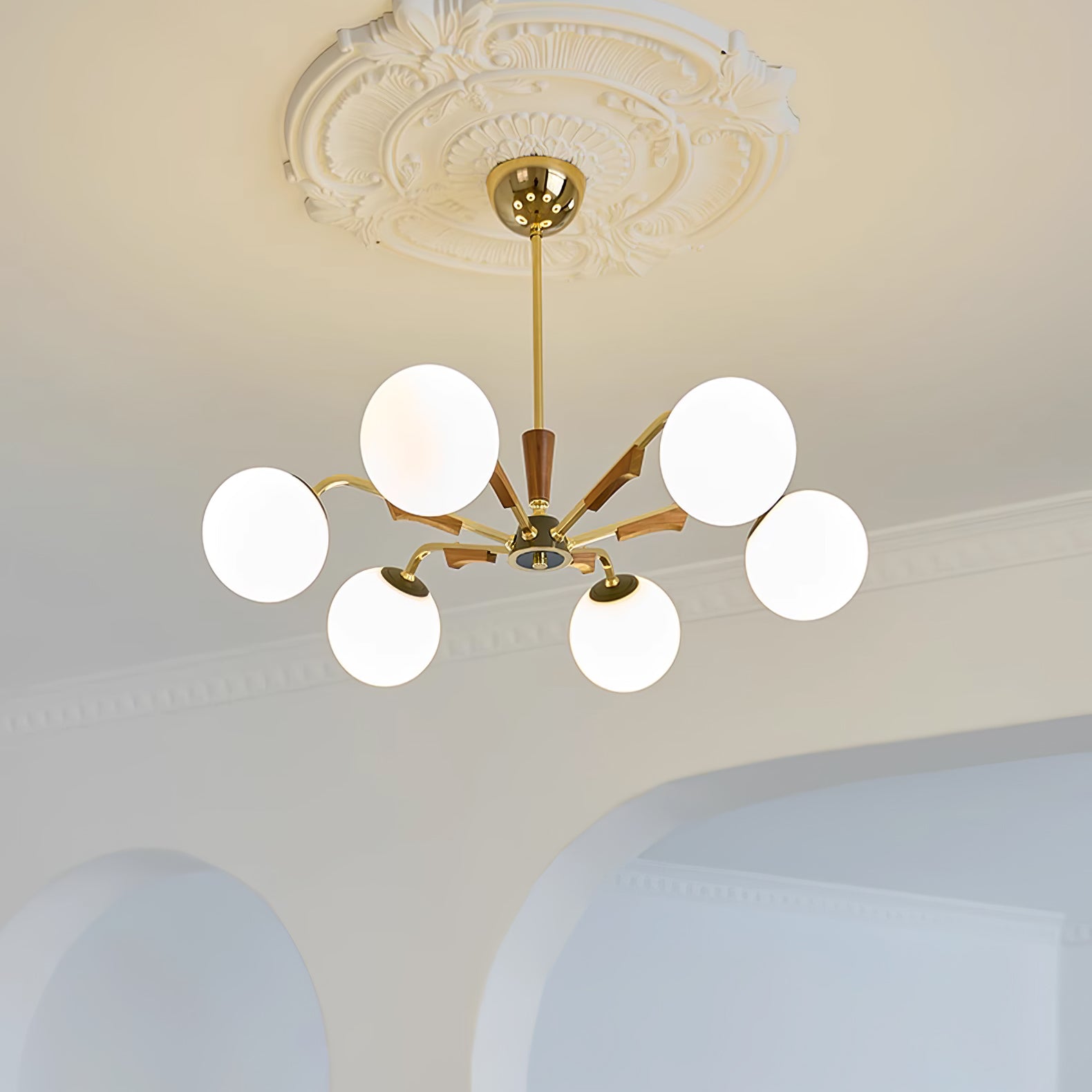 Anna lausunto Jeri Sputnik -kattokruunulla. Sen moderni pallomainen muotoilu ja useat päät mahdollistavat sen, että se lisää helposti tyyliä ja valoa tilaan. Sen säädettävien varsien avulla voit mukauttaa sen vastaamaan esteettisiä tarpeitasi. Valaise kotisi tällä katseenvangitsijalla kattokruunulla.