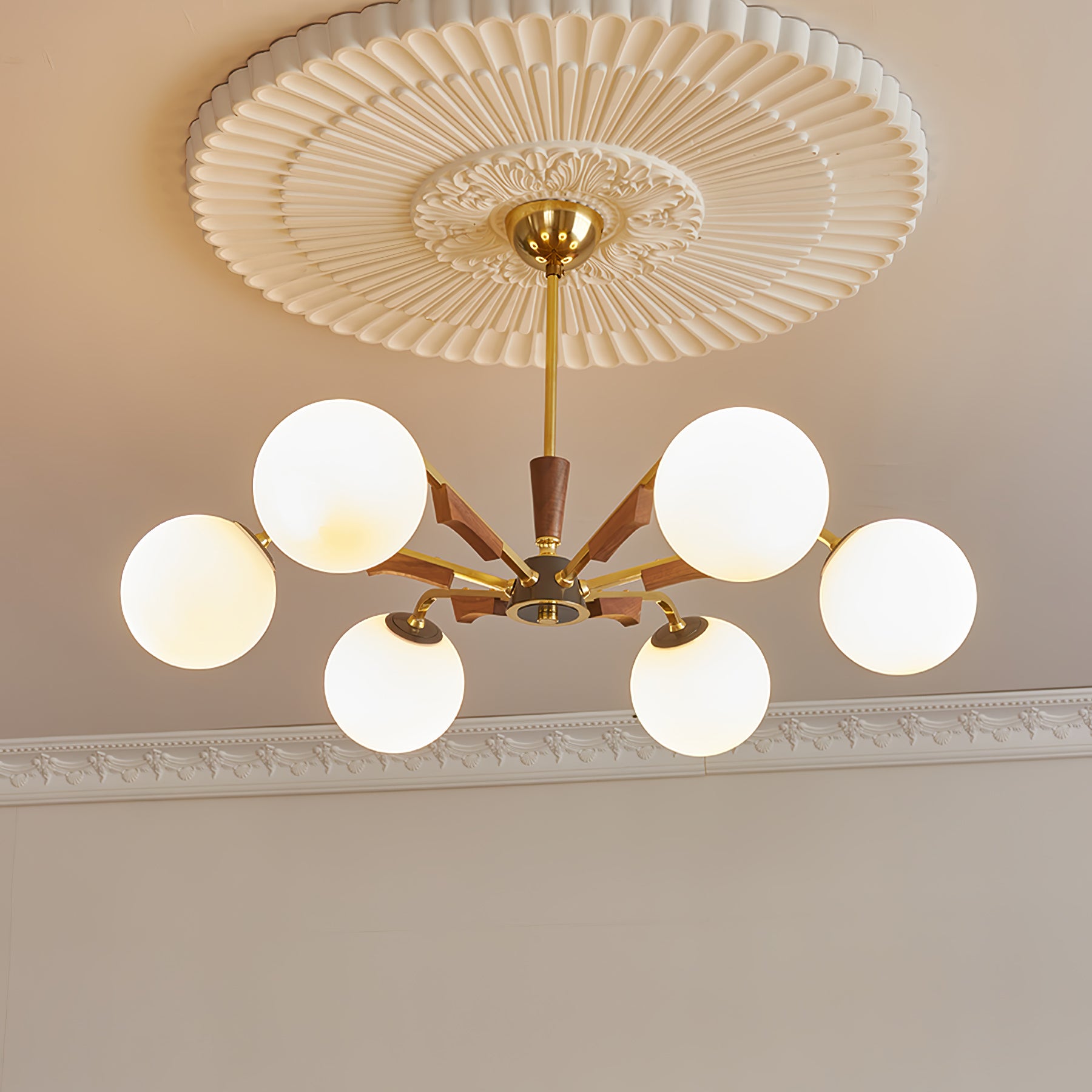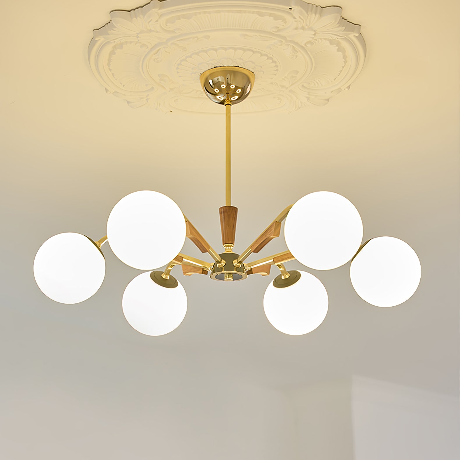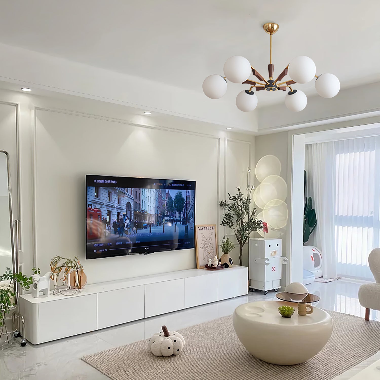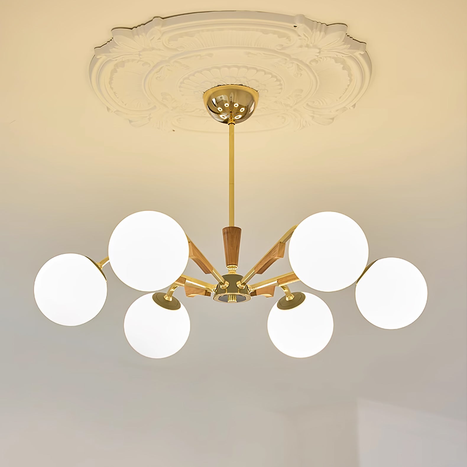 Anna lausunto Jeri Sputnik -kattokruunulla. Sen moderni pallomainen muotoilu ja useat päät mahdollistavat sen, että se lisää helposti tyyliä ja valoa tilaan. Sen säädettävien varsien avulla voit mukauttaa sen vastaamaan esteettisiä tarpeitasi. Valaise kotisi tällä katseenvangitsijalla kattokruunulla.