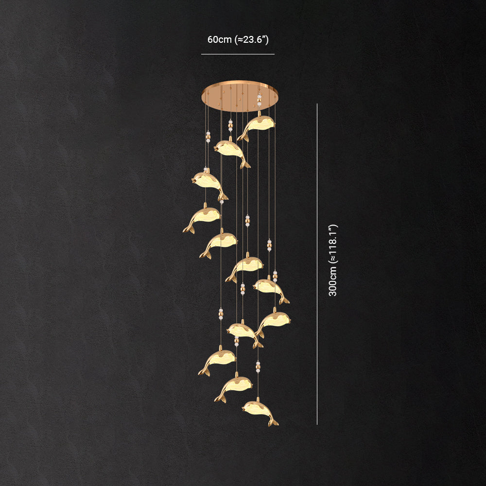 - Delfiinin muotoon suunniteltu riippuvalaisin esittelee yksinkertaisuutta ja ripaus muotoilua, esittelee modernistisen minimalismin piirteitä ja yhdistää modernia klassisia elementtejä.