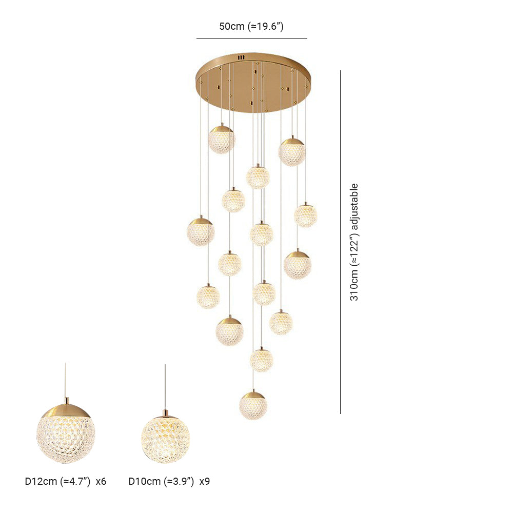 Jibril Multi Staircase Modern Art Deco -riippuvalaisin, kulta