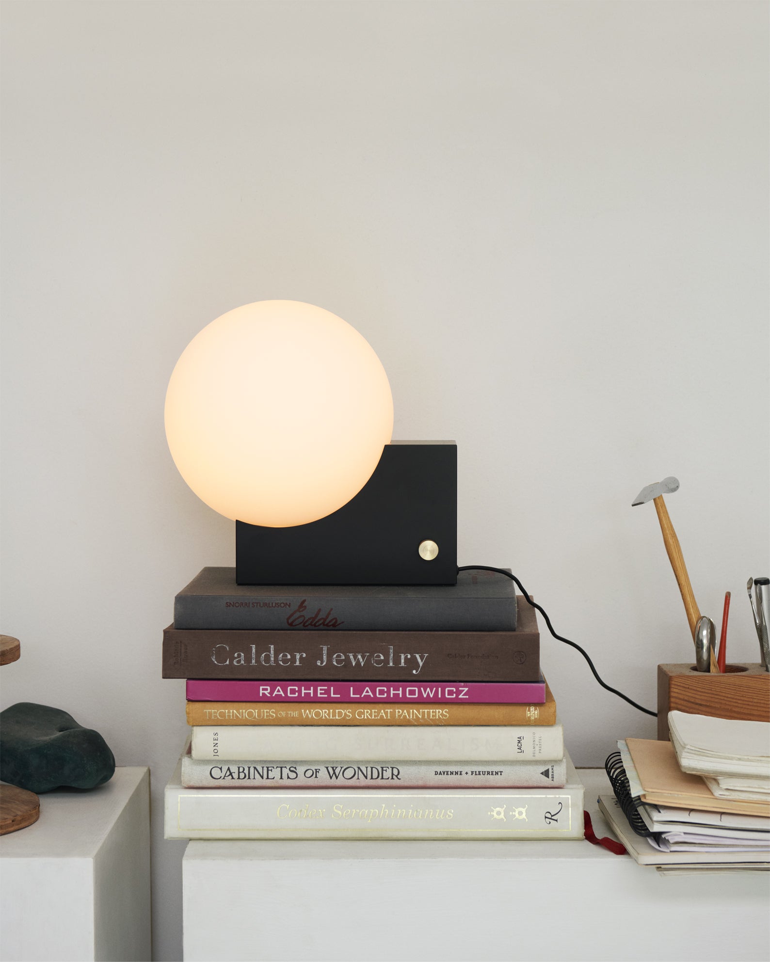 Journey-pöytälamppu on upea yhdistelmä geometriaa ja luontoa. Se on valmistettu opaalilasista, ja siinä on maanpäälliseen suorakulmioon upotettu kuun pallo, joka hajottaa häikäisemätöntä valoa. Asiantuntevasti valmistettu se luo kauniin tunnelman.