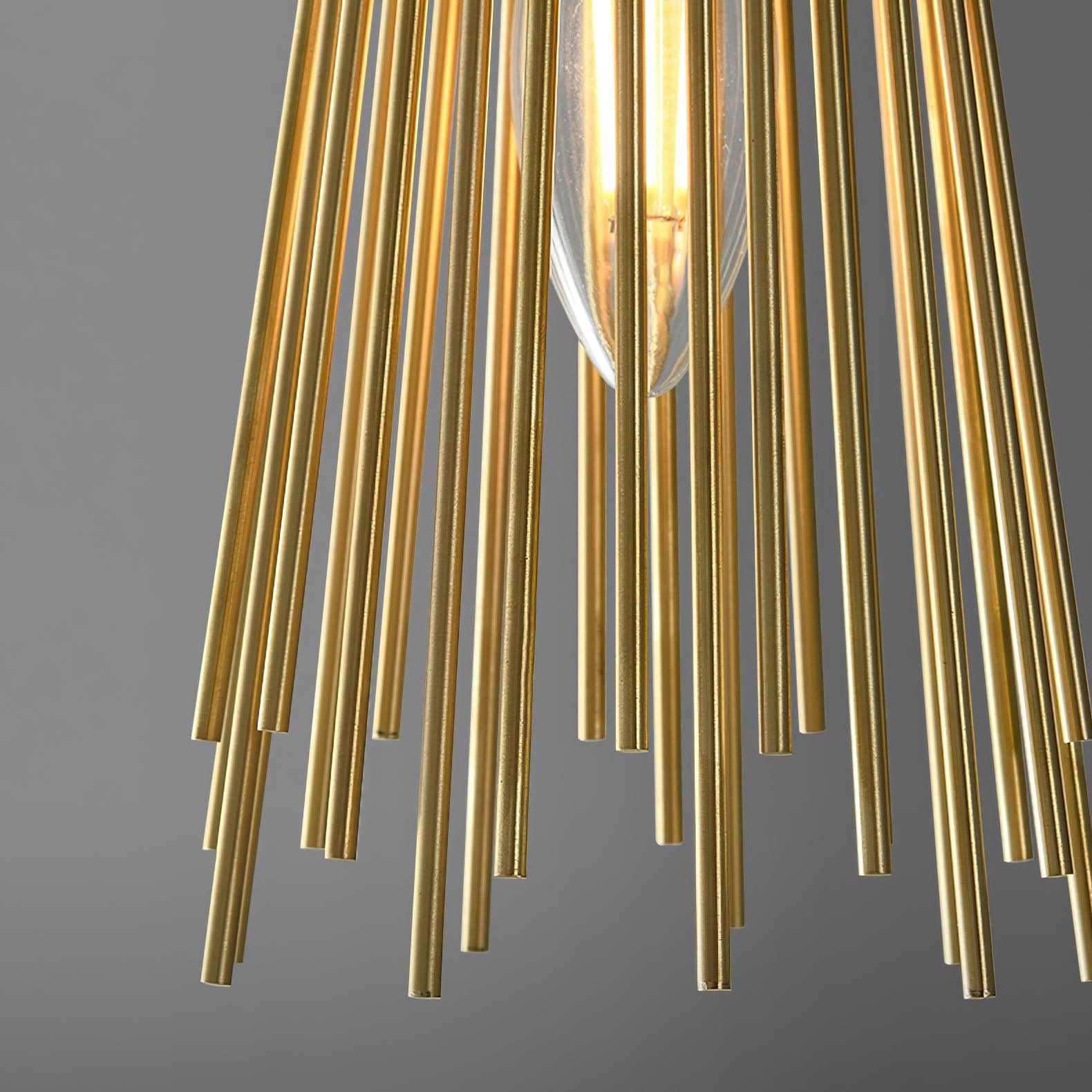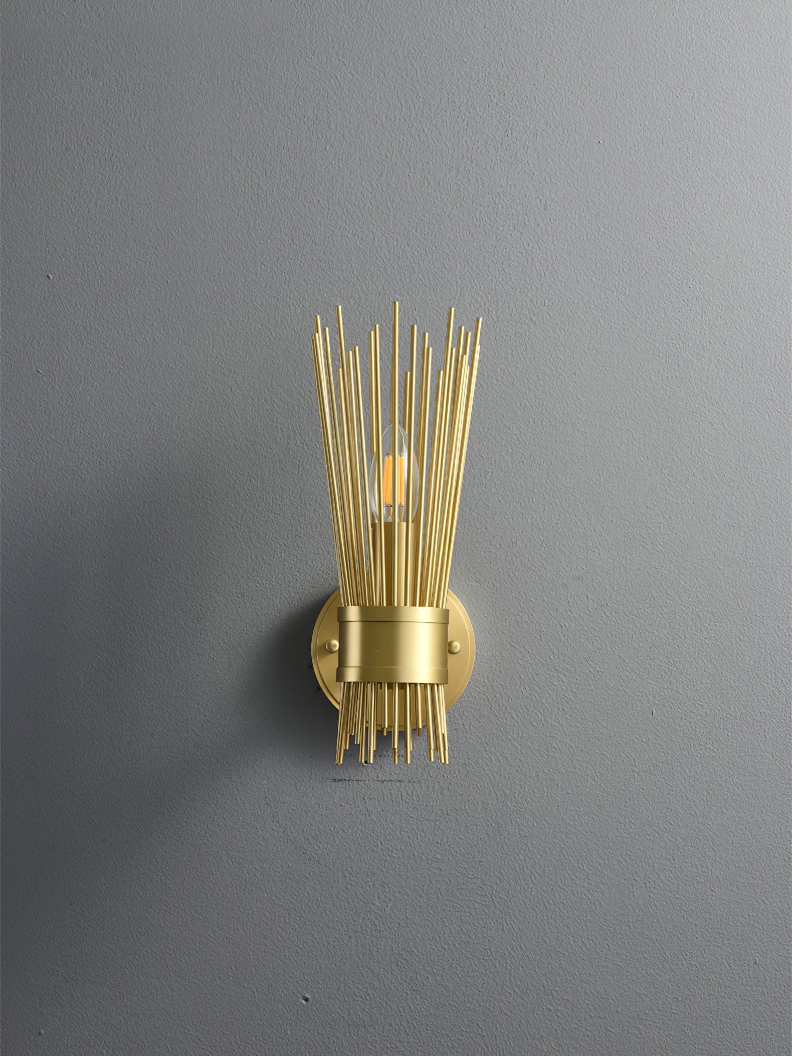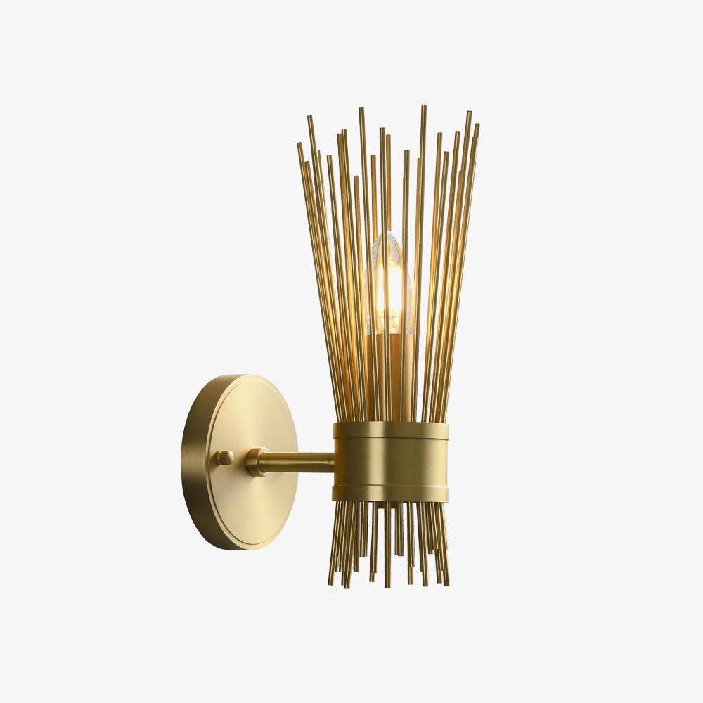 Kullaviimeistelyt sauvat säteilevät leikkisästi keskinauhasta kuin auringonsäteet. Tämä vuosisadan puolivälin moderni look on flirttaileva takaisku yksinkertaisempaan aikakauteen. Persoonallisuutensa ja viehätysvoimansa ansiosta se on varmasti näkyvissä kaikissa eteisessä, käytävässä tai makuuhuoneessa.