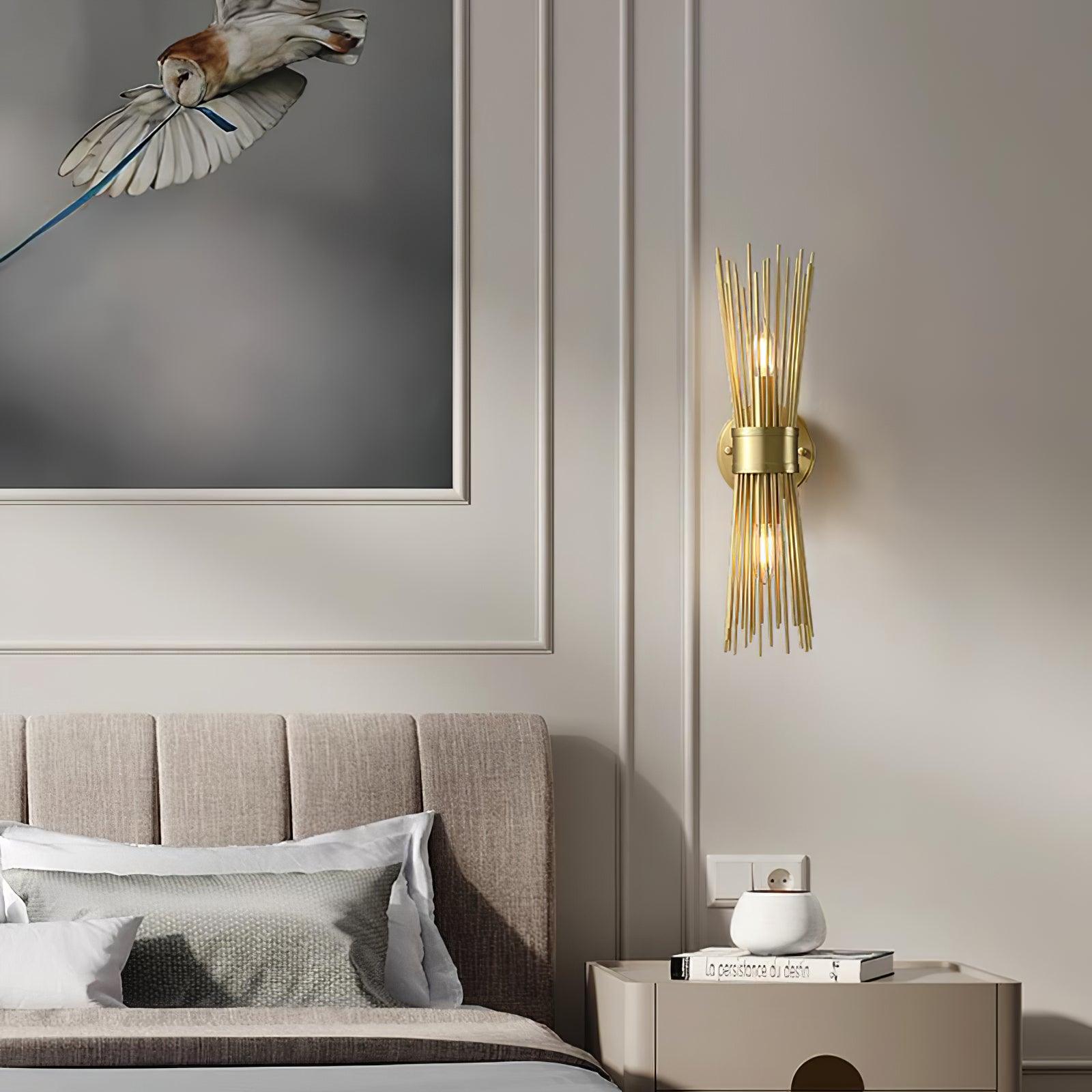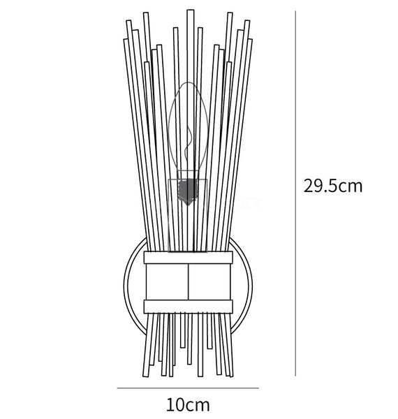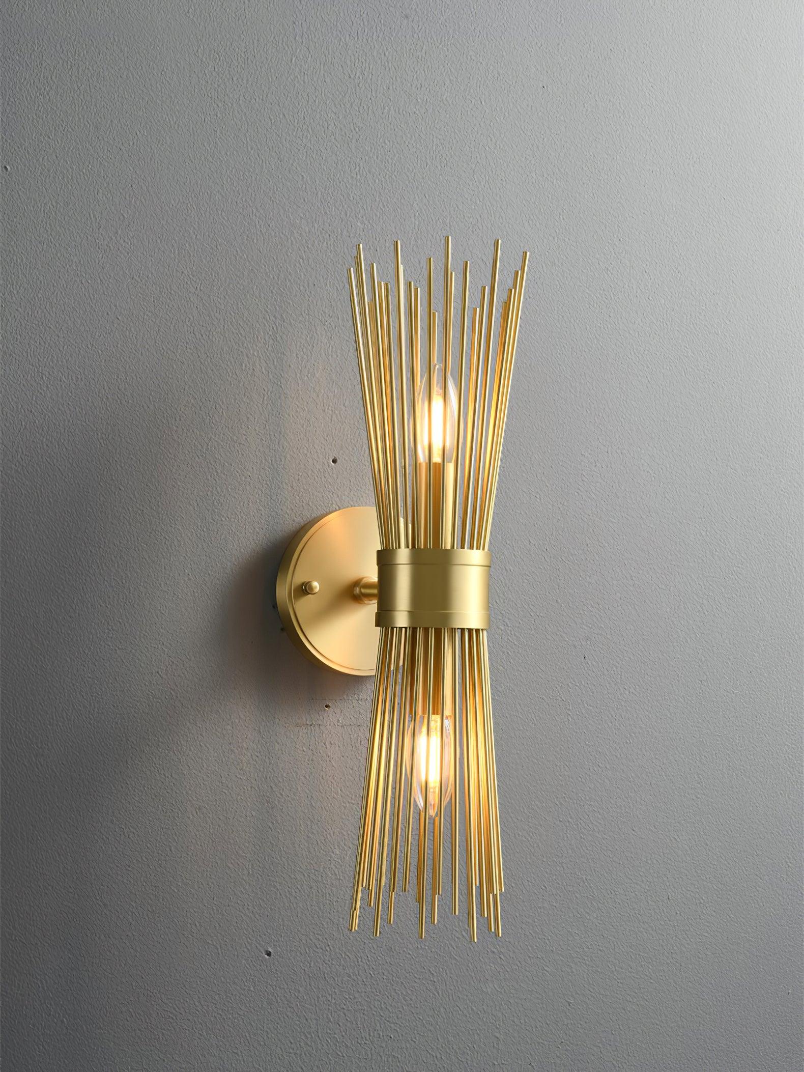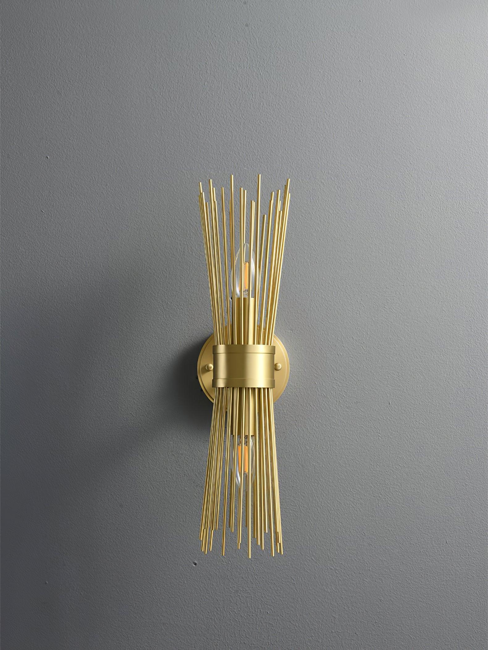 Kullaviimeistelyt sauvat säteilevät leikkisästi keskinauhasta kuin auringonsäteet. Tämä vuosisadan puolivälin moderni look on flirttaileva takaisku yksinkertaisempaan aikakauteen. Persoonallisuutensa ja viehätysvoimansa ansiosta se on varmasti näkyvissä kaikissa eteisessä, käytävässä tai makuuhuoneessa.