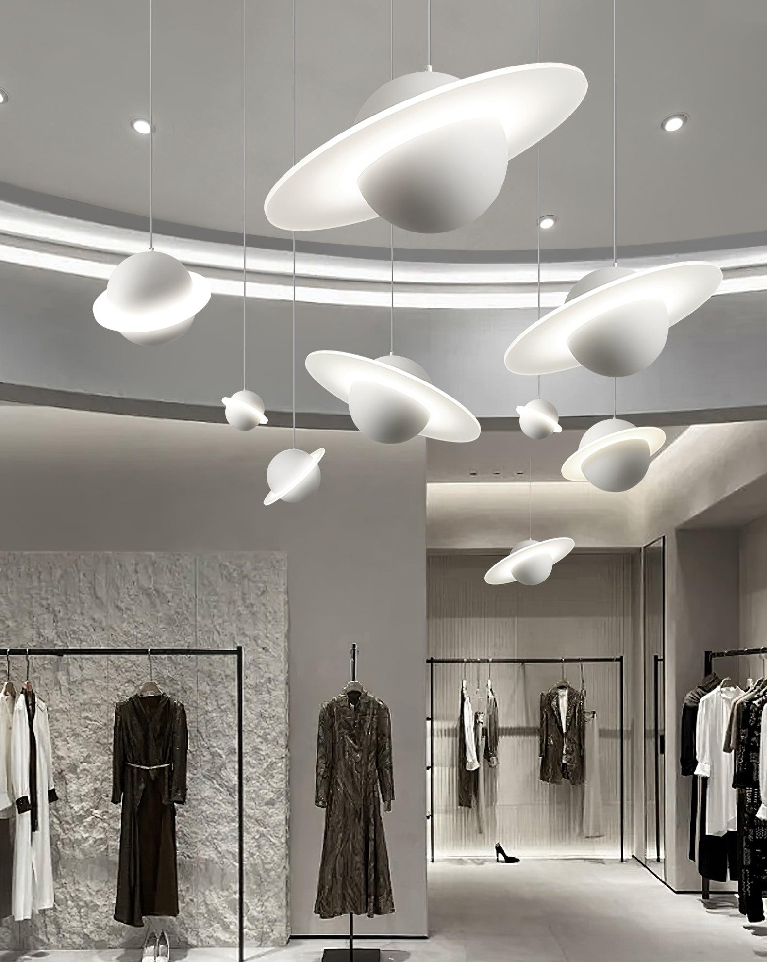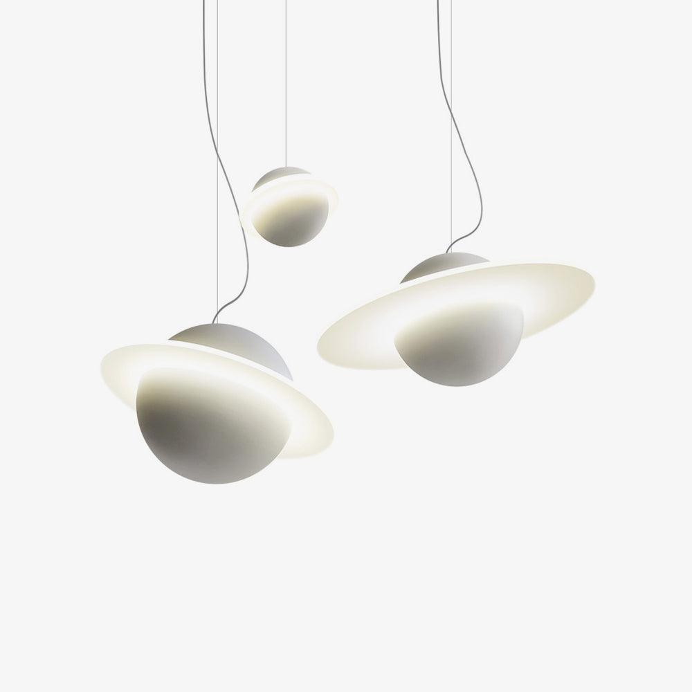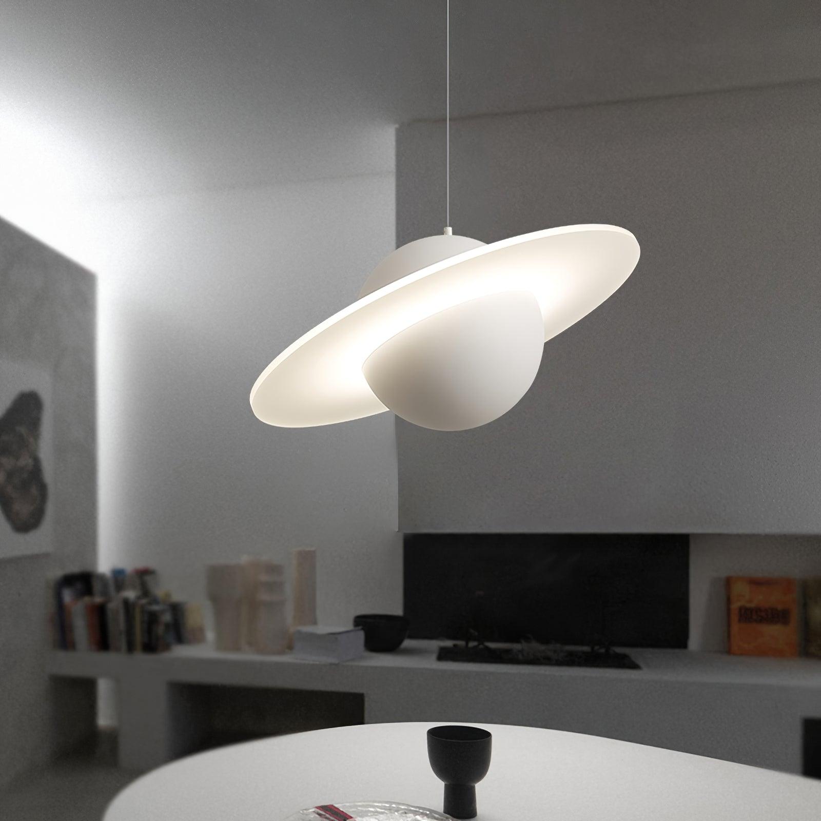 Jupiter Ring -riippuvalaisin on suunniteltu moderneihin tiloihin. Sen rautavarjostin on ympäröity kirkkaalla PVC-renkaalla, mikä luo dynaamisen ja rohkean ilmeen. Tämä myymälämme valmistama kappale lisää varmasti täydellisen modernin ilmeen mihin tahansa sisustukseen.
