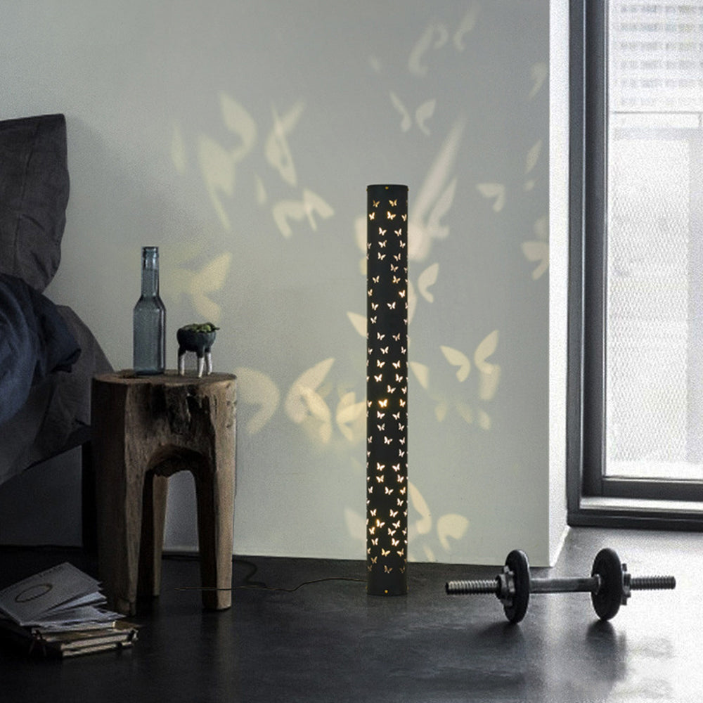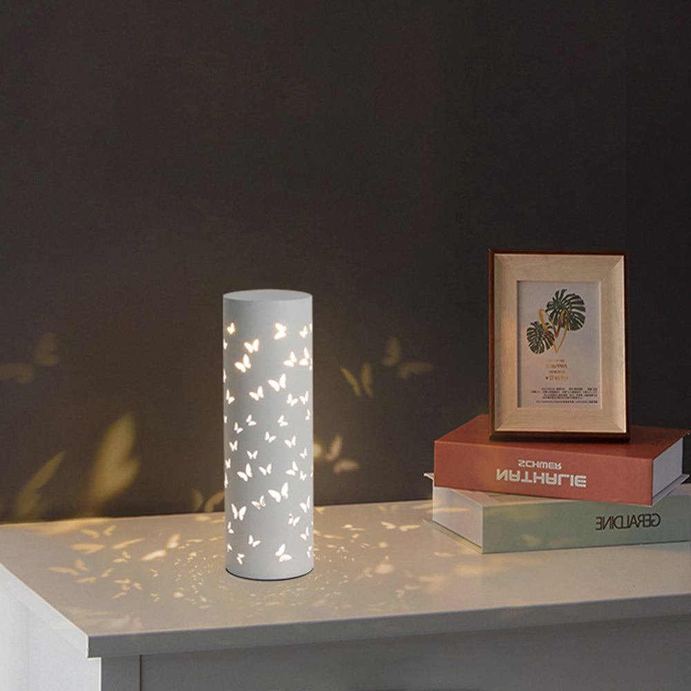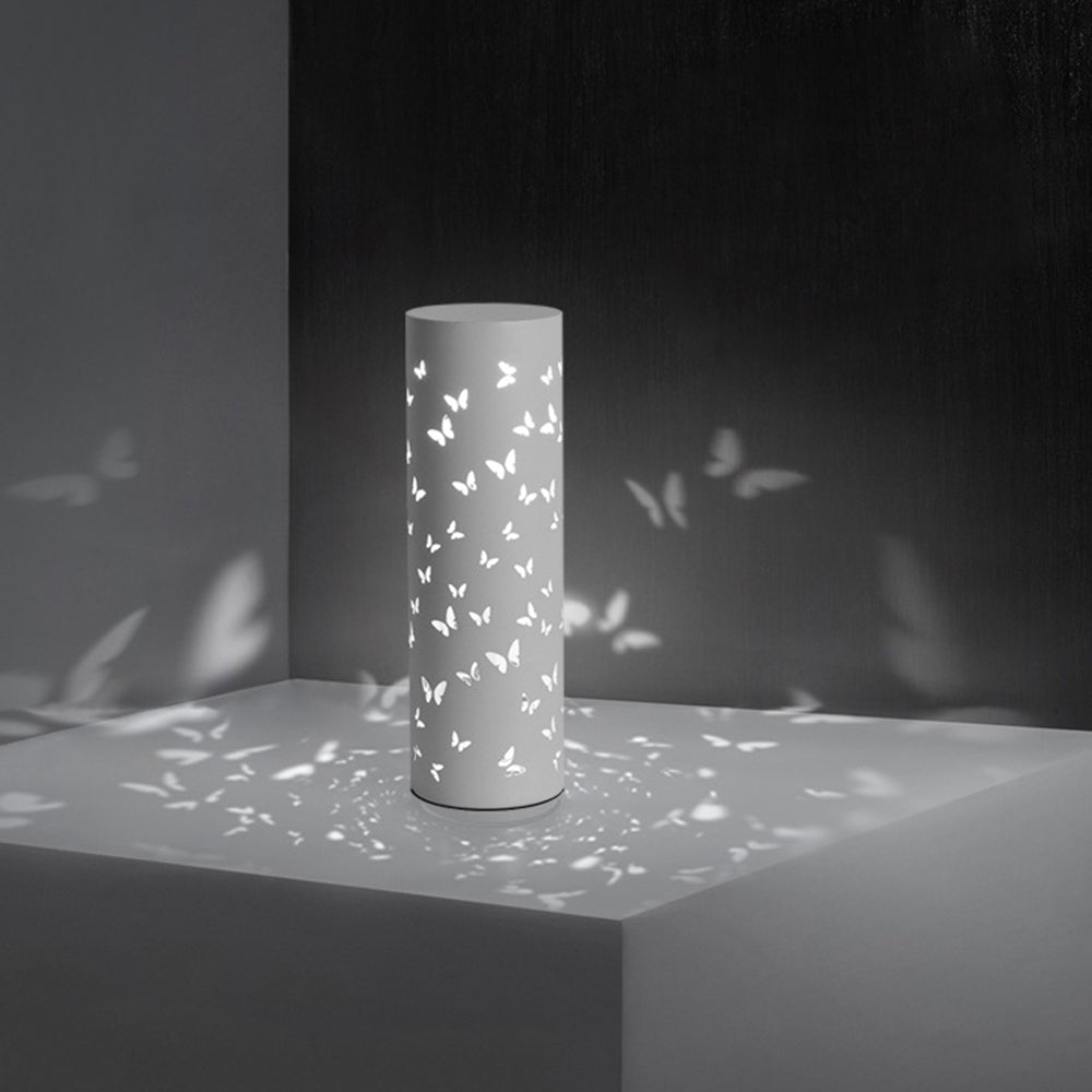 - Sylinterimuotoinen pöytä on suunniteltu ontolla perhosella. Kun valo sytytetään, perhosen varjo leviää seinälle, mikä näyttää taiteelliselta ja tunnelmalliselta.
