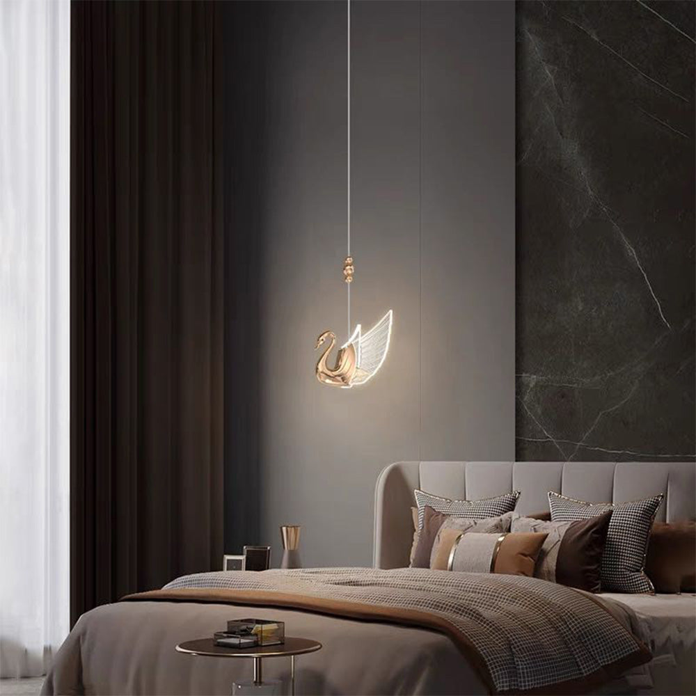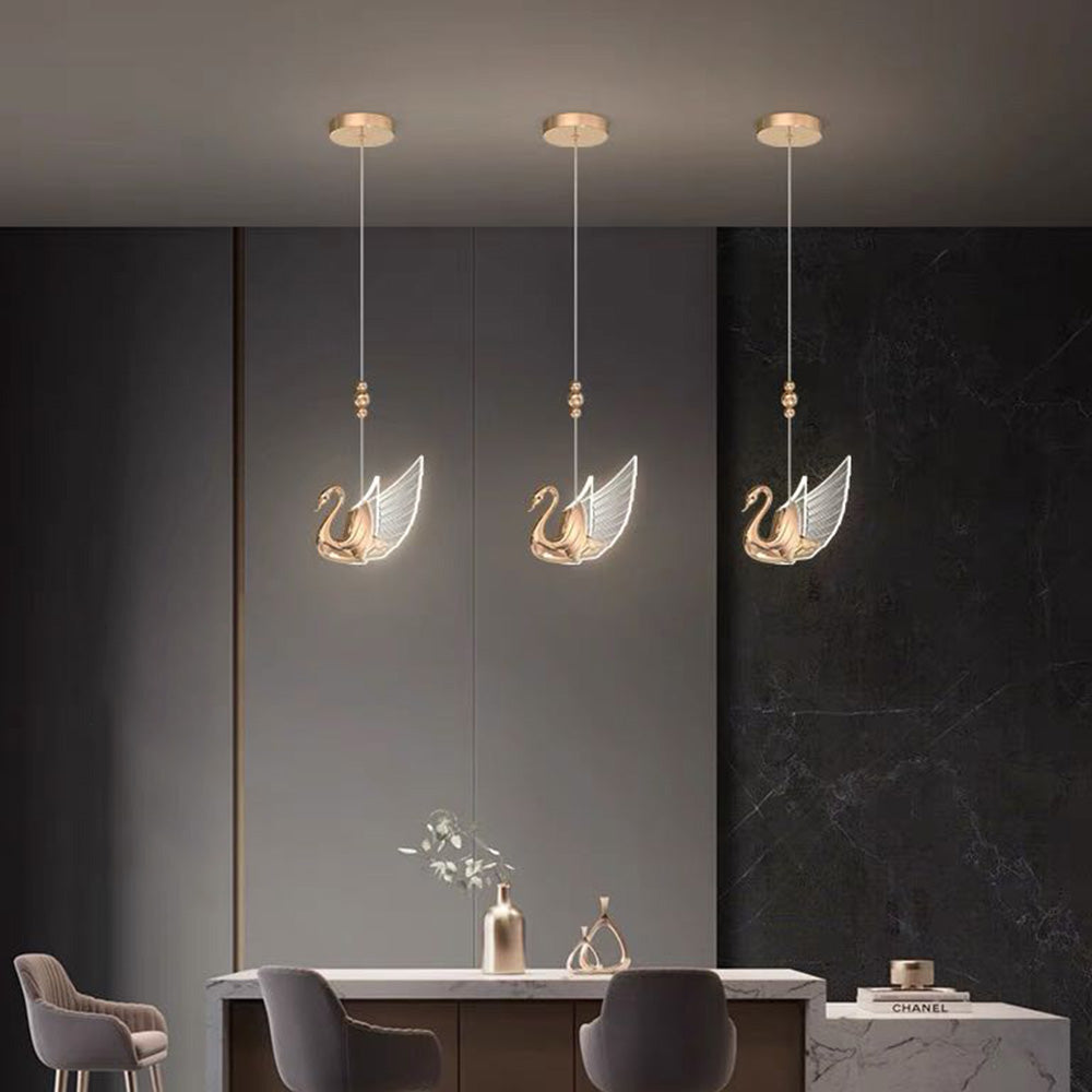 - Tämän riippuvalaisimen kohokohta on sen houkutteleva joutsenen inspiroima muotoilu. Kuvittele joutsenen loisto, joka levittää siipensä kauniisti kuin kukkiva kukka. Tämä ainutlaatuinen ja taiteellinen suoritusmuoto huokuu kauneutta, eleganssia ja luovuutta ja muuttaa kattosi hienostuneeksi kankaaksi. Se on enemmän kuin pelkkä valo. Se on taideteos, keskustelun aloitus ja todistus moitteettomasta maustasi.