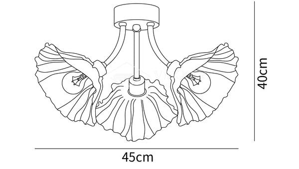 3 päätä Koko: Halkaisija 45 cm x K 40 cm / ∅ 17,8″ x K 15,7″
