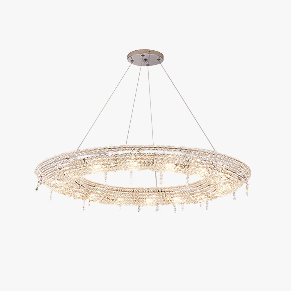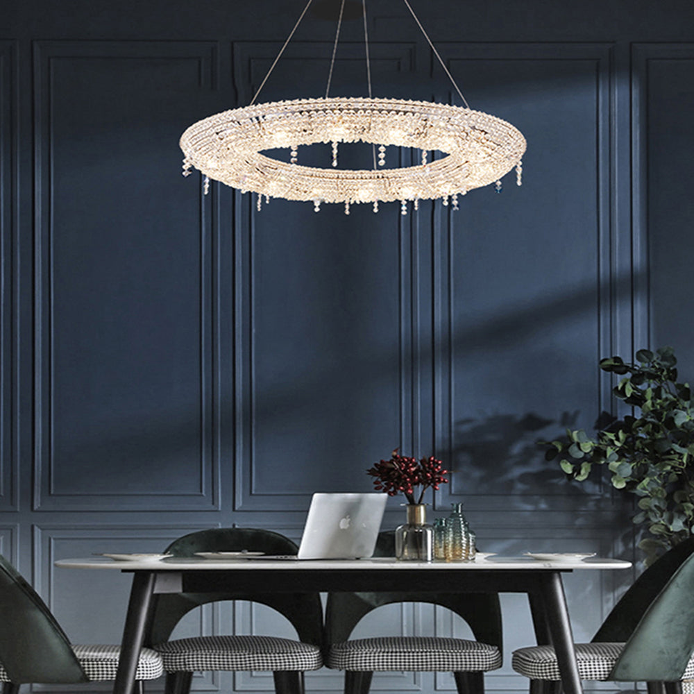 - Pyöreä kristallista ja metallista valmistettu riippuvalaisin on haalistumaton ja pystyy säilyttämään nykyaikaisen ulkonäkönsä tulevina vuosina.