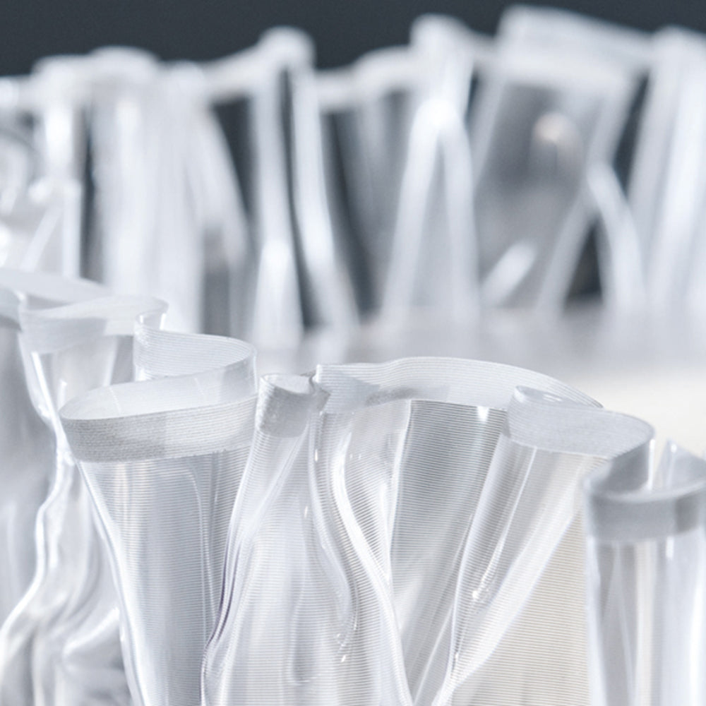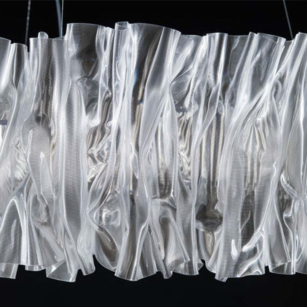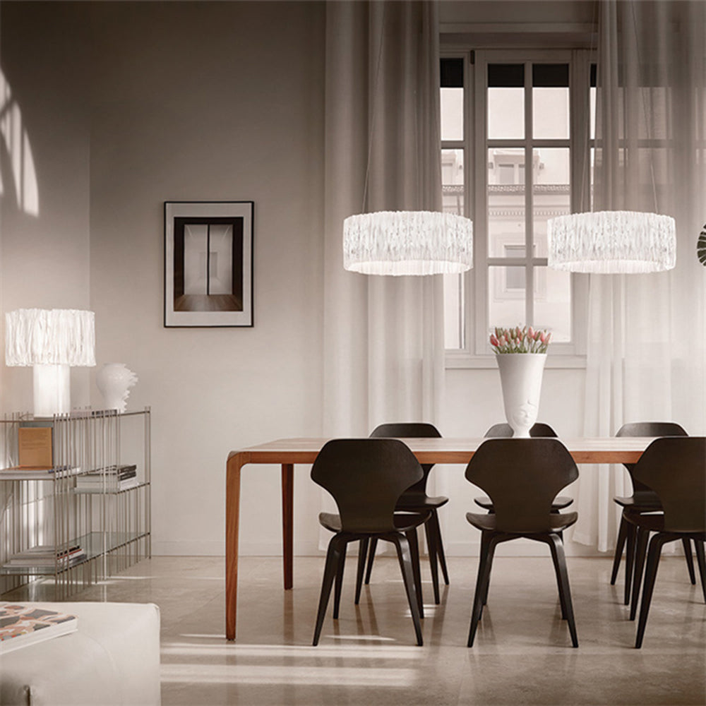 - Riippuvalaisimemme pyöreä muotoilu, jota koristaa lukuisia siroja taitoksia. Tämä monimutkainen käsityötaito antaa valolle pehmeän ja kevyen ulkonäön, mutta myös täyttää sen taiteellisen viehätyksen, joka ylittää tavallisen valaistuksen. Katso, kuinka siitä tulee huoneesi keskipiste, oma taideteos.