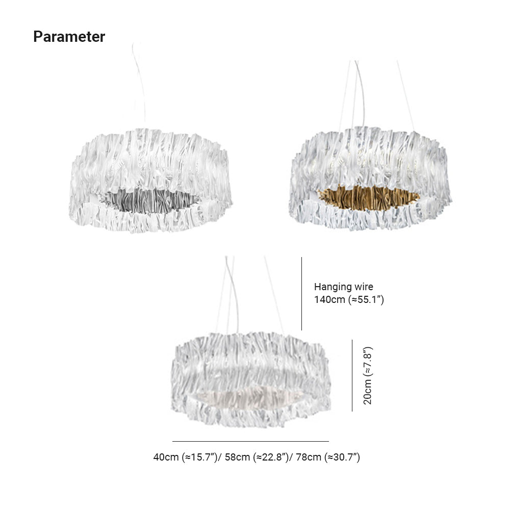Kristy Modern Luxury laskostettu riippuvalaisin, pyöreä, akryyli/ruostumaton teräs