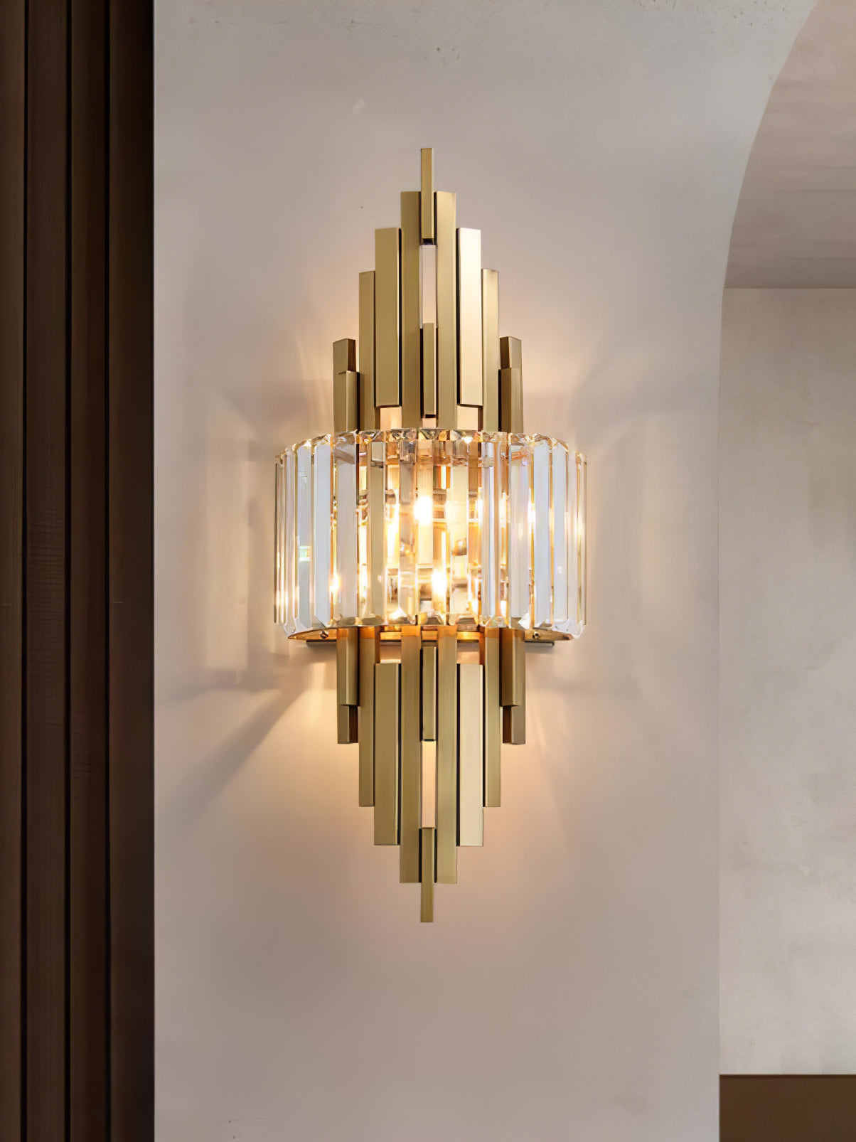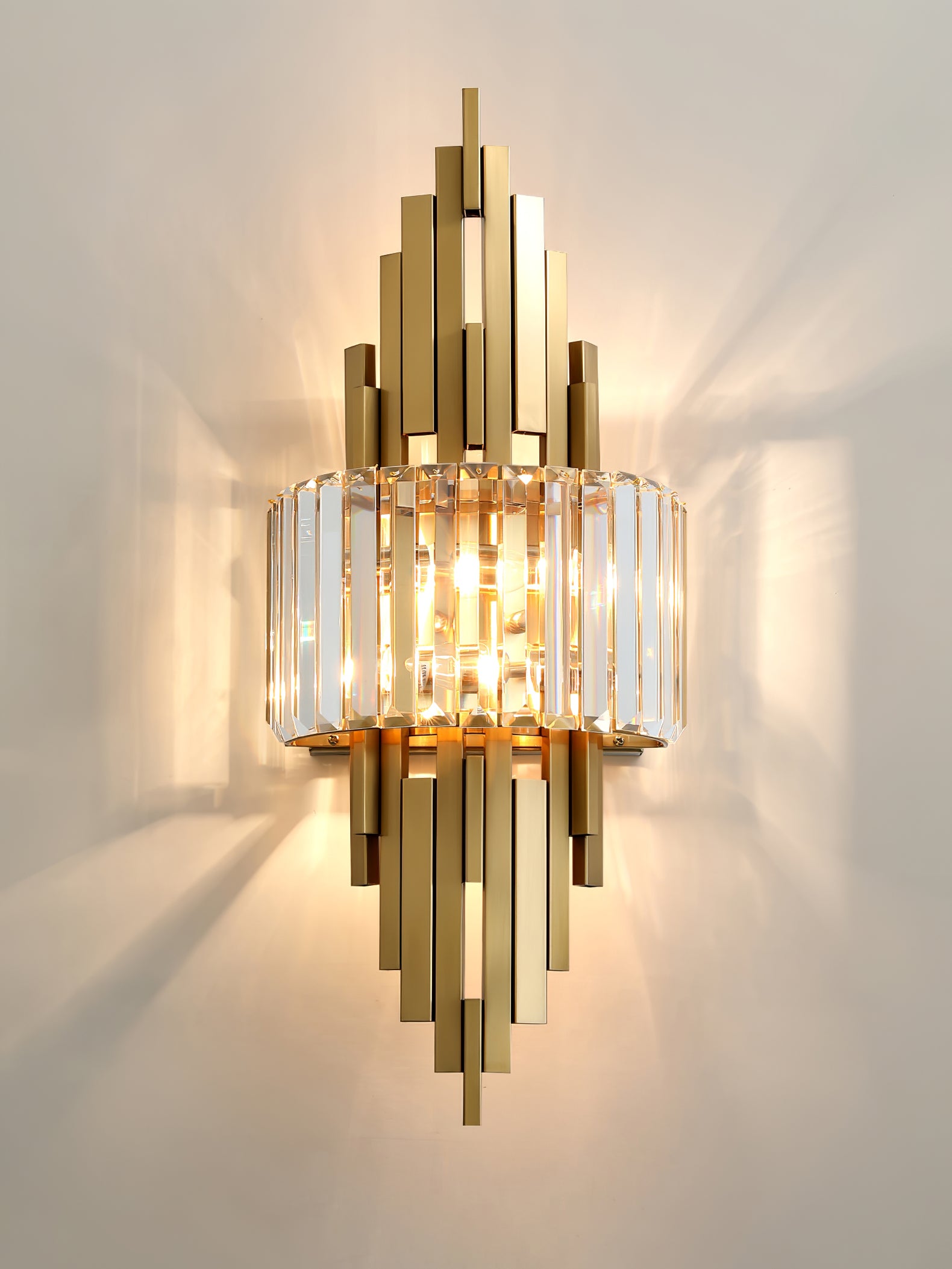 Kubica Crystal Wall Lamp on ylellinen moderni seinävalaisin. Sen kultainen ruostumaton teräsrunko on koristeltu geometrisella kristallilasilla, mikä luo tyylikkään ja hienostuneen lisäyksen mihin tahansa huoneeseen. Kubica Crystal -seinävalaisin tarjoaa pehmeän, lämpimän valon yhdistettynä houkuttelevaan ylellisyyteen.