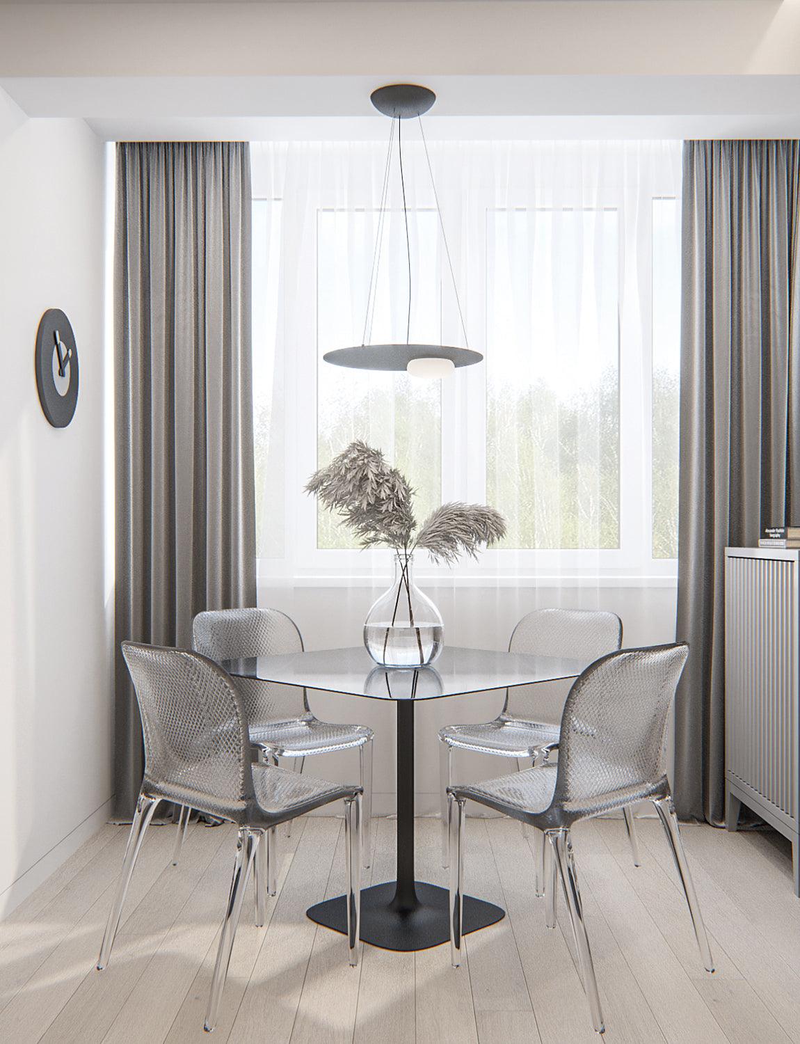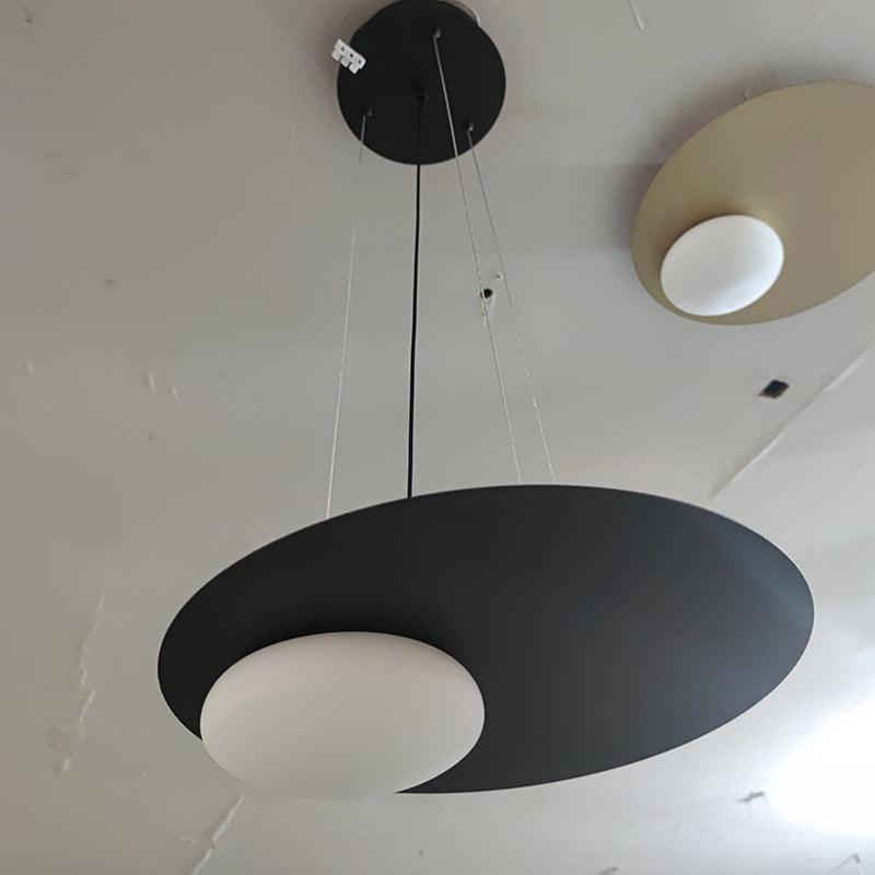 Moderni valaisin on valmistettu korkealaatuisesta raudasta ja loistaa ainutlaatuisella muotoilulla, joka tekee siitä komean lisän asuintiloihin. Puolipallon muotoinen puhalletun lasin diffuusori, jossa on energiatehokas LED-valolähde, on sijoitettu lakatun rautalevyn päälle.