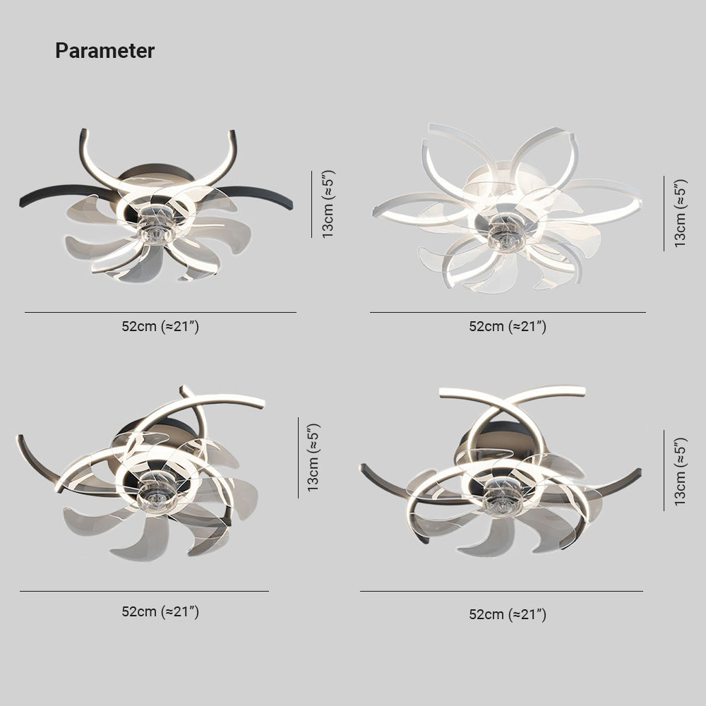 Lacey kattotuuletin valolla, 4 tyyliä, L 21"