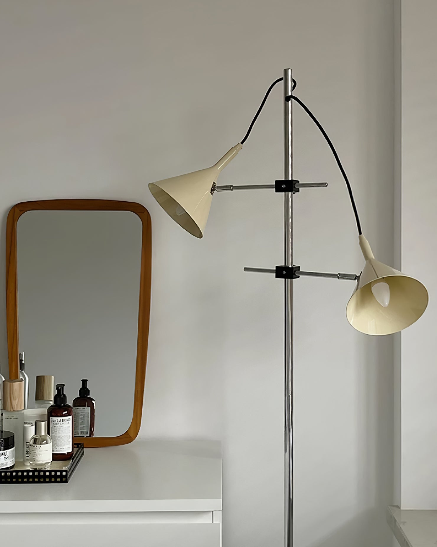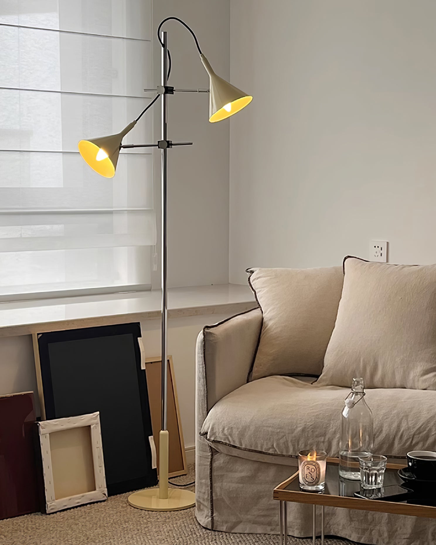 Esittelyssä Laiton-lattiavalaisin, ylellinen ja elegantti lisä kotisi sisustukseen. Lämpimän, valkoiseksi sävytetyn valaistuksen ansiosta tämä lamppu luo kodikkaan tunnelman mihin tahansa huoneeseen. Sen säädettävät varret, jotka muistuttavat kauniita kukintoja, lisäävät ripauksen hienostuneisuutta. Valaise tilaasi tyylillä.