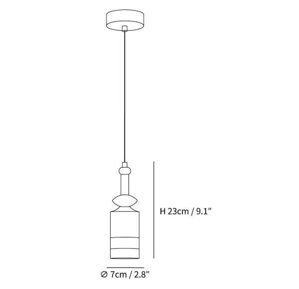 Malli A Koko: Halkaisija 7 cm x K 23 cm / ∅ 2,8″ x K 9,1″