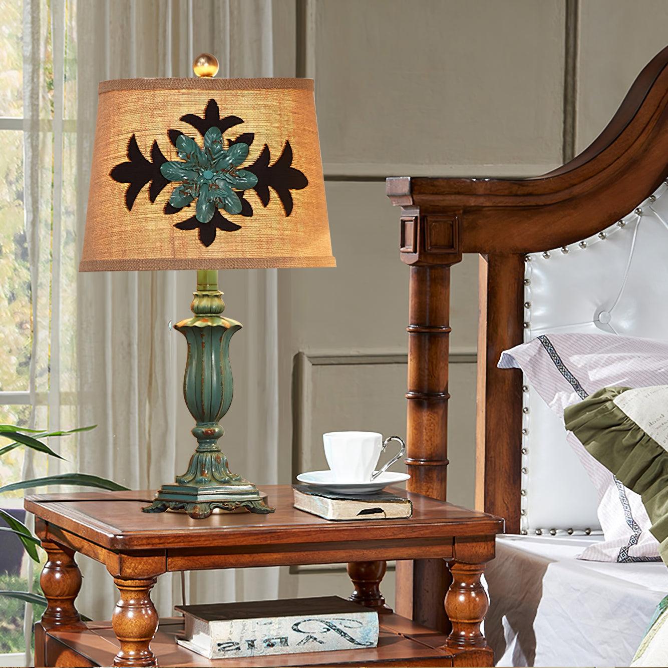 Tässä pöytävalaisimessa on korotettu muotoilu, joka on tehty erottumaan pääsviitissäsi tai olohuoneessasi. Se on valmistettu hartsista, ja siinä on kapeneva siluetti, jossa on ahdistuneita yksityiskohtia, jotka luovat rakastamamme vintage-tunnelman. Yläosassa se on viimeistelty harmaanruskealla kangasvarjostimella, jossa on silmiinpistävä kellomainen siluetti.