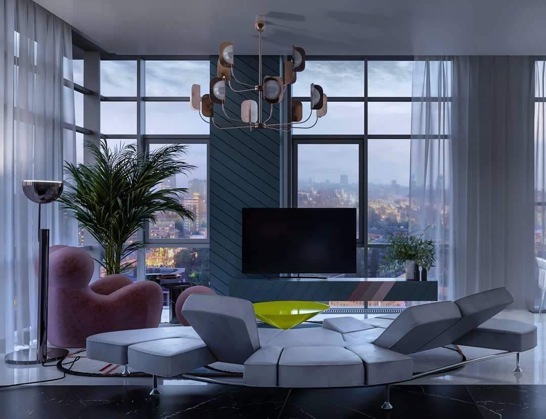 Marilyn Luxury Feather Crystal -kattokruunu, olohuone