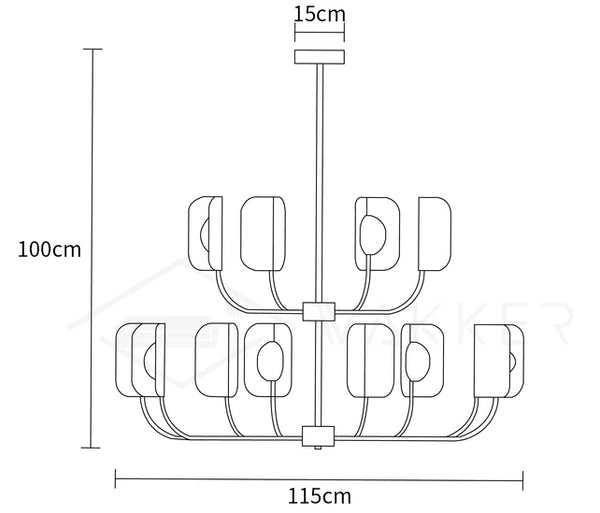 Tämä tyylikäs kattokruunu on saanut inspiraationsa luonnosta, ja siinä on kevyt ja eklektinen rakenne käsin taotusta raudasta, jossa on tarkasti tutkittu kiillotettu kupariviimeistely. Se ei kuulu mihinkään tiettyyn tyyliin ja sopii sekä moderniin että klassiseen sisustukseen.