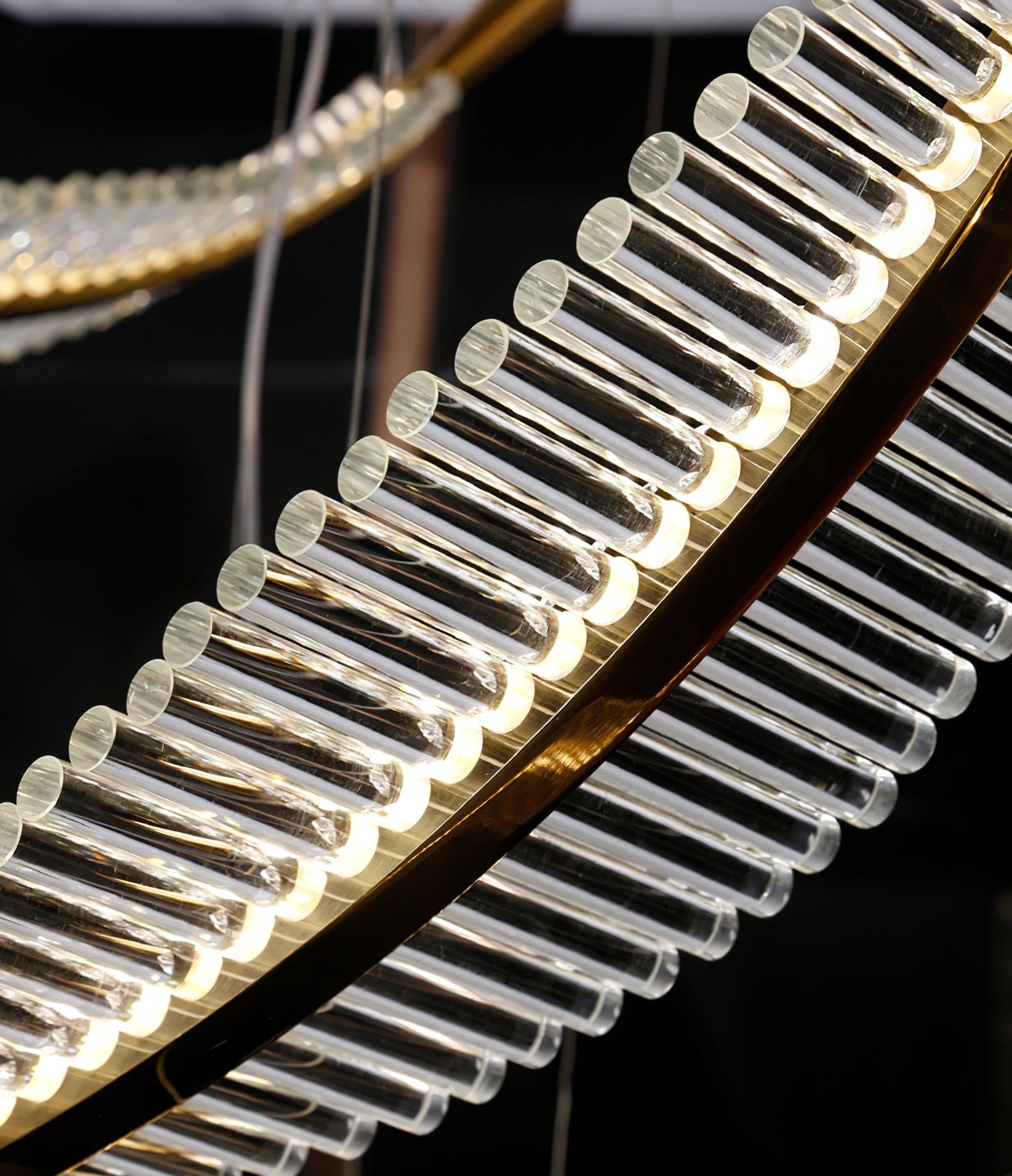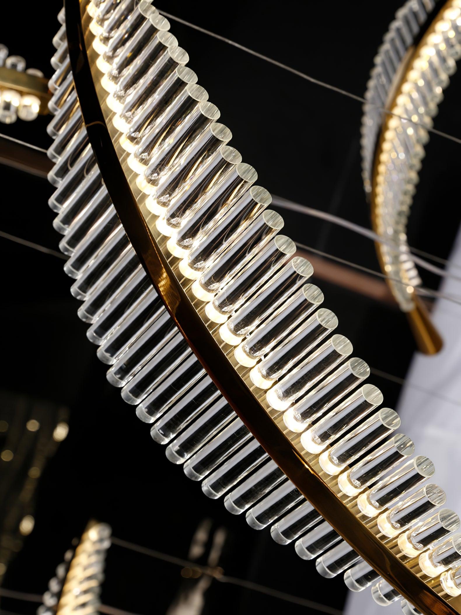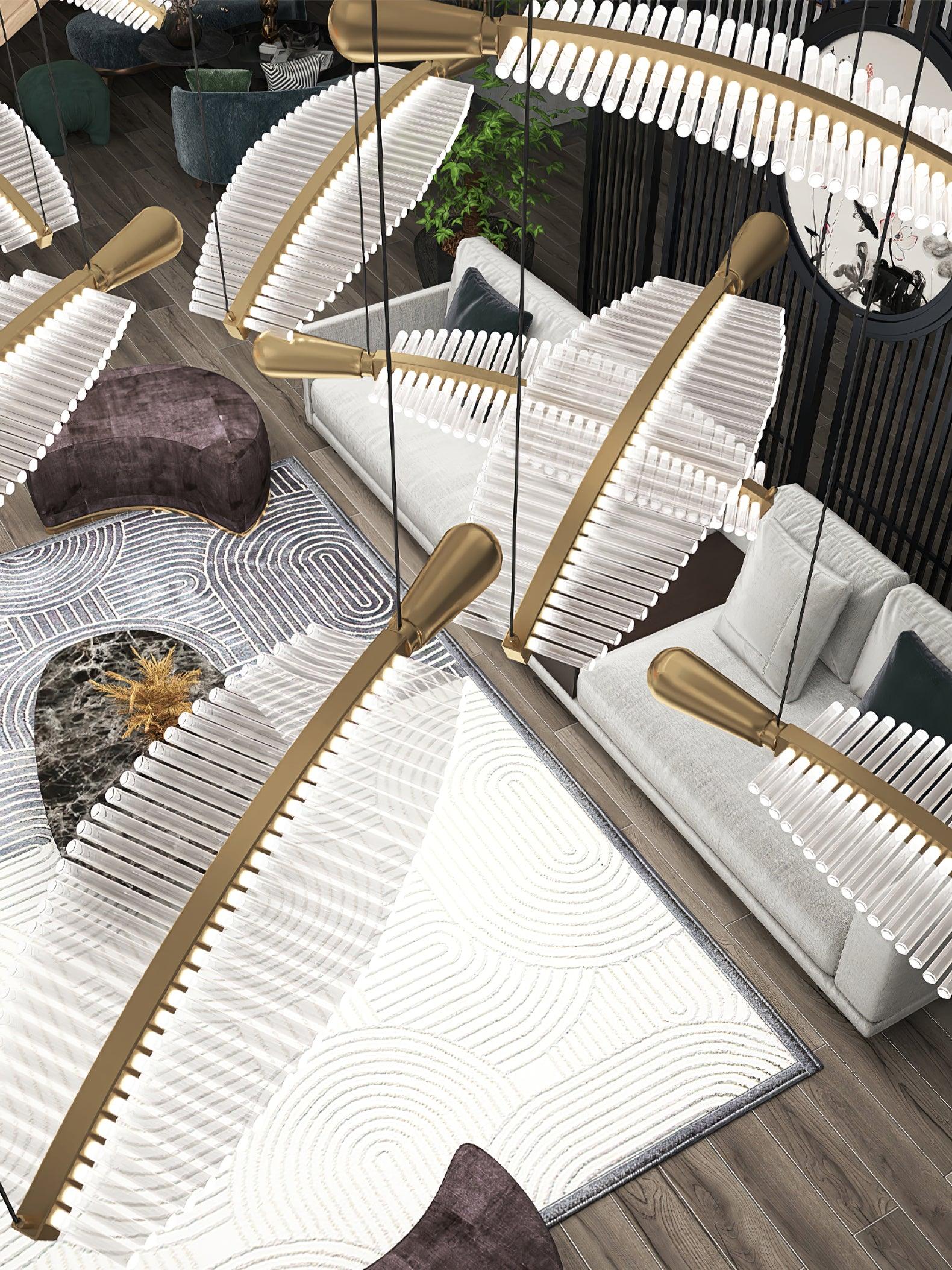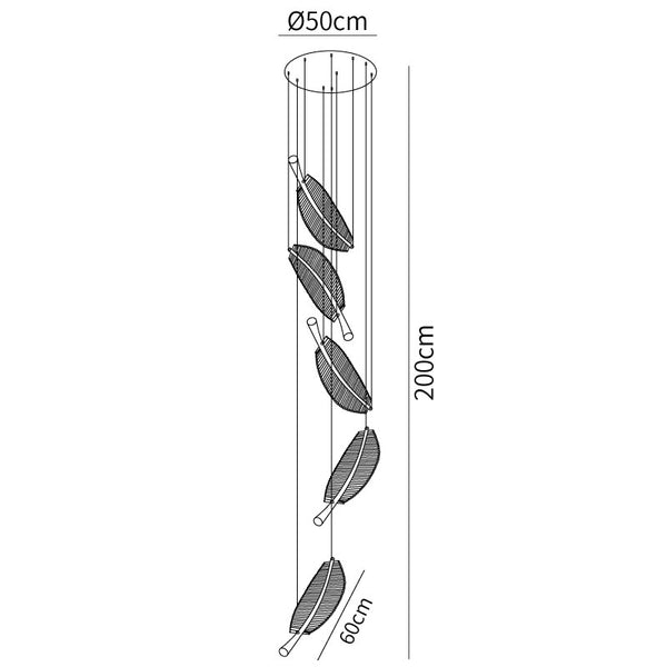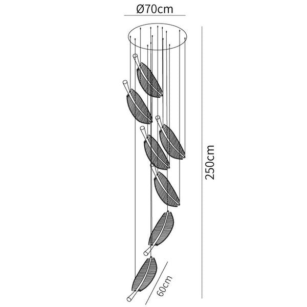 Italialaista taiteellisuutta ja eleganssia ruumiillistuneena. Leaf LED-kattokruunu on asiantuntevasti käsintehty näyttö silmiinpistävistä akryylilehdistä, jotka on kiinnitetty jauhemaalatuun metallirunkoon kullanvärisillä päätteillä. Kun valo tulvii läpi, jokainen monimutkainen yksityiskohta korostuu, mikä luo ylellisen viehätyksen, joka täydentää upeasti ympäristön valaistusta. Tämä kattokruunu ansaitsee sijoittamisen näkyvään tilaan, kuten ruokasaliin tai suureen aulaan.