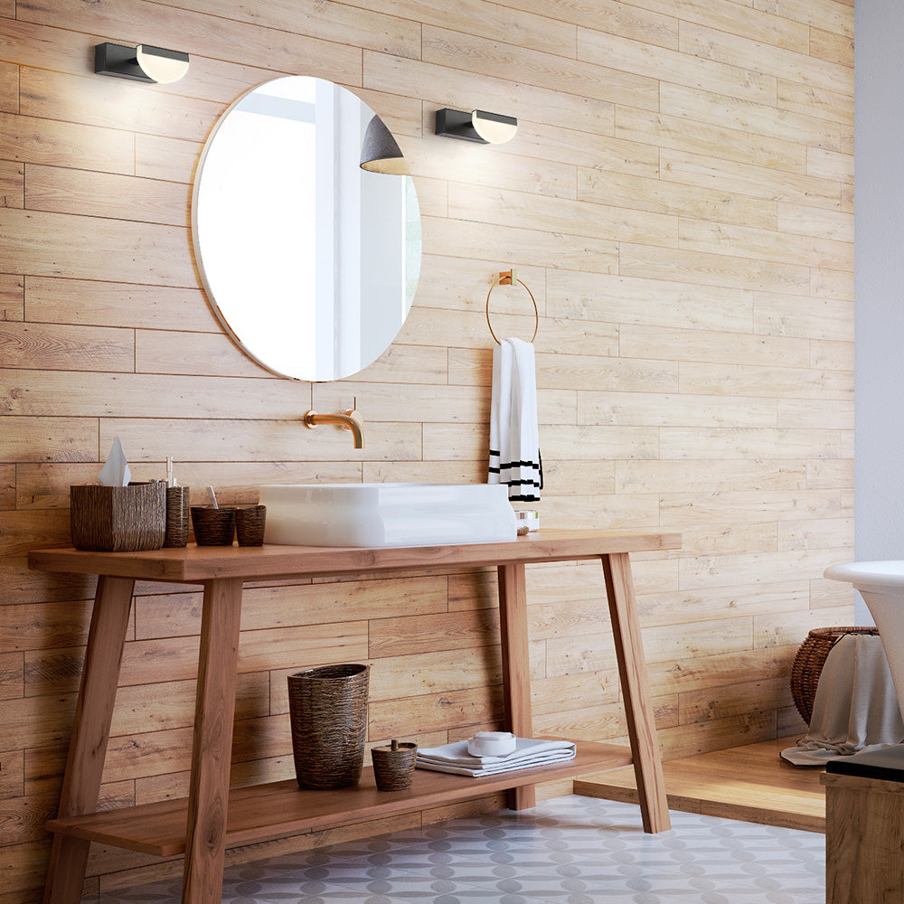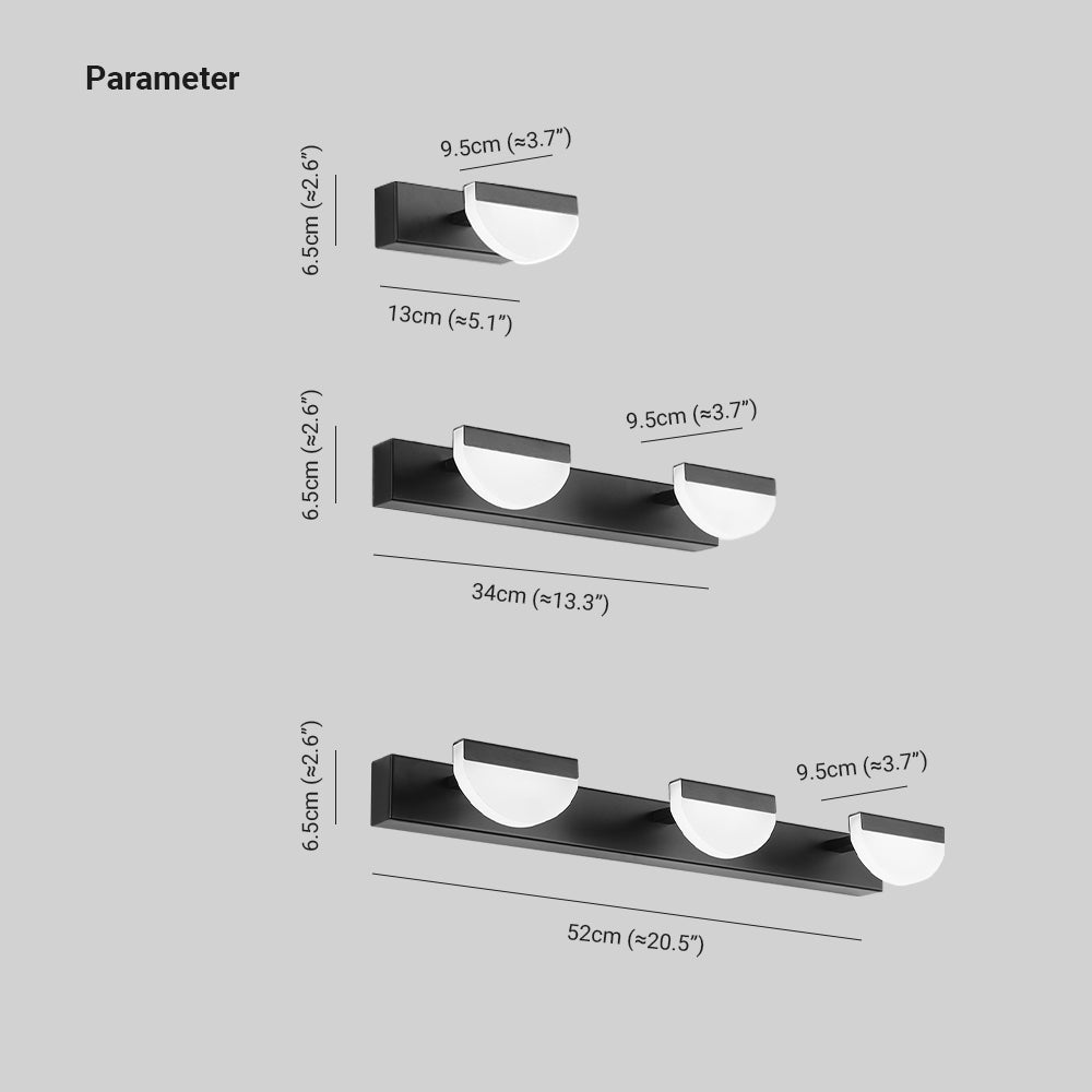 Leigh Modern Semicircle Mirror Mirror Front Vanity seinävalaisin, valkoinen/musta