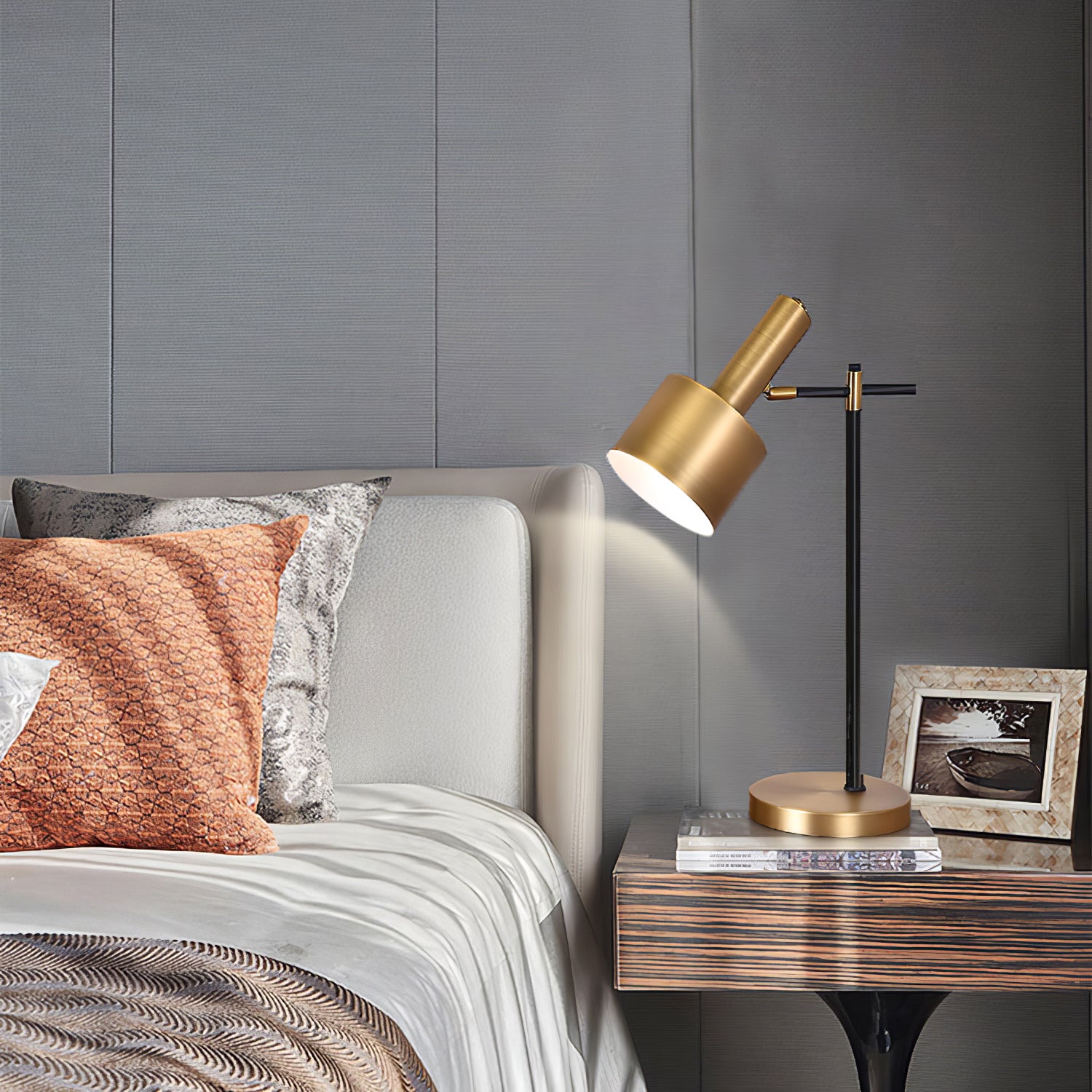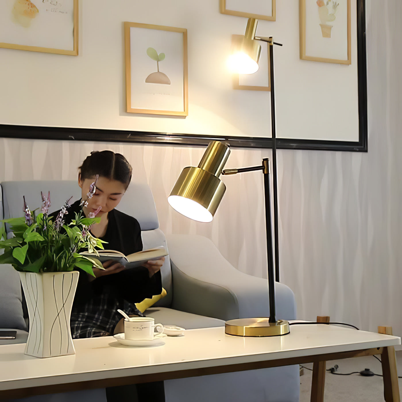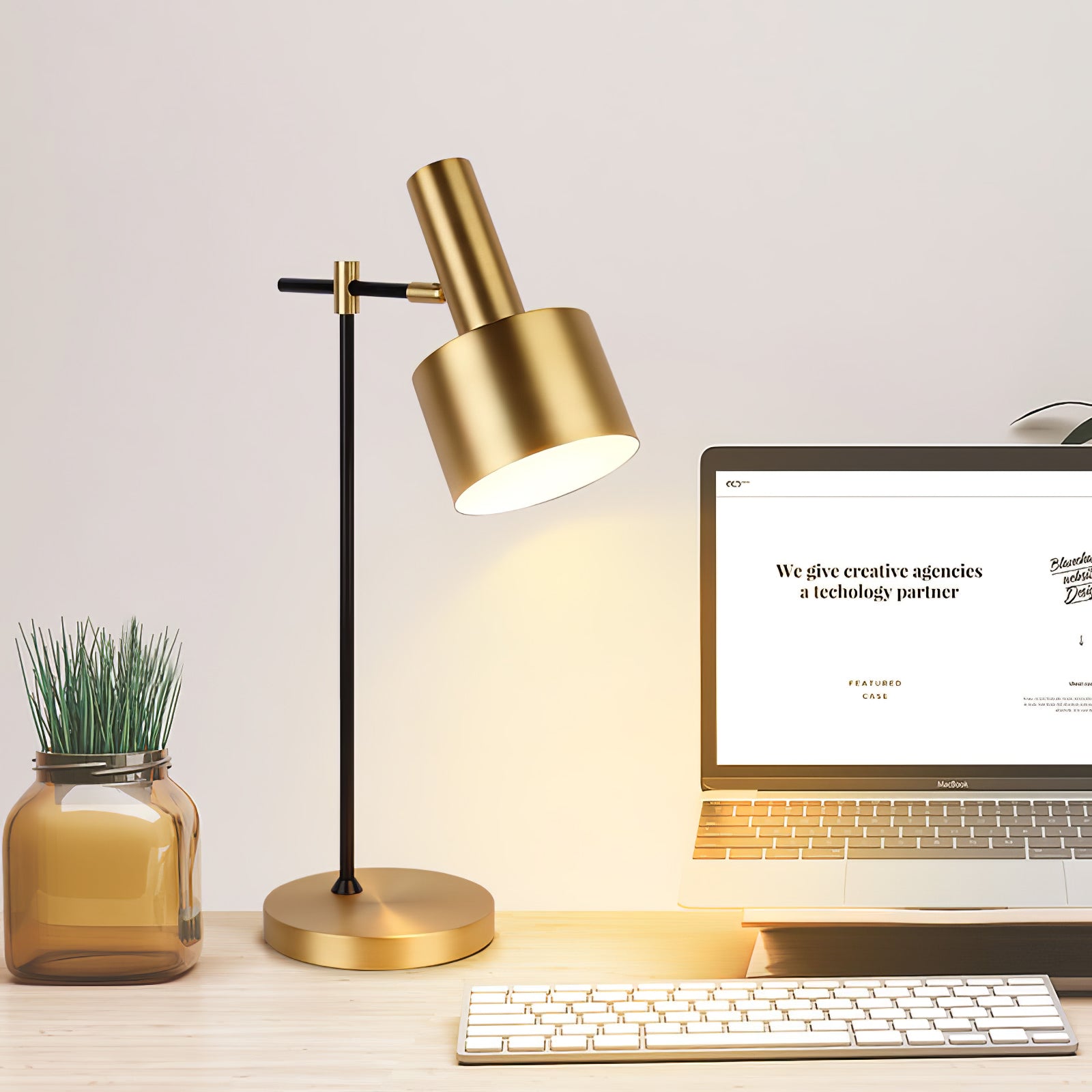 Valaise asuintilasi tällä yksinkertaisella mutta rohkealla pöytävalaisimella. Siinä on kaunis kiillotettu kullanvärinen viimeistely mustalla rungolla. Täydellinen korostuskappale toimistoosi, makuuhuoneeseen, eteiseen tai olohuoneeseen.