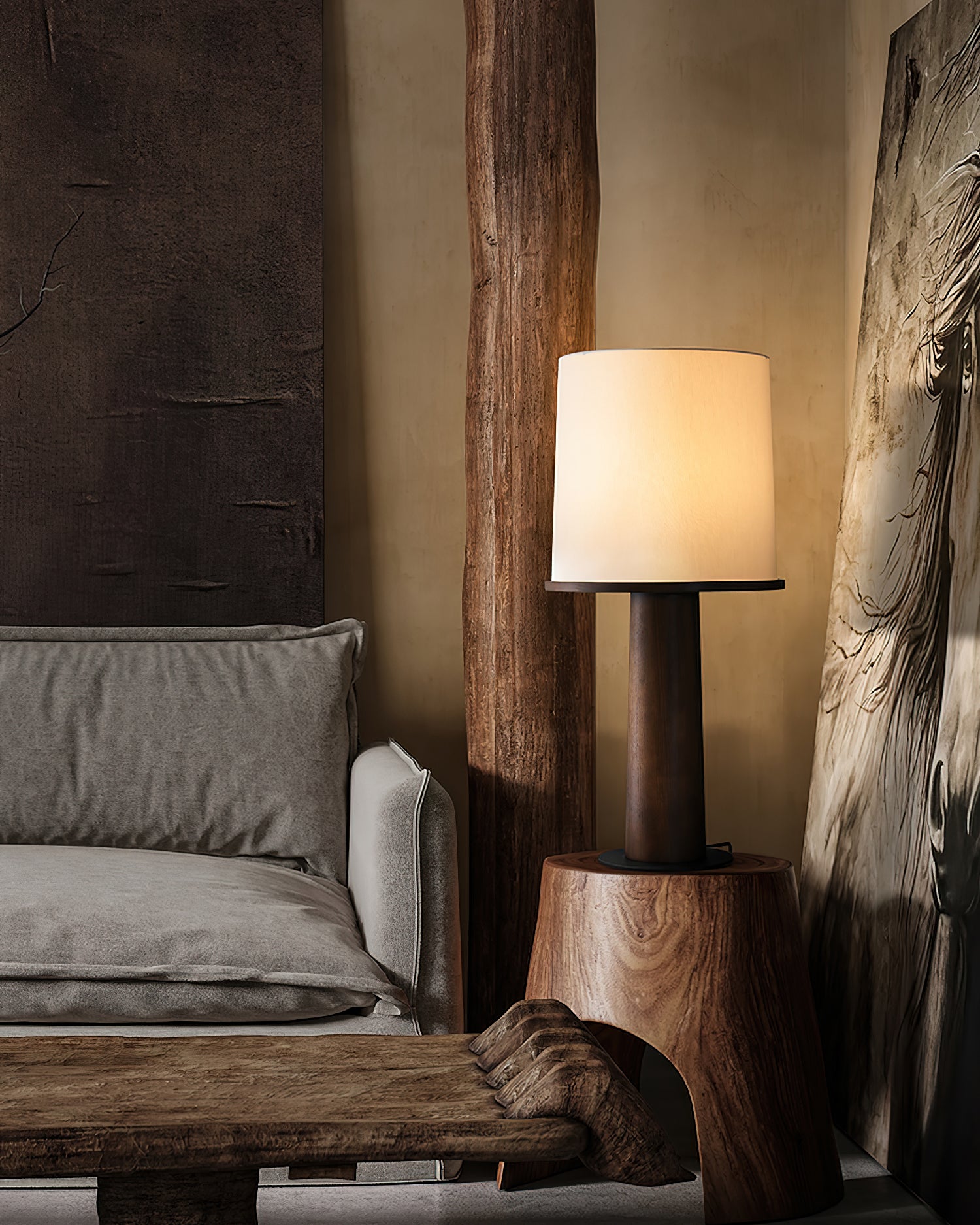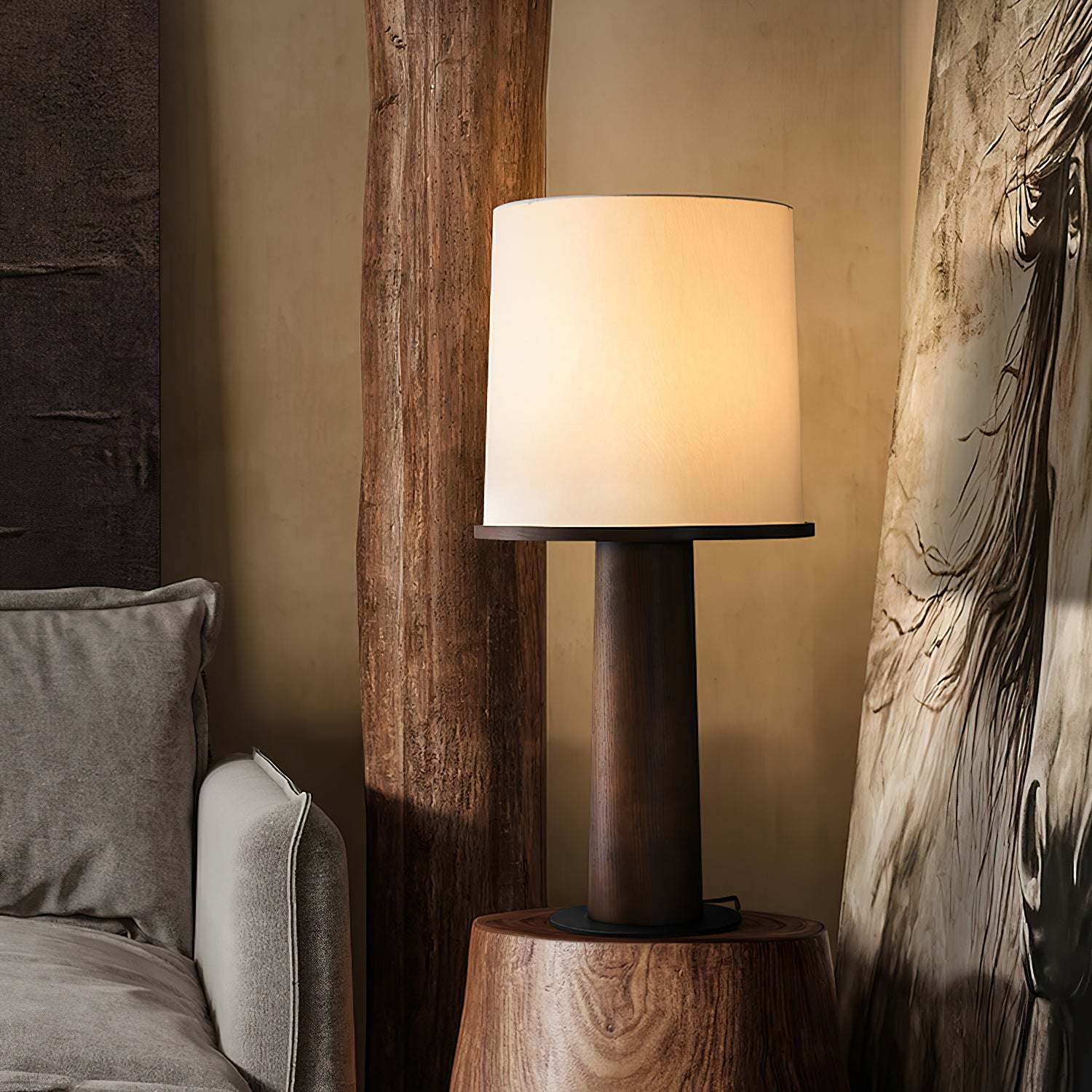 Tyhjennä kotiisi Light And Shadow -pullopöytälamppumme ohikiitäviä vuosia ja huumaavia varjoja. Sen kangasvarjostin luo pehmeän, huomaamattoman valon, joka mukautuu mihin tahansa huonekaluyhdistelmään. Valitse kahdesta koosta ja kolmesta väristä antaaksesi tilallesi ainutlaatuisen luonteen. Metallijalusta tarjoaa vakautta, kun taas lampun yläosa on irrotettavissa monipuolisuuden lisäämiseksi. Tuo valon ja varjon hienovarainen kauneus kotiisi tällä upealla lampulla.