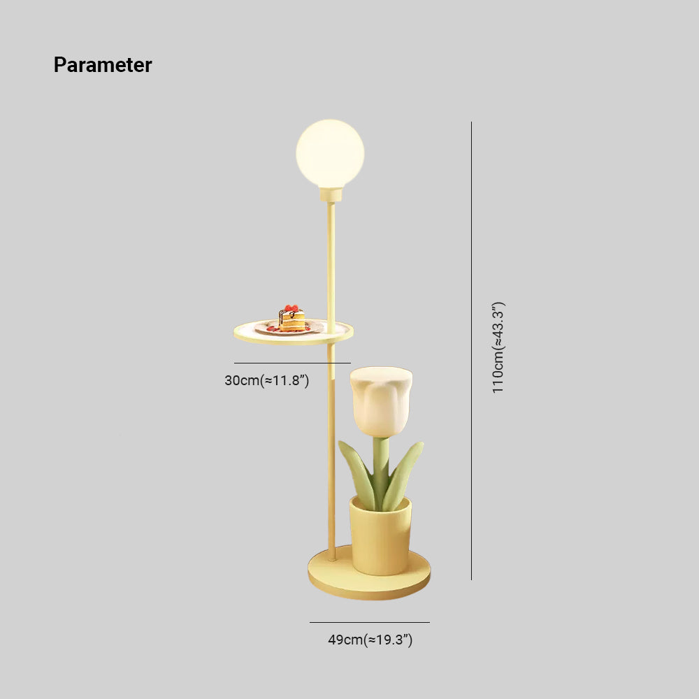 - Tämä lattiavalaisin koostuu tulppaanista, jossa on kukkaruukku ja kuulta näyttävä valaistu sipuli ja jossa on myös pieni pöytä, johon voi sijoittaa pieniä esineitä, mikä on sekä käytännöllistä että koristeellista.