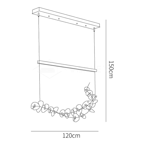 Säädettävä kaapeliin ripustettava lineaarinen LED-riipus. Valitse teräsversio, jossa on erilaisia aksentteja "liljatyynyt", tai lasikoristevaihtoehto, jossa on kaikki teksturoidut kirkkaat lasililjatyynyt. Valitse teräsversiossa kuomun viimeistely, LED-valopalkki, valaisimen ydin ja korostus liljatyynyille.