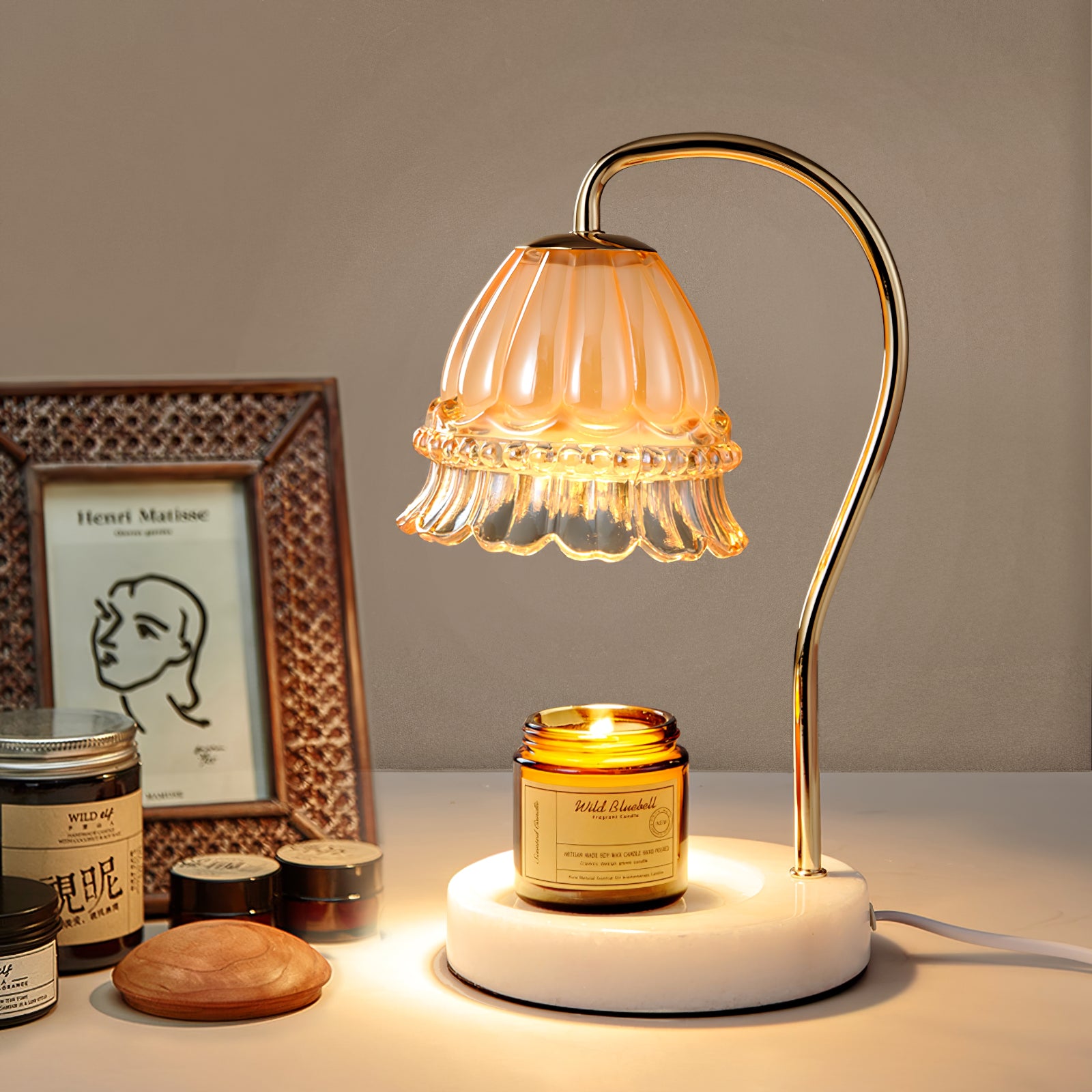 Perinteinen ja monipuolinen - Kaareva varsi ja puolimattapintainen viimeistely tekevät tästä loistavan valaisimen työpöydällesi. Aseta lempikynttiläsi sisälle ja nauti ilman nokea, savua tai avotulta. Helppo asentaa ja käyttää - Se käyttää lämpöä kynttilän sulattamiseen ylhäältä alas ja vapauttaa elävän, puhtaan tuoksun. Voit vapaasti säätää tämän kynttilälampun kirkkautta, pehmeä halogeenivalo luo palavan kynttilän tunnelman ja antaa sinun nauttia lämpimästä ja mukavasta hetkestä.