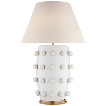 Täydennä ilmettäsi hauskalla ja tyylikkäällä Linden-pöytävalaisimella. Pienillä palloilla koristeltu keraaminen runko korostaa tämän kappaleen leikkisyyttä ja on viimeistelty kipsin valkoiseksi. Messinkikorostukset ja luonnollinen pellavavarjostin ovat täydellinen viimeistely tälle showtopperille.