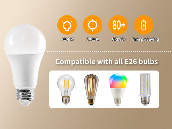- 3 LAMPPUKANTA (POLTTUMAT EIVÄT MUKANA): Voit valita haluamasi kirkkaustason täysin eri valaistustarpeiden mukaan, lampussa on vakiokanta, max 60W. Verrattuna perinteisiin hehkulamppuihin led-lamput ovat energiaa säästäviä ja pitkäikäisiä, ja ne välttävät usein lamppujen vaihtoa tai suurta energiankulutusta. Sinua ei tarvitse vaihtaa vuosiin.