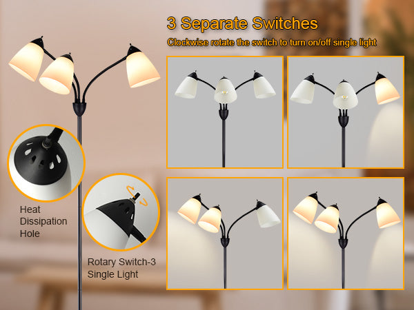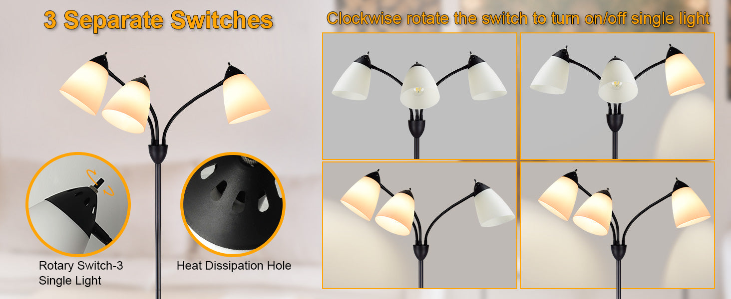 - PÄÄLLE-POIS KIERTYVÄ KYTKIN JOKAISTA PÄÄSTÄ: Voit valaista tilan kokonaan ja ohjata valontuottoa tai keskittyä valitsemaasi alueeseen luodaksesi ihanteellisen valaistusratkaisun sisustukseesi.