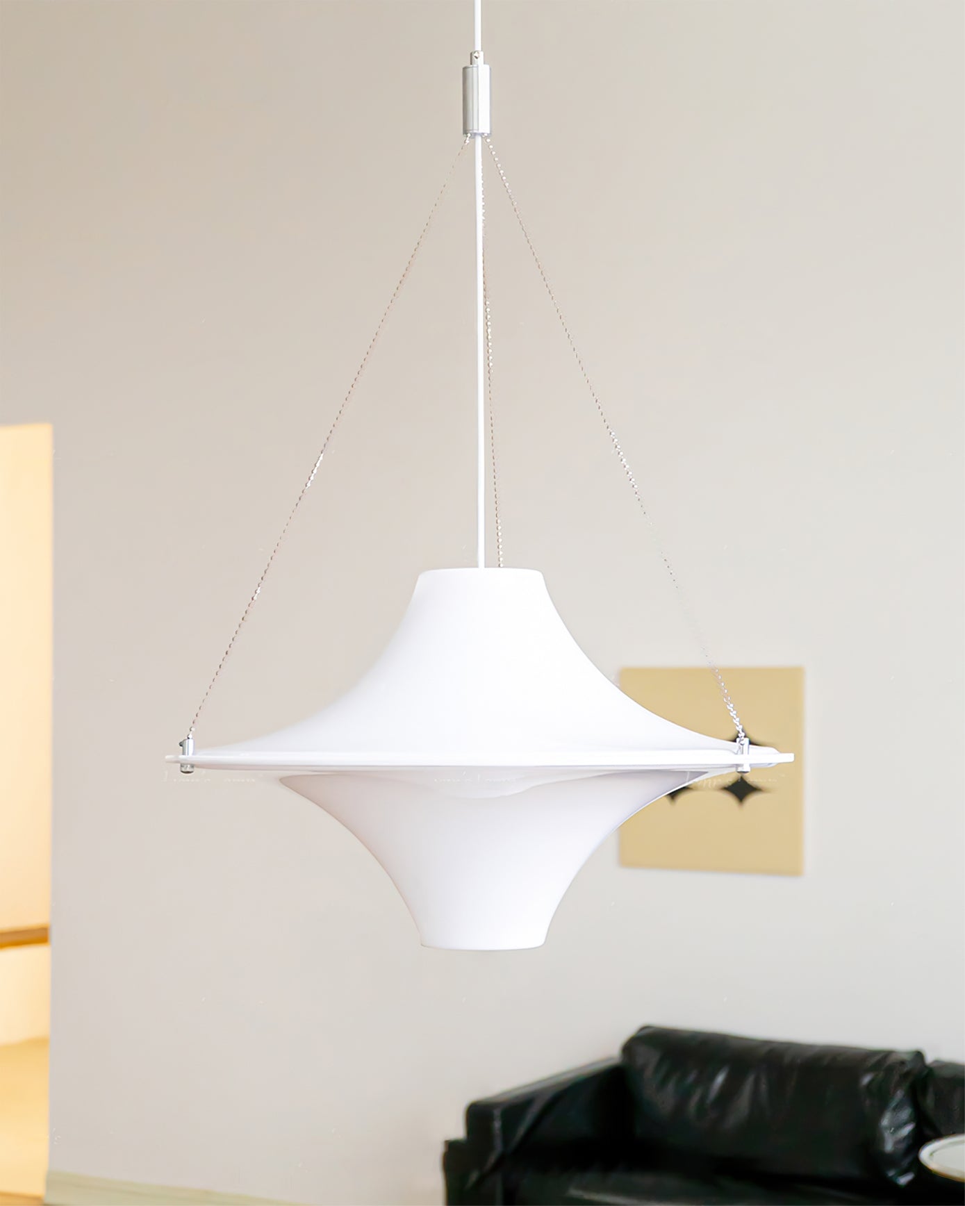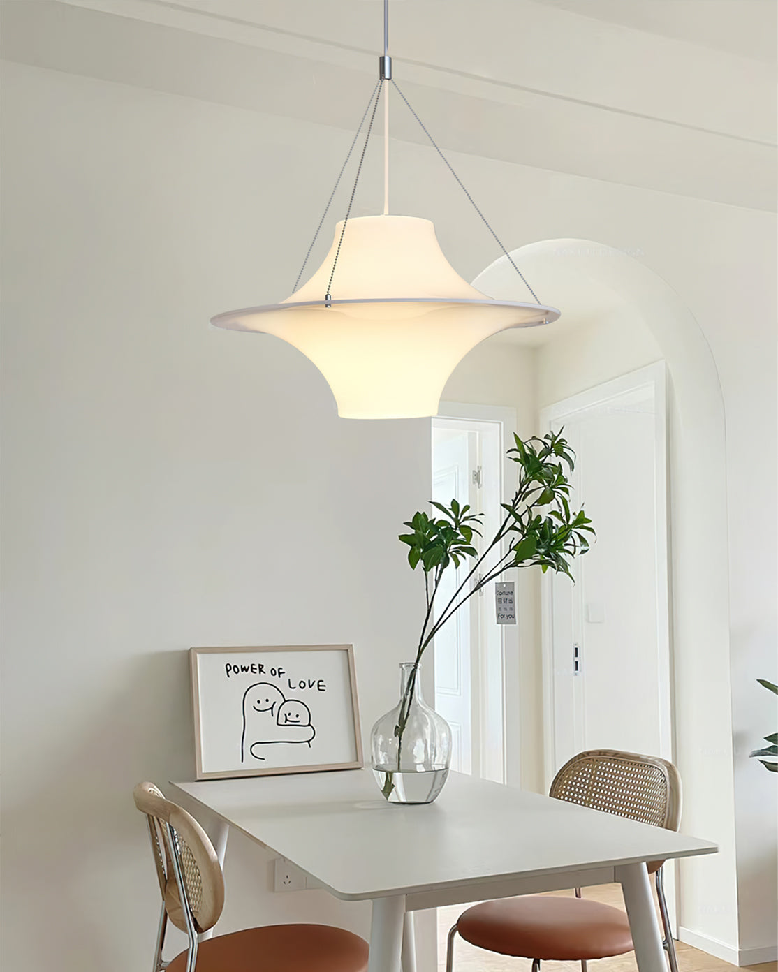 Tutustu Lokki-riippuvalaisimen moderniin ihmeeseen. Tyylikkäiden UFO-kuvioiden inspiroima valaisin sisältää sileän akryylisävyn, joka hajottaa valoa hellävaraisesti ja luo upean visuaalisen vaikutelman. Sen edistyksellinen muotoilu myös ohjaa valoa tarkasti, mikä tekee siitä älykkään valinnan tiloihin, joissa tarvitaan keskitettyä valaistusta.