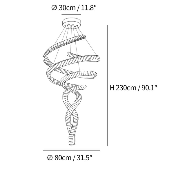Tämä hieno Long Spiral Crystal -kattokruunu on täydellinen valinta moniin kodin sisustustyyleihin. Laadukkaat materiaalit ja erinomainen suorituskyky takaavat elegantin, ylellisen tunnelman ja tyylikkään muotoilun. Sen sirot kaaret ja kohoava korkeus lisäävät tilaan hienostuneisuutta.