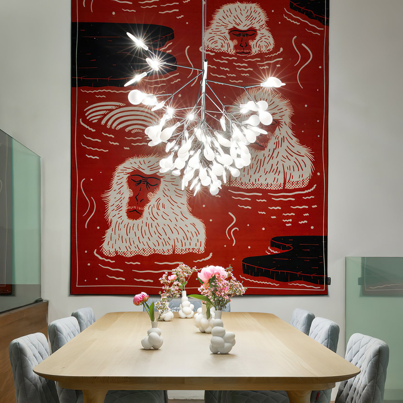 Long Style Black Firefly LED -kattokruunu sisältää pienen akryylin, joka muodostaa kukkamaisen muodon ja säteilee valoisaa, tulikärpäsen tunnelmaa asuintilaasi. Koe valaistun kukan kauneus missä tahansa huoneessa.