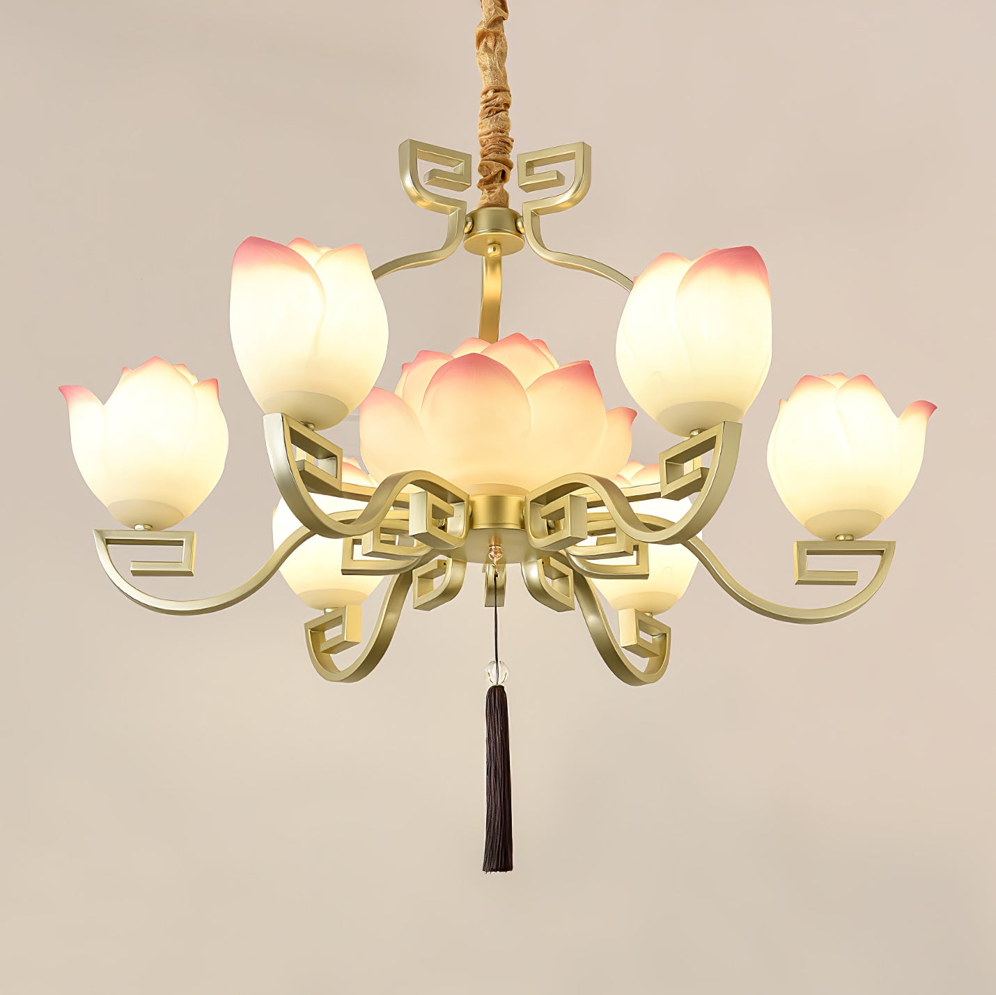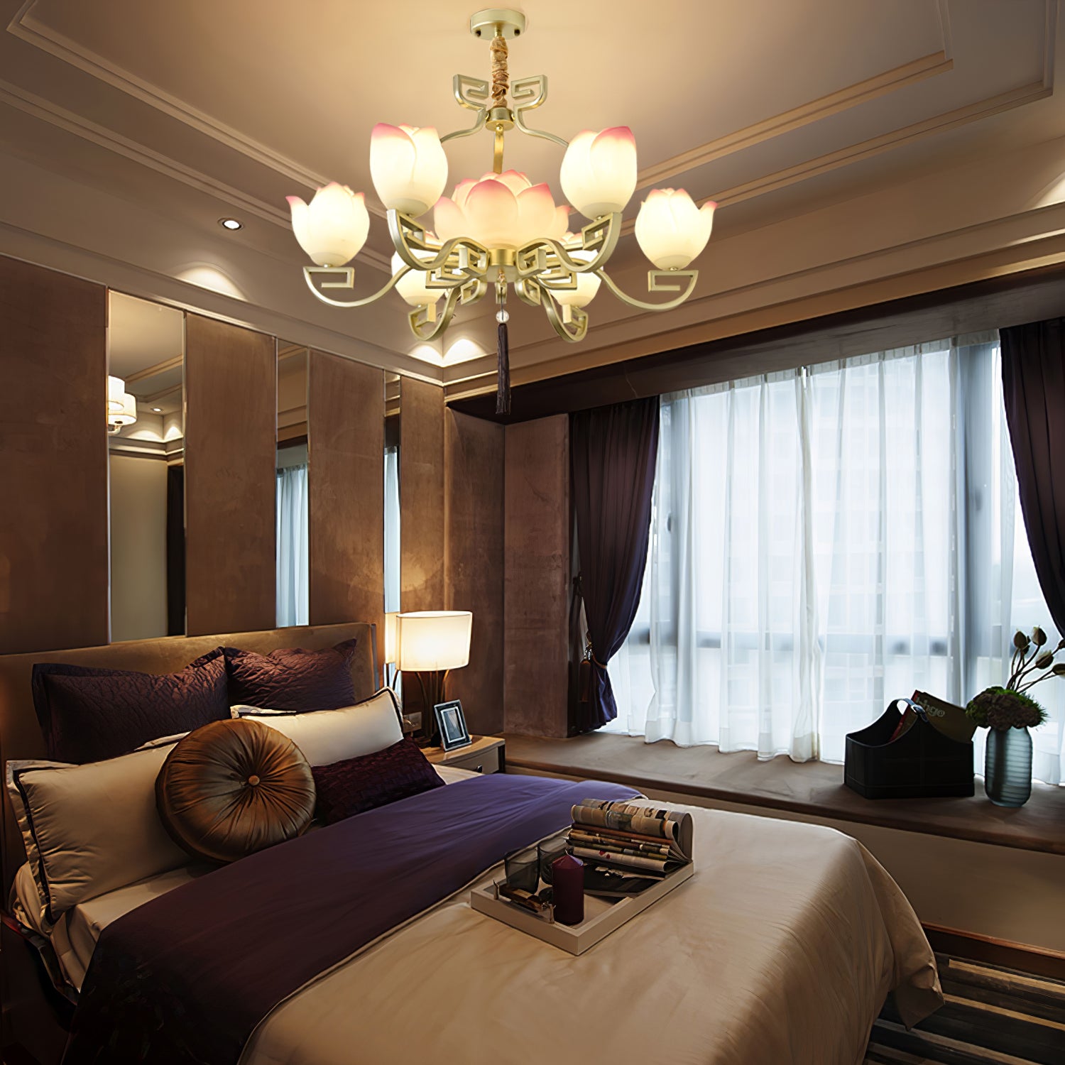 Lotus Bloom -kattokruunu lisää kevään ripauksen mihin tahansa tilaan. Sen turmeltumaton valkoinen lasivarjostin huokuu rauhoittavaa auraa, kun taas matcha-tyyli tuo raikkaan, modernin ilmeen. Luo rauhallinen tunnelma tällä kauniilla valaisimella.