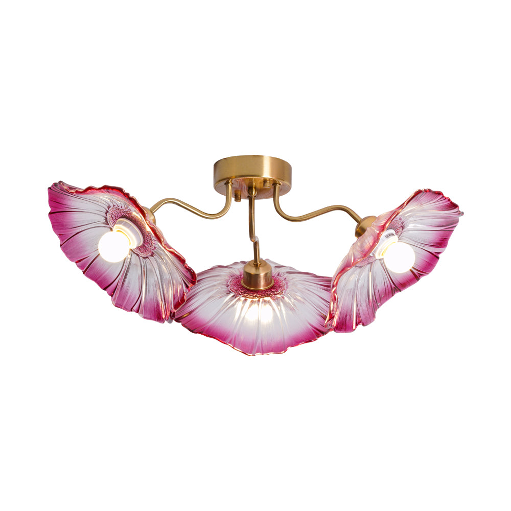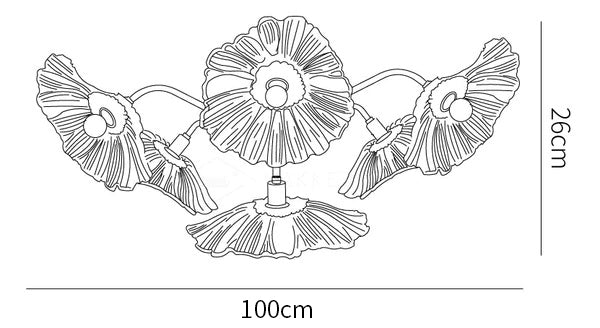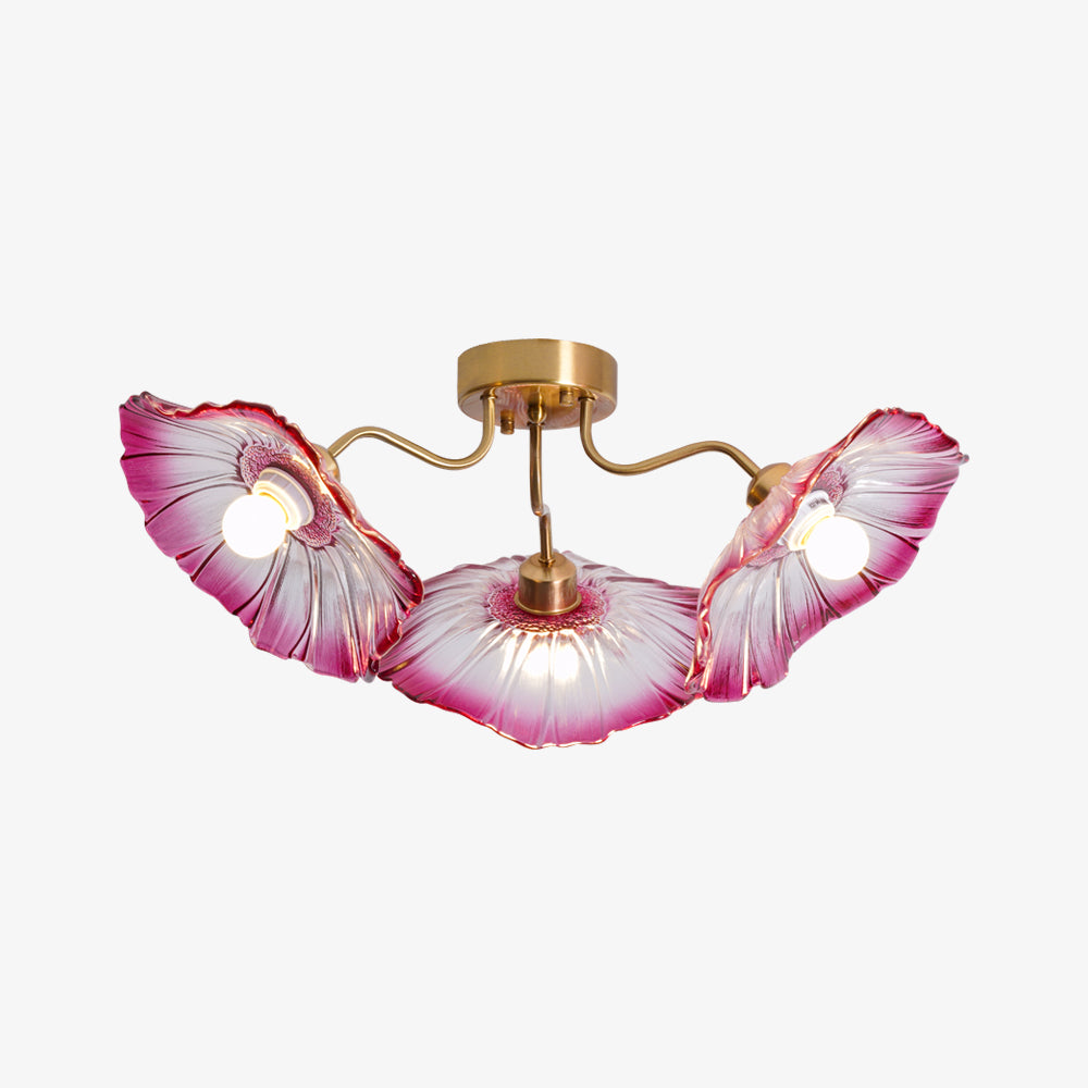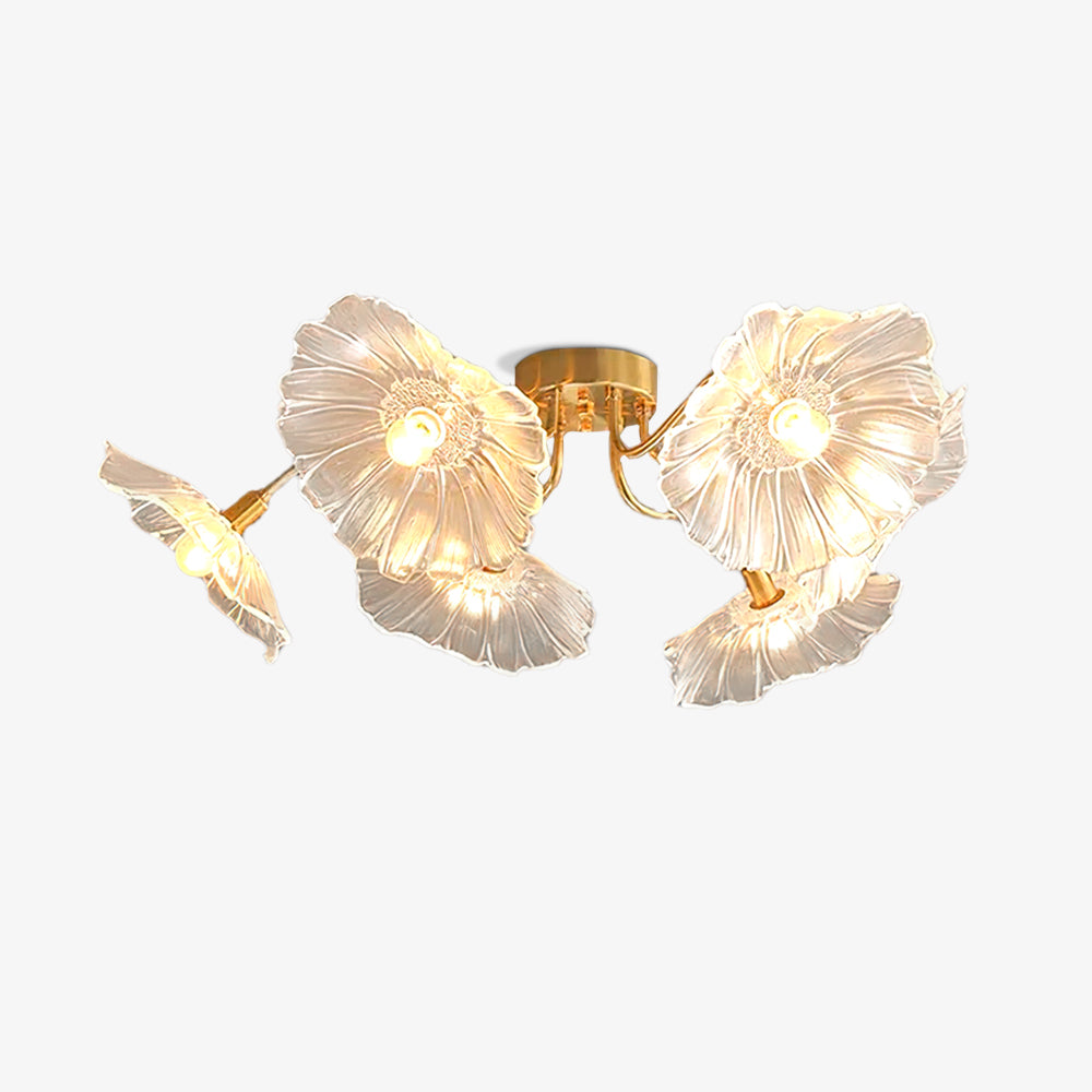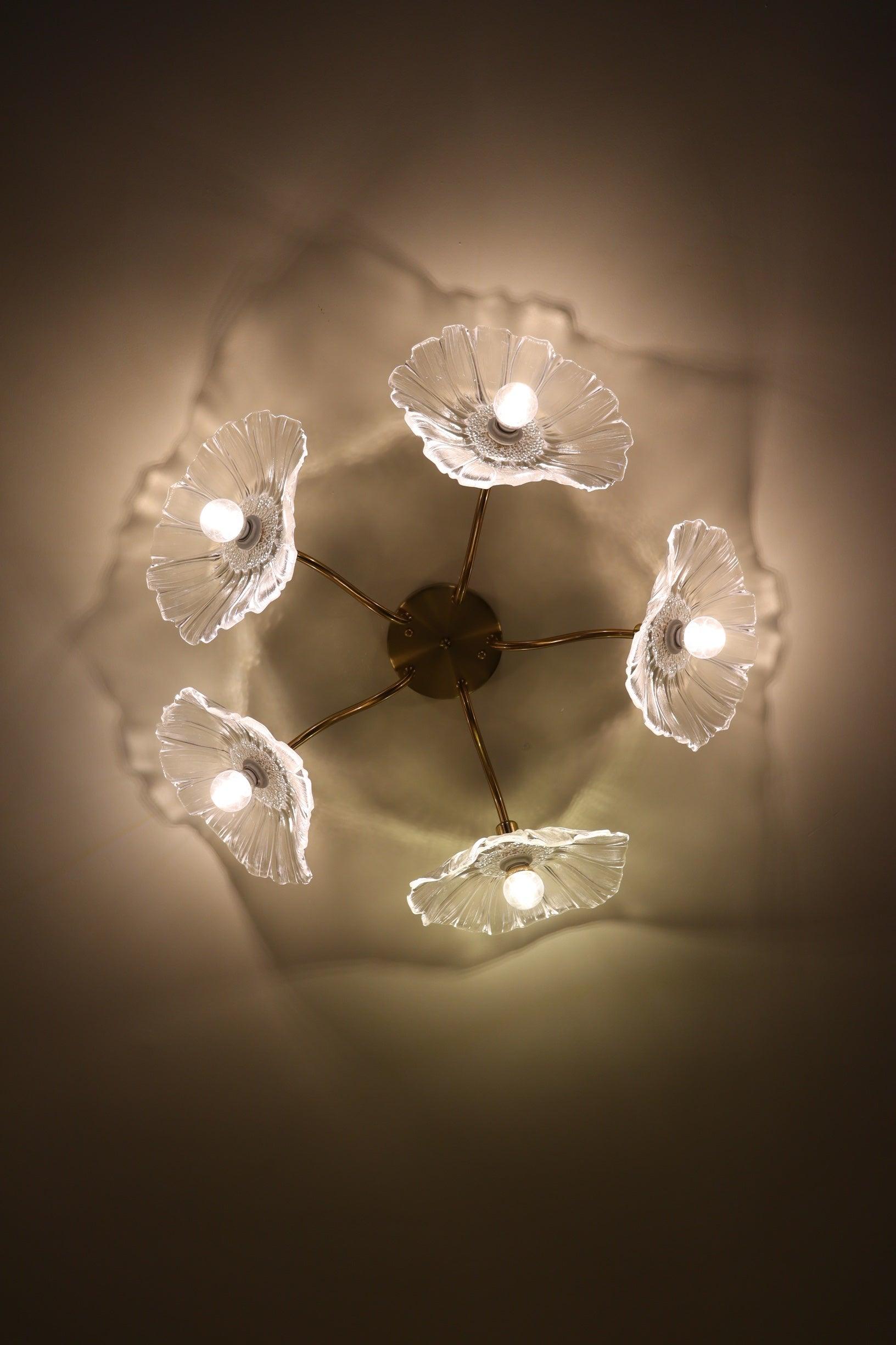 Tämä kattovalaisin on valmistettu lehden muotoisesta himmeästä lasista. Hajavalo on pehmeää ja harmonista ja sopii täydellisesti sisustuksen valaisemiseen. Korjausta ei näy yhdessä kiteessä, ajanjälkiä vastaavat esineen ikää. Ainutlaatuinen design-esine.