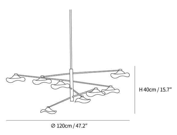 8 Lamppujen koko: Halkaisija 120 cm x K 40 cm / ∅ 47,2″ x K 15,7 ″