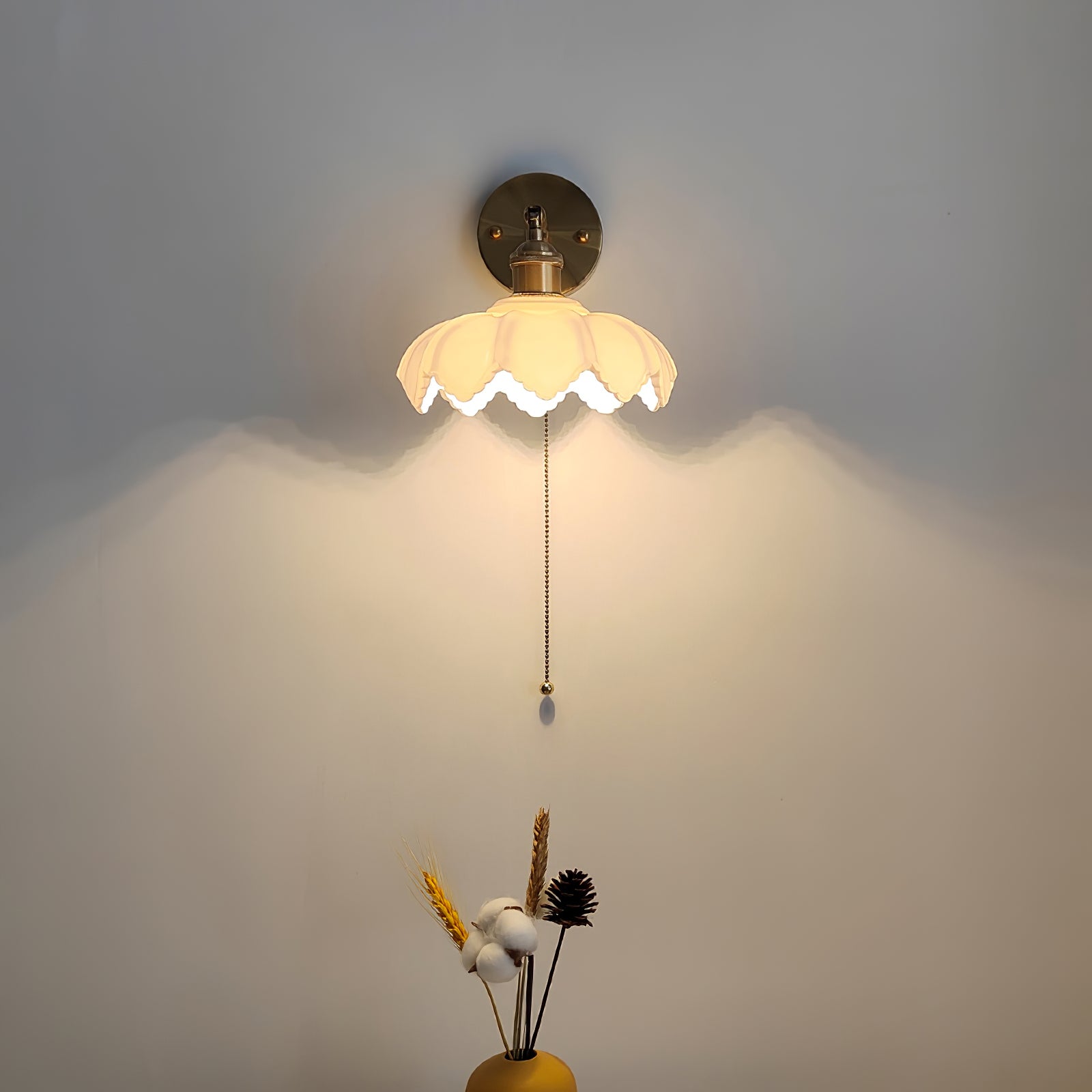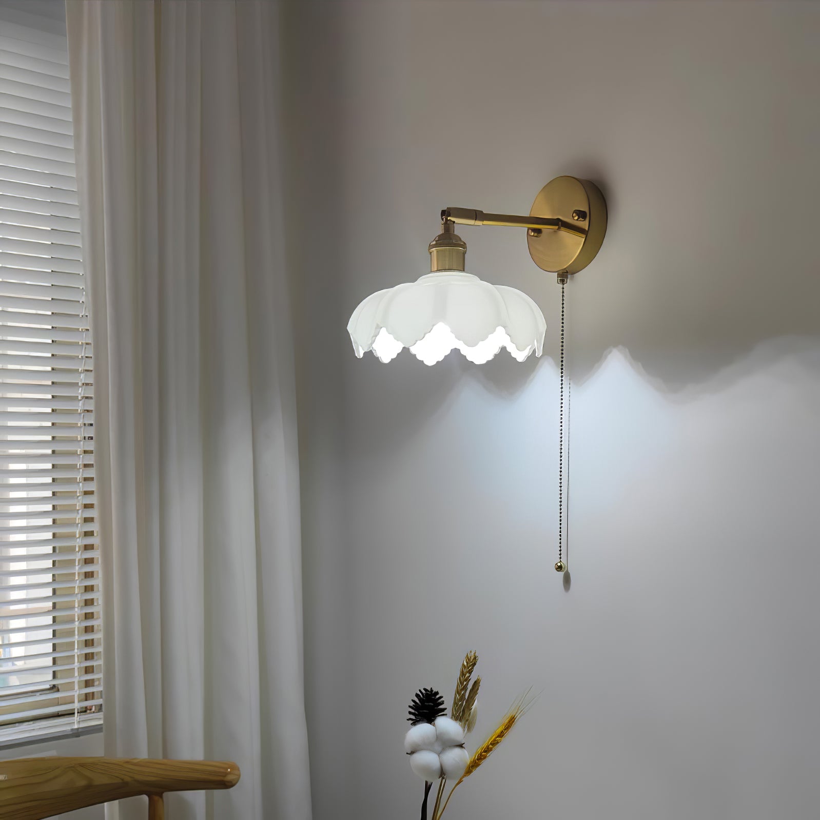 Kierrettävä Lotus-seinävalaisin on tyylikäs lisä jokaiseen huoneeseen. Valkoinen lootuskukan muotoinen lasivarjostin istuu kultaisen valokappaleen päällä, joka pystyy pyörimään jopa 180 astetta. Sen viehättävä muotoilu ja käytännölliset ominaisuudet tekevät siitä täydellisen kalusteen jokaiseen kotiin.