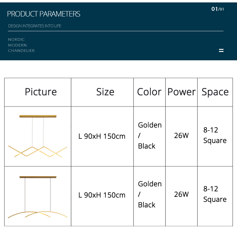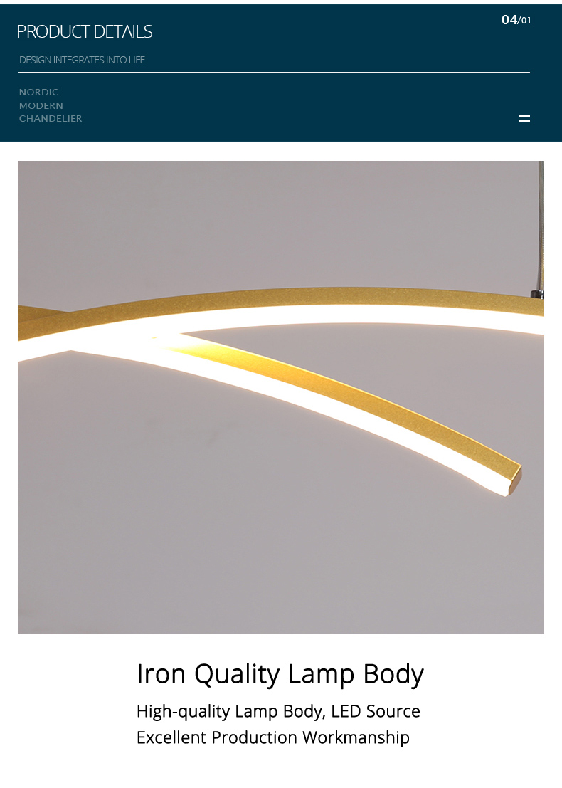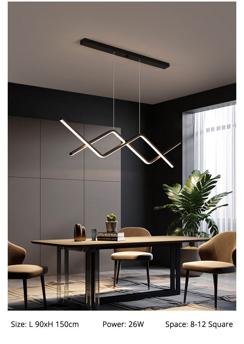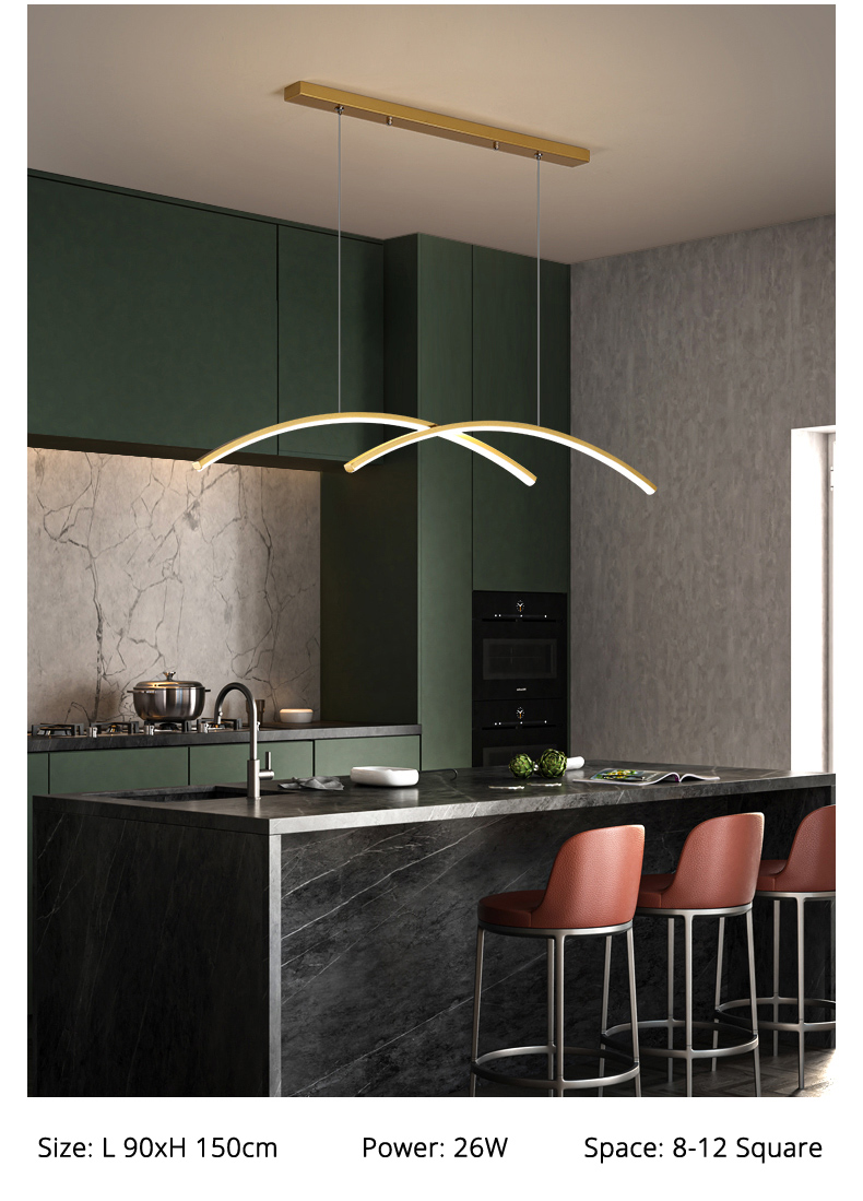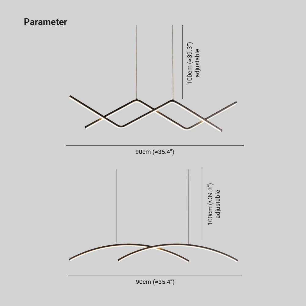 Louise-riippuvalaisin lineaarinen/kaksoiskäyrä moderni, metalli, musta/kulta, olohuone