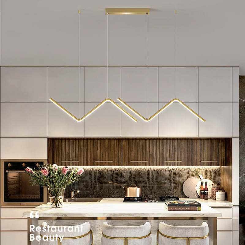 - 1.Louise Modern Wavy Double Linear Pendant Light - metallin ja silikageelin käsityötaidon yhdistelmä, joka on suunniteltu kohottamaan asuintilaasi ripauksella nykyaikaista viehätystä.