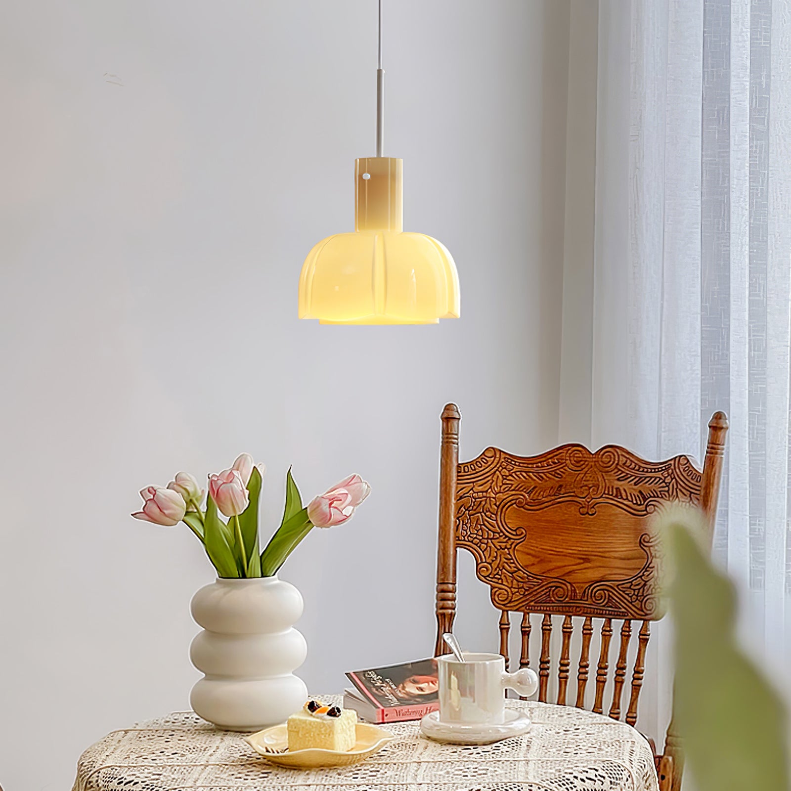 Valaise tilasi Lumina Petal Glass -riippuvalolla. Kukkivien kukkien innoittamana sen herkkä muotoilu sisältää kerrostetut lasiterälehdet luonnollisissa sävyissä. Lasin hienovarainen läpinäkyvyys mahdollistaa valon hellävaraisen hajauttamisen, mikä luo lämpimän tunnelman. Tyylikkäillä metallivalaisimillaan tämä monipuolinen valaisin on ajaton lisä mihin tahansa sisustustyyliin.