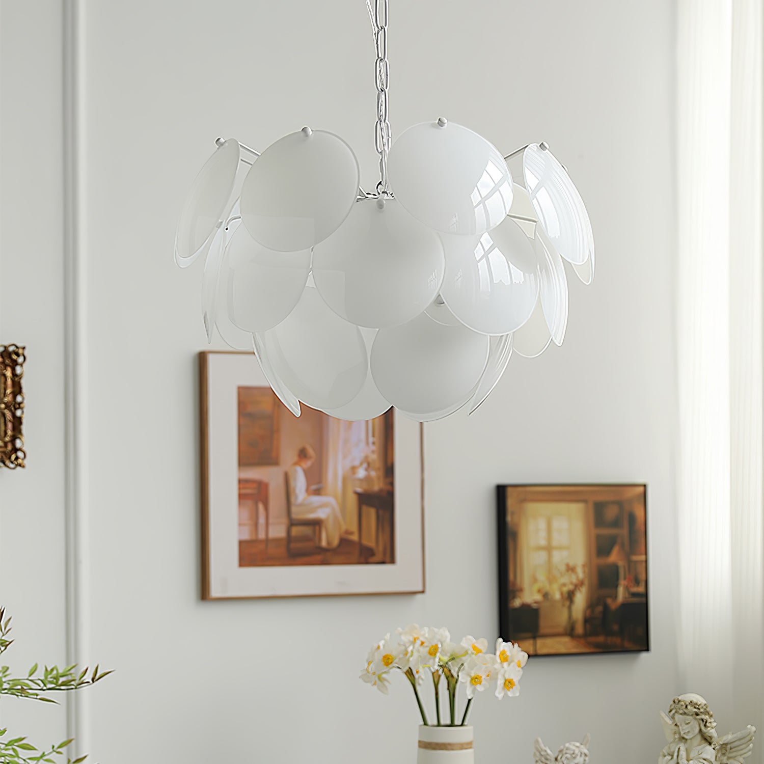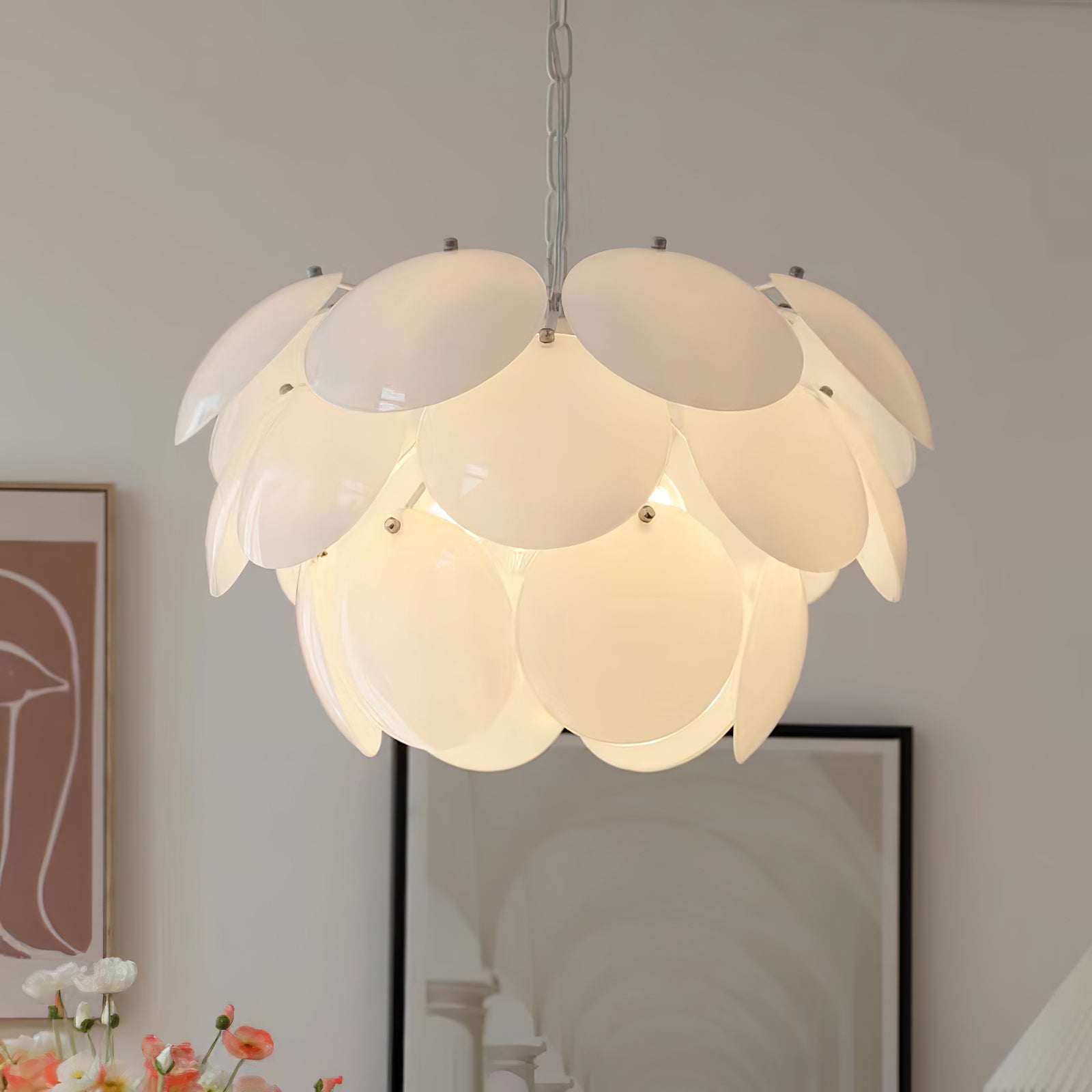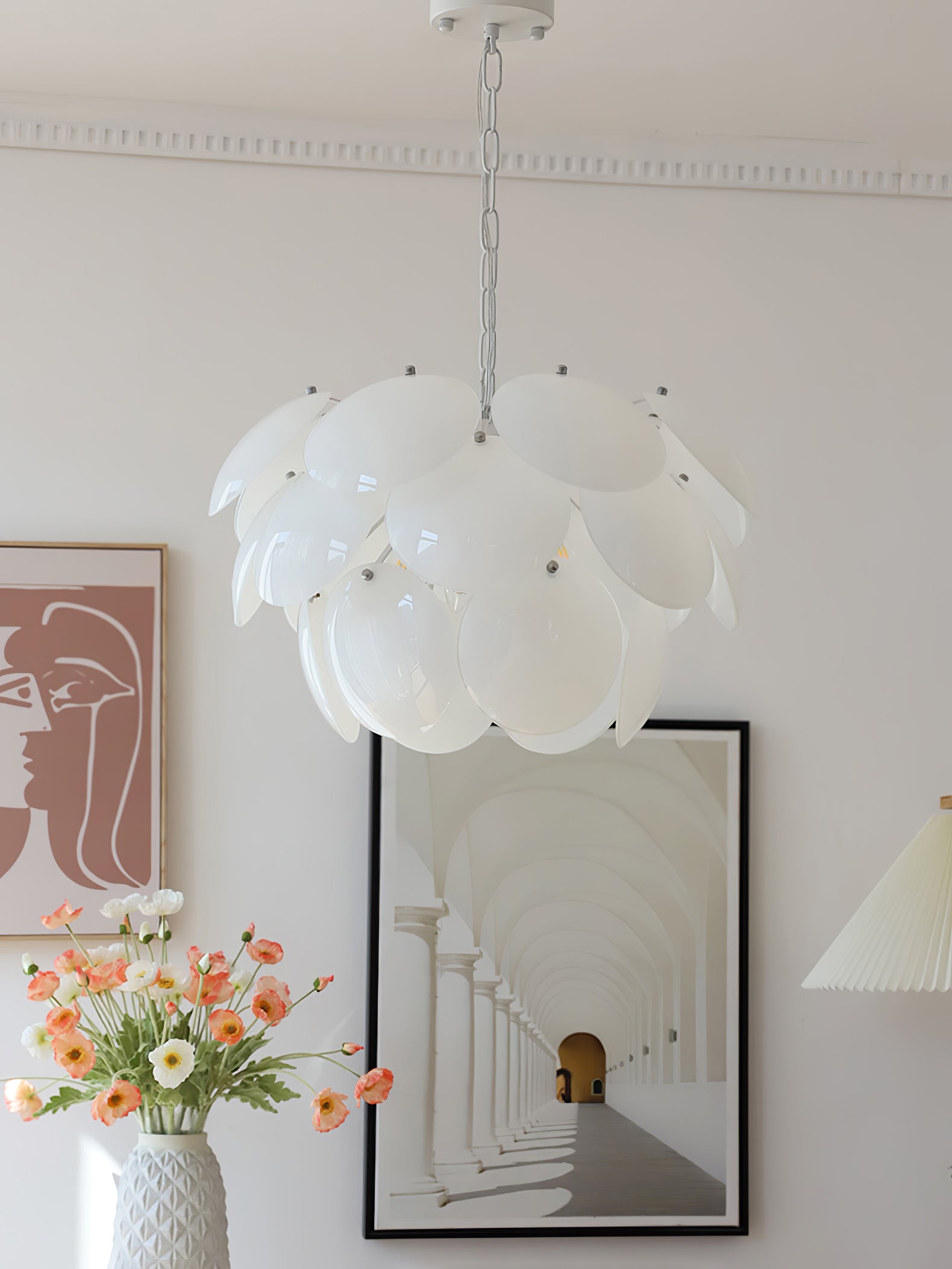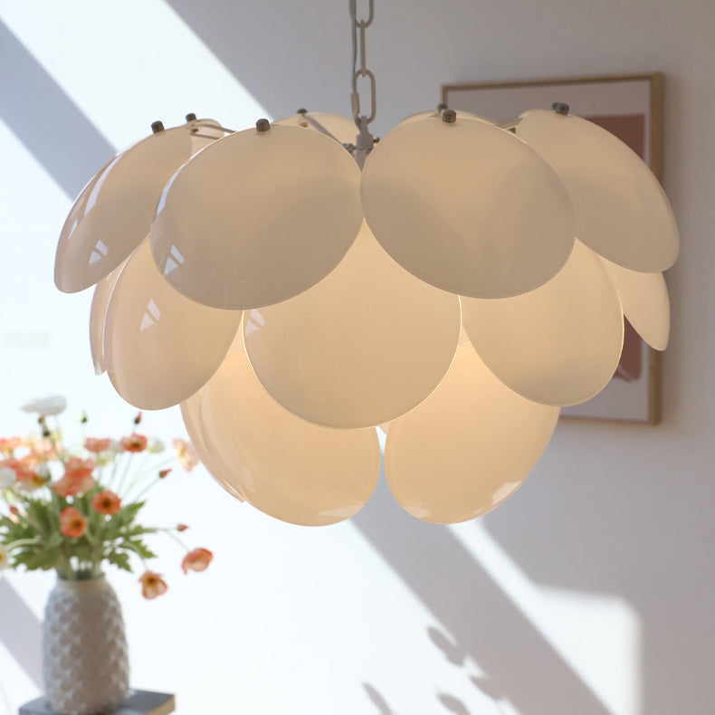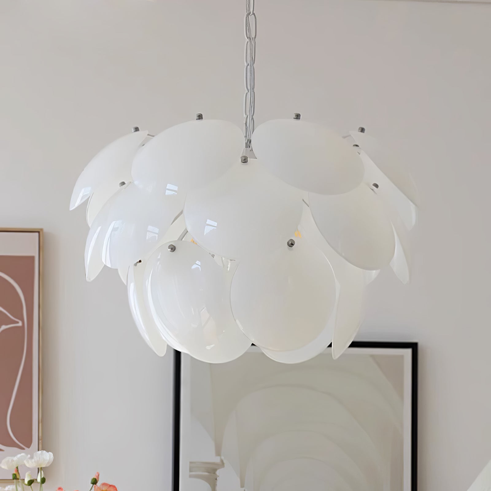 Enemmän kuin pelkkä valaisin, "Luminous Petal Glass Chandelier" toimii myös taideteoksena, joka korostaa mitä tahansa sisustusta. Se sopii täydellisesti olohuoneeseen, ruokailutilaan tai mihin tahansa tilaan, joka kaipaa eleganssia. Tämä kattokruunu ei ole vain valonlähde, vaan keskipiste, joka herättää keskustelua ja ihailua.