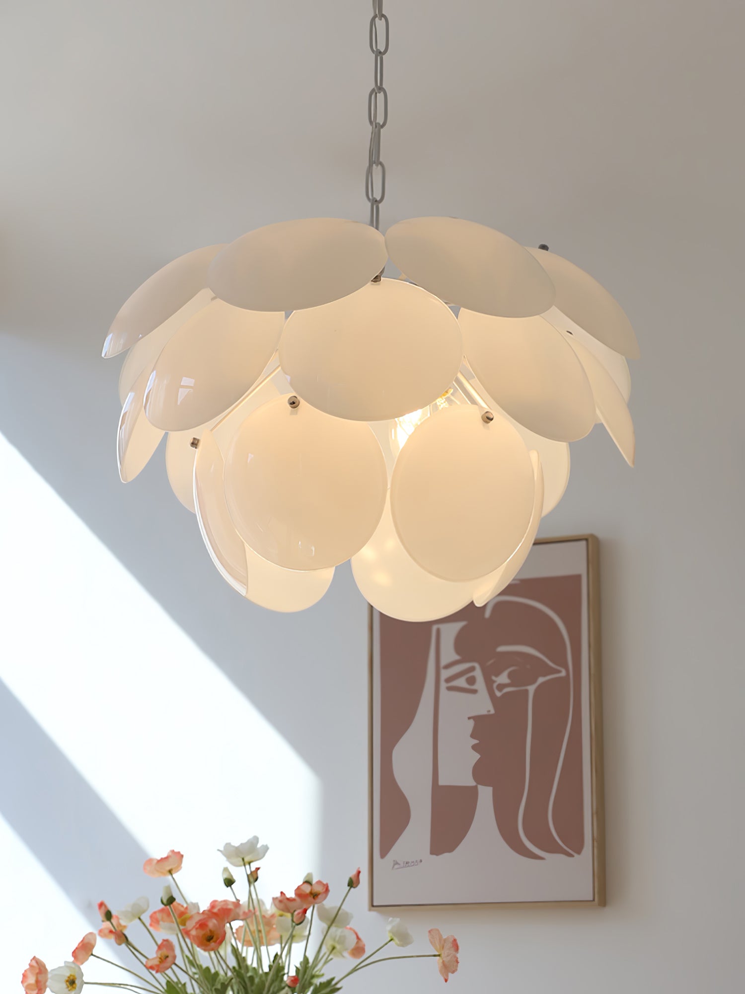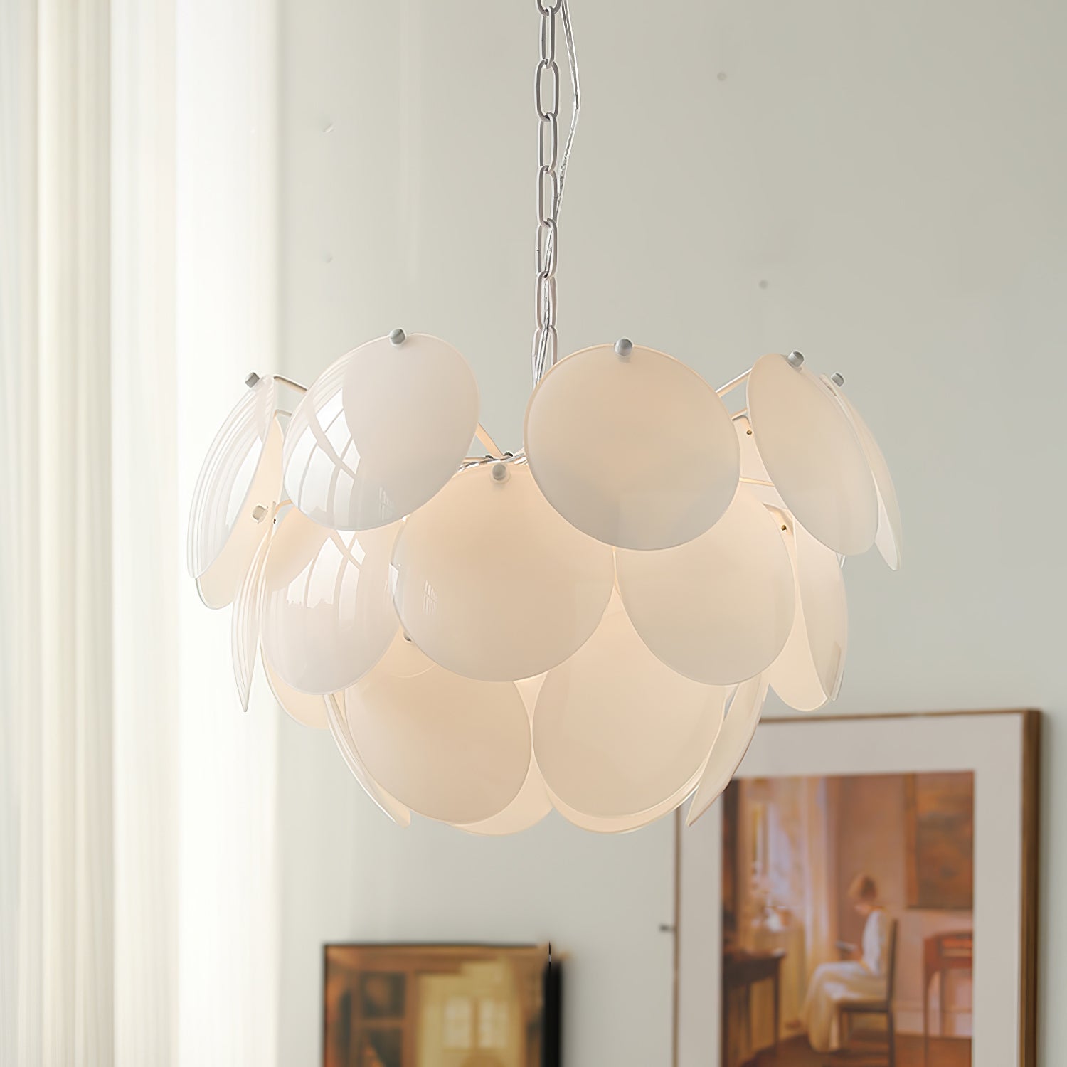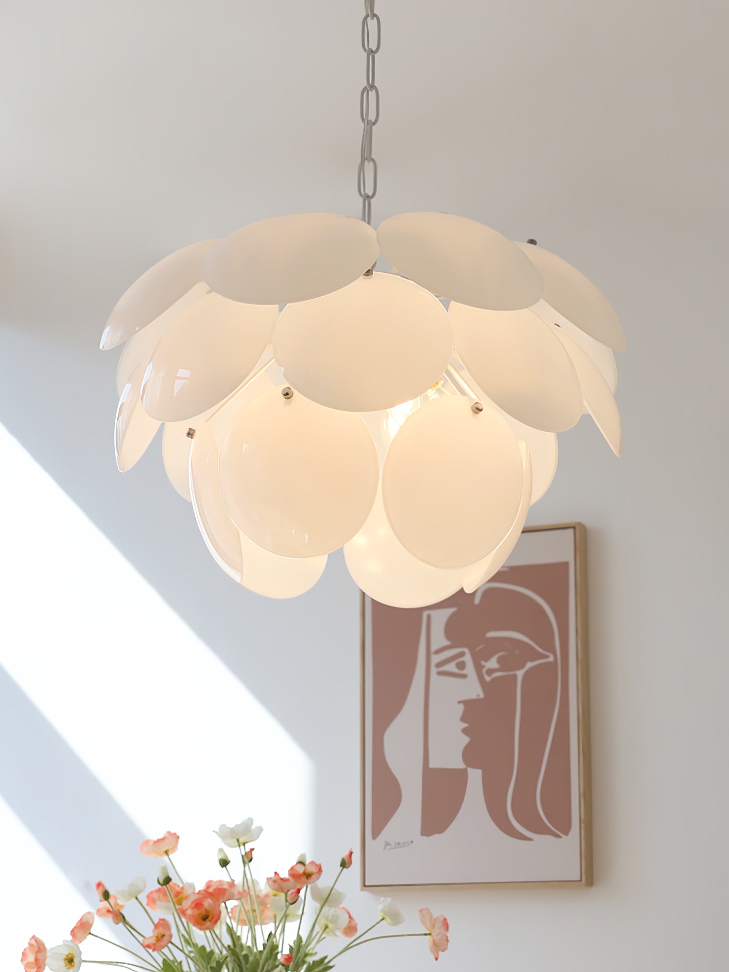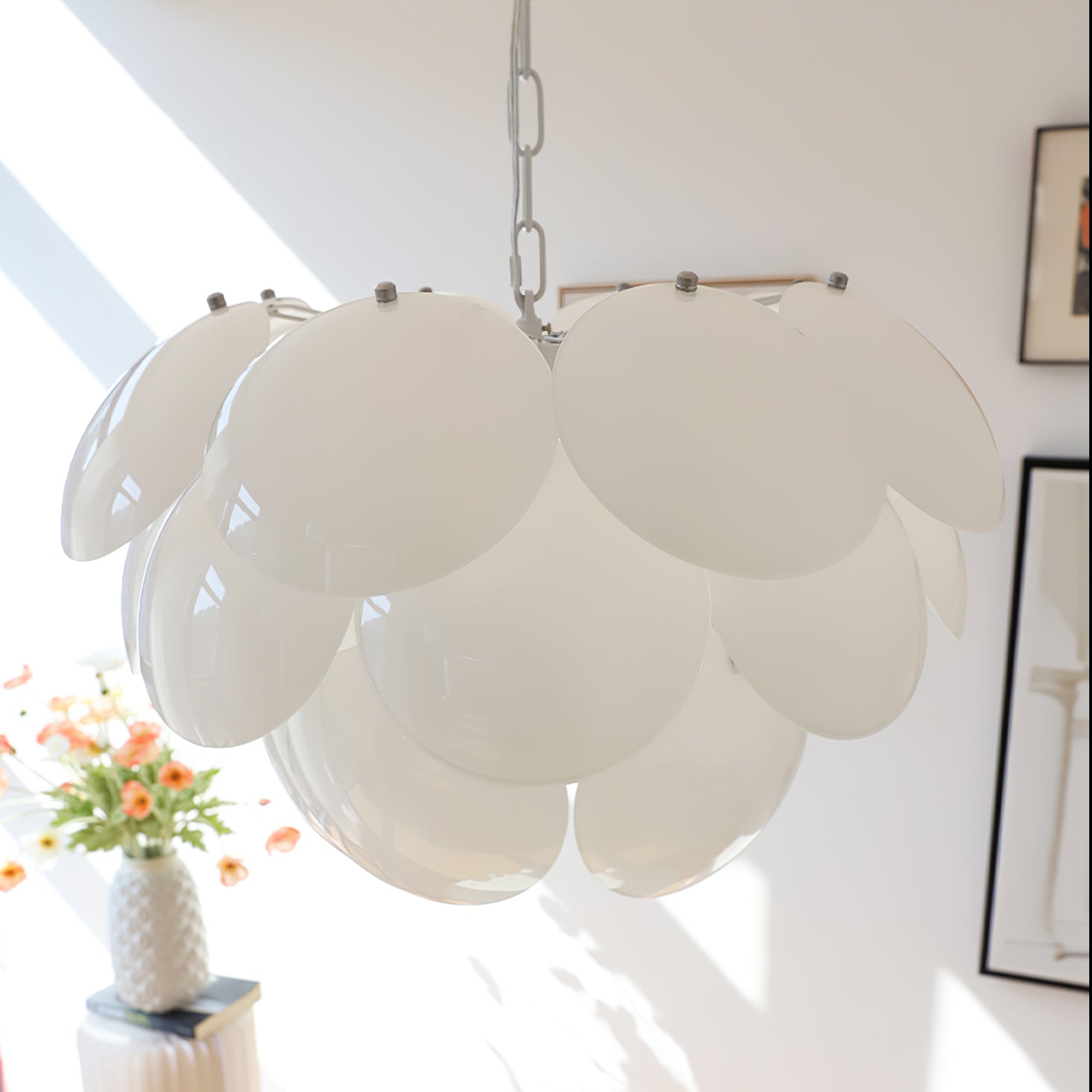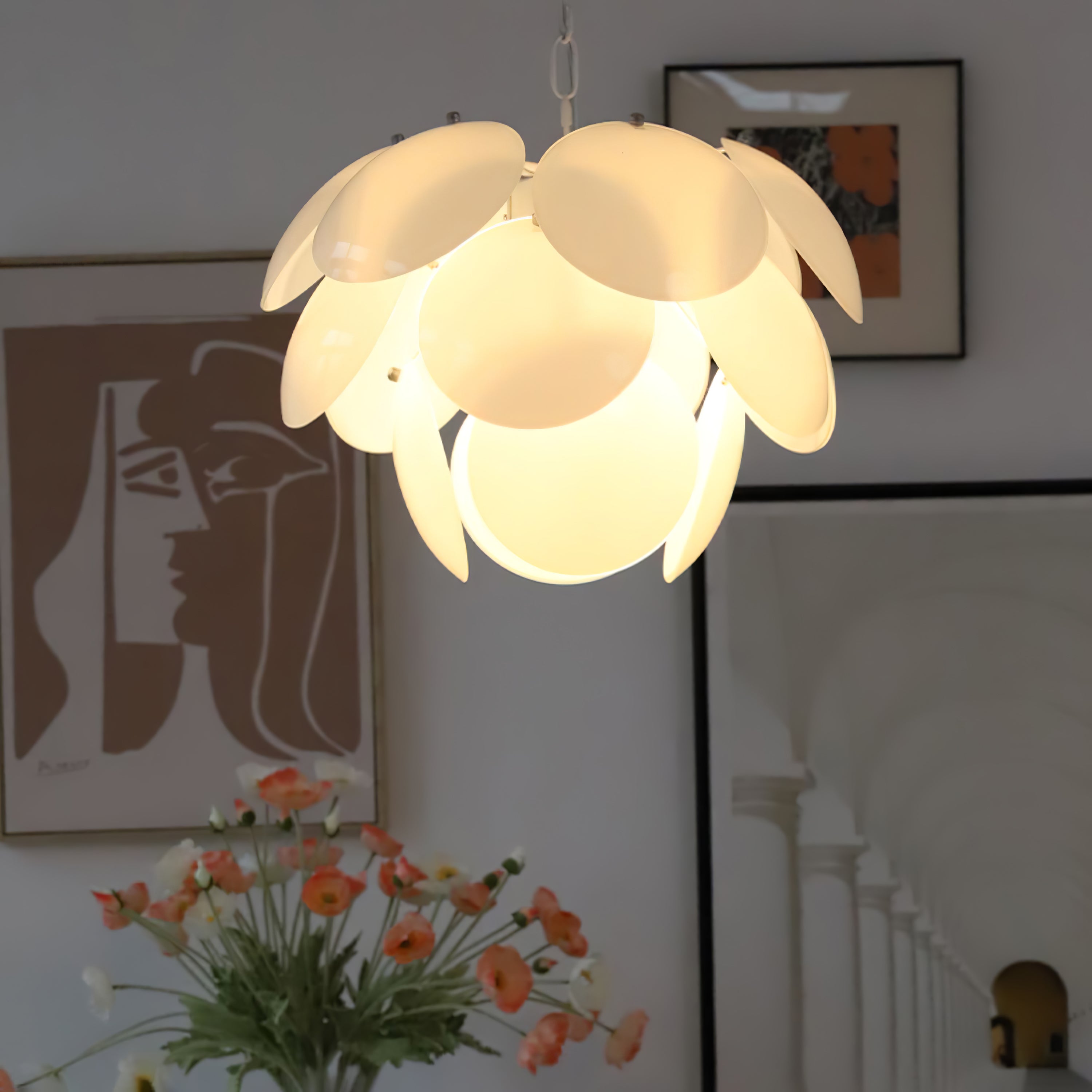 Enemmän kuin pelkkä valaisin, "Luminous Petal Glass Chandelier" toimii myös taideteoksena, joka korostaa mitä tahansa sisustusta. Se sopii täydellisesti olohuoneeseen, ruokailutilaan tai mihin tahansa tilaan, joka kaipaa eleganssia. Tämä kattokruunu ei ole vain valonlähde, vaan keskipiste, joka herättää keskustelua ja ihailua.