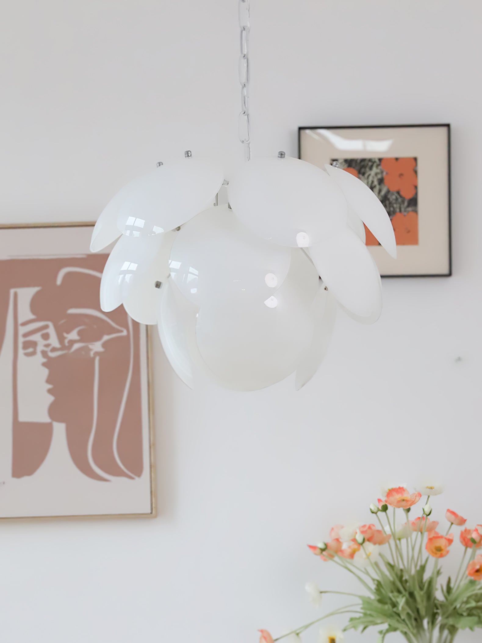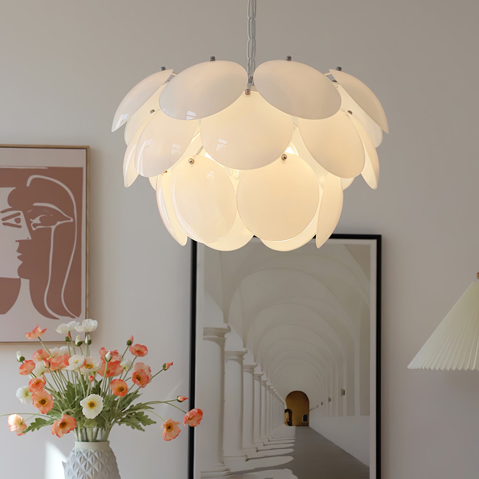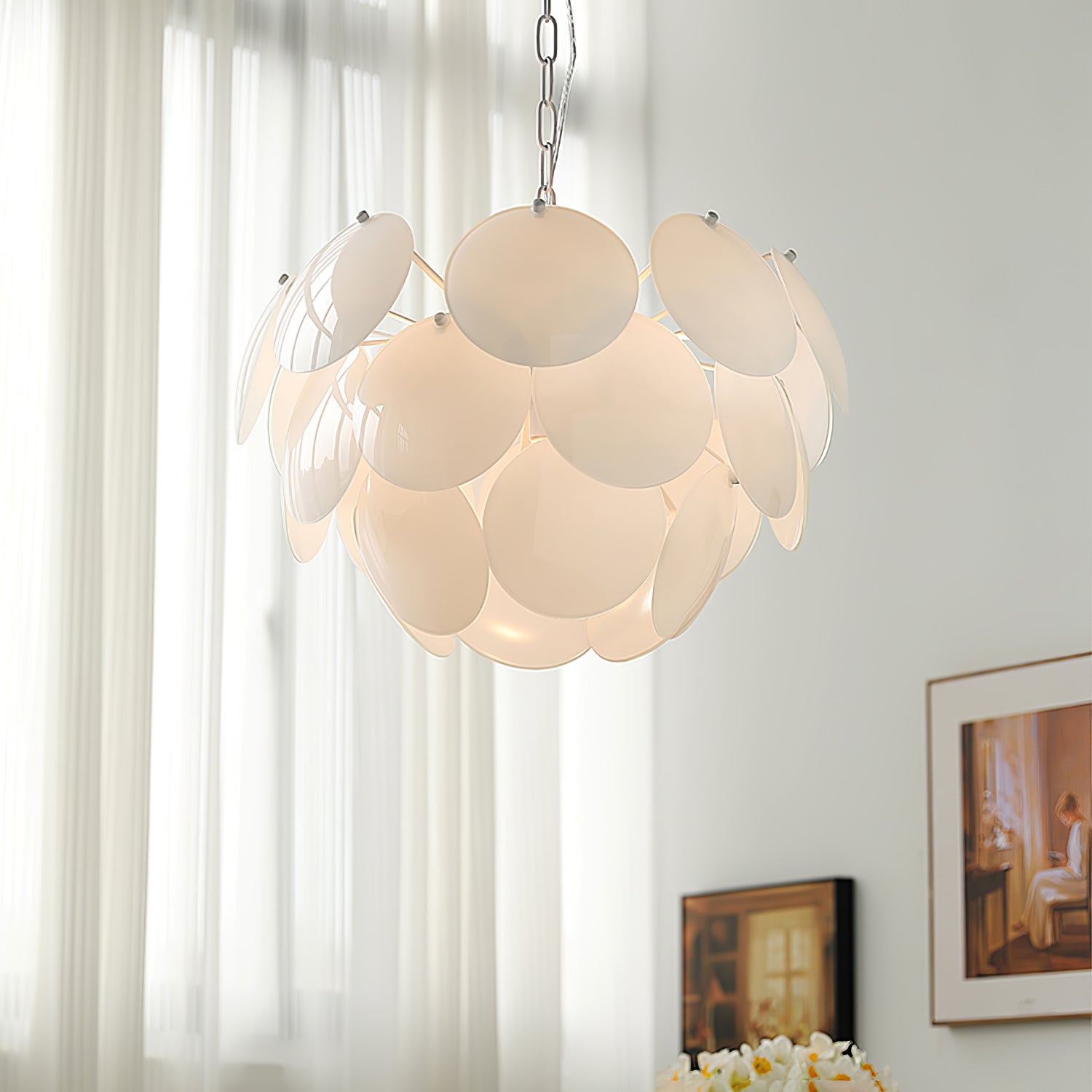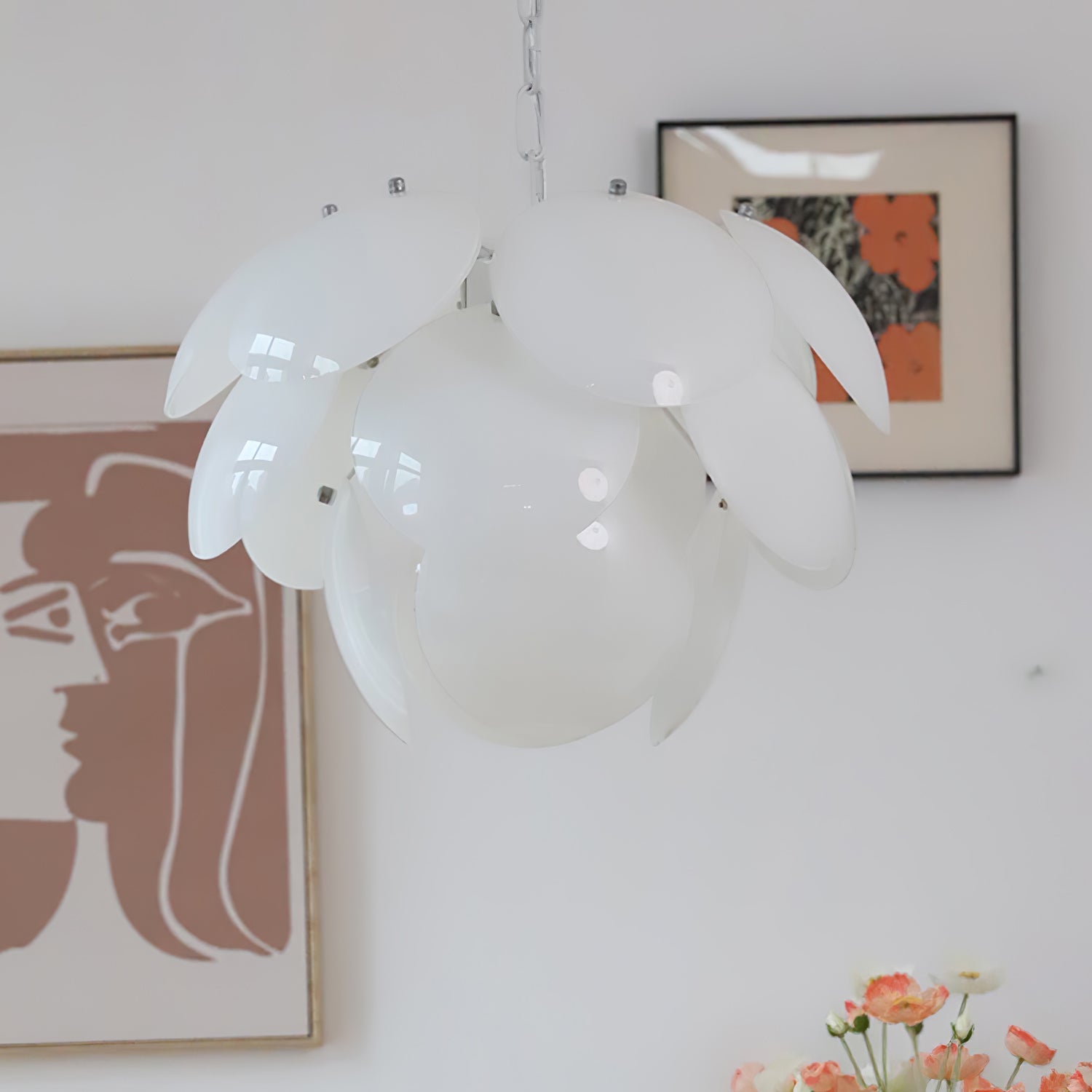 Enemmän kuin pelkkä valaisin, "Luminous Petal Glass Chandelier" toimii myös taideteoksena, joka korostaa mitä tahansa sisustusta. Se sopii täydellisesti olohuoneeseen, ruokailutilaan tai mihin tahansa tilaan, joka kaipaa eleganssia. Tämä kattokruunu ei ole vain valonlähde, vaan keskipiste, joka herättää keskustelua ja ihailua.